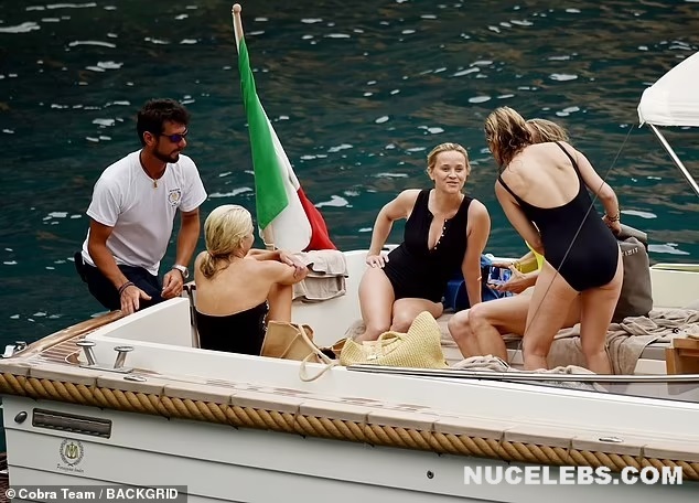 Reese Witherspoon is always full of optimism and sexual energy. Check out the beach photos of this charming blonde! Reese Witherspoon’s juicy boobs were peeking out so seductively from the low-cut of her black swimsuit. You will also drool when you see Reese Witherspoon’s cameltoe in a white tight swimsuit, which she showed off while walking along the beach.