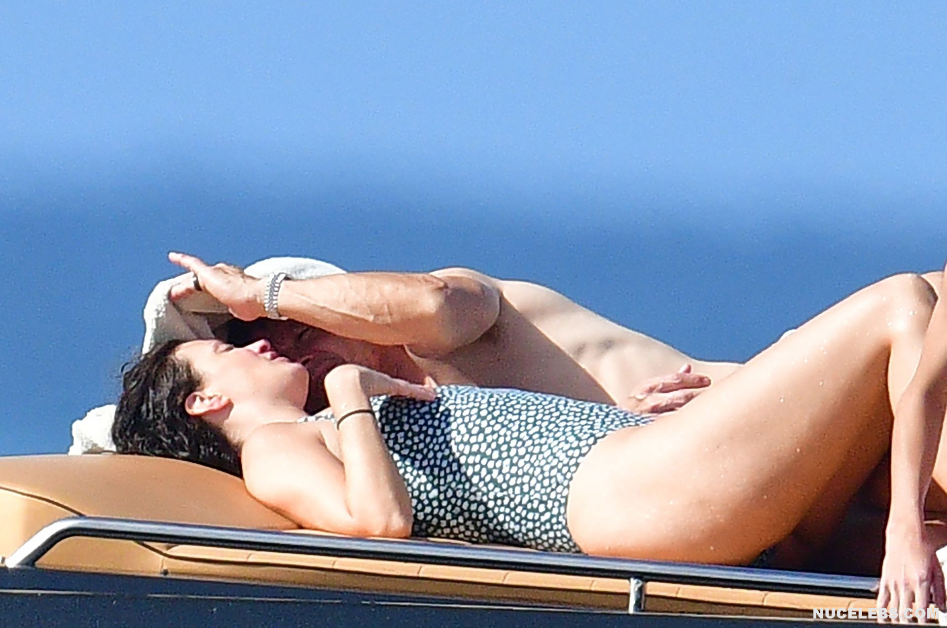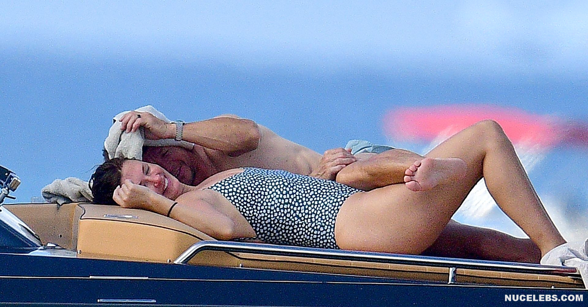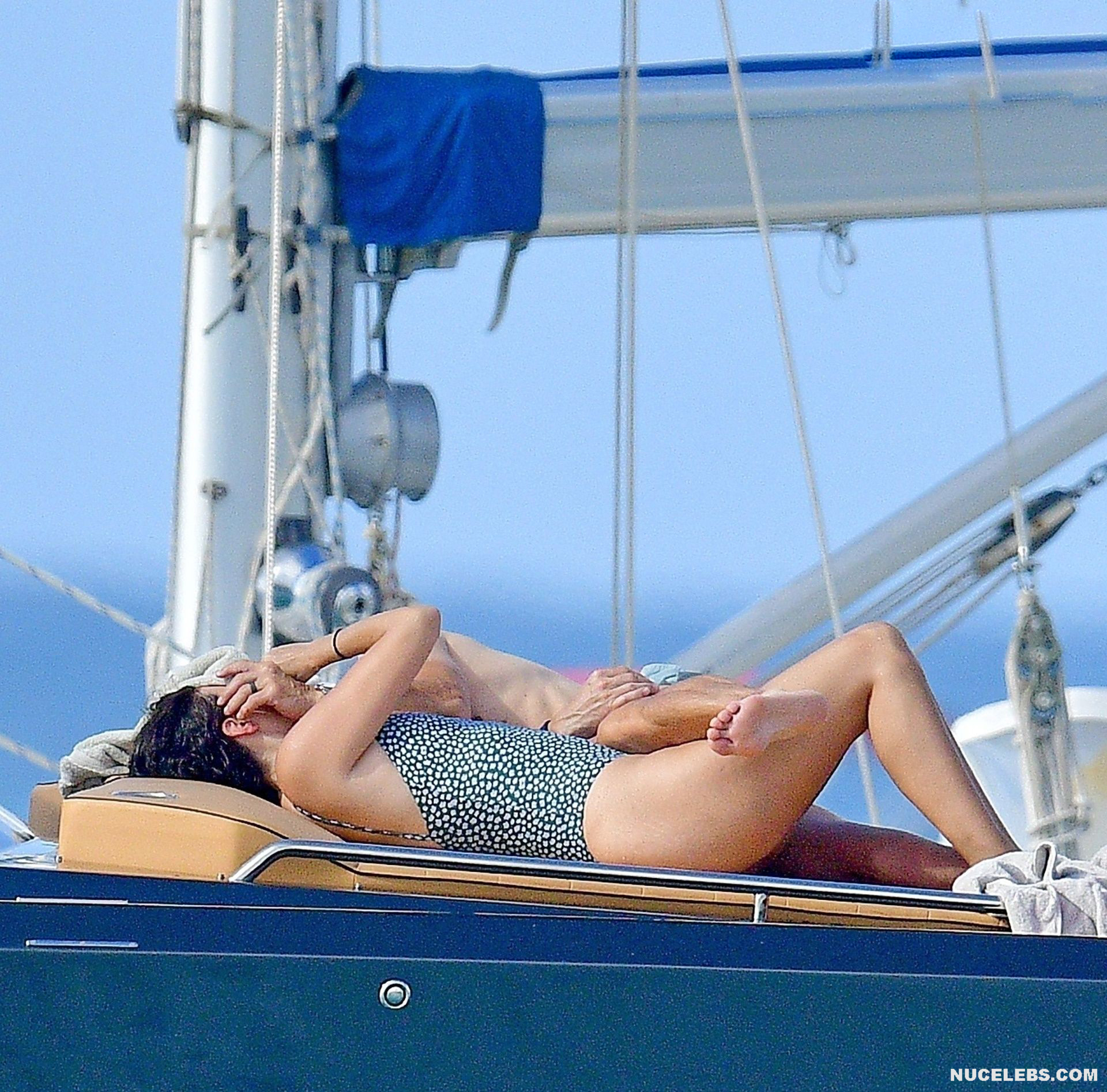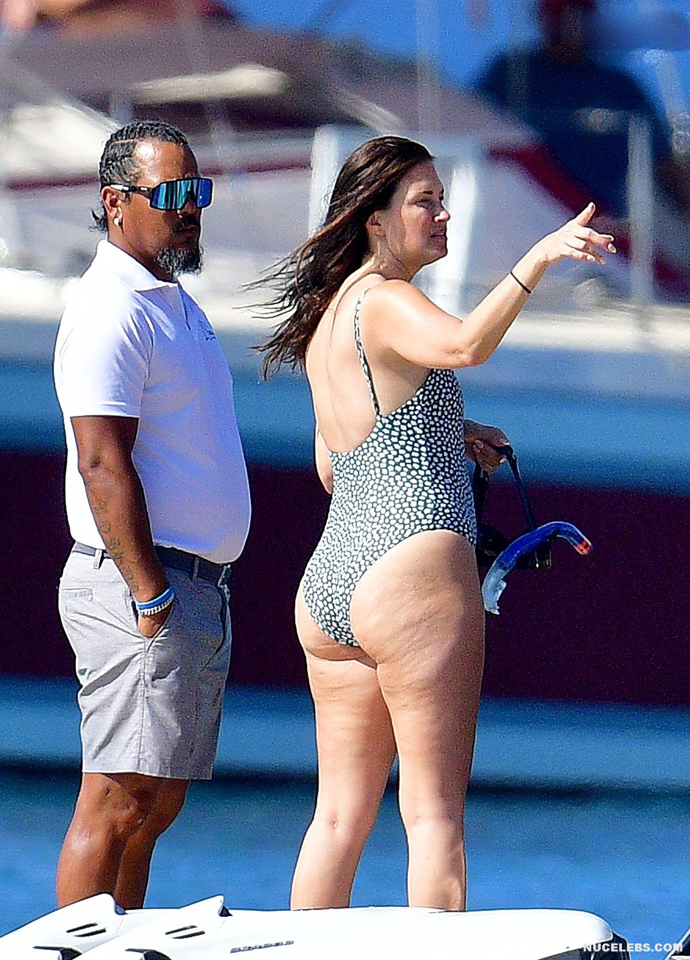 Rhea Durham flashes her nude boob on the beach! The paparazzi followed this American model during her beach holiday. Well, they managed to get hot pictures of her awesome booty in a black and white one-piece swimsuit. But the icing on the cake was a photo of Rhea Durham nude boob. When this 44-year-old celebrity was swimming in the sea, her naughty tit with a brown nipple slipped out of her black swimsuit for a moment.