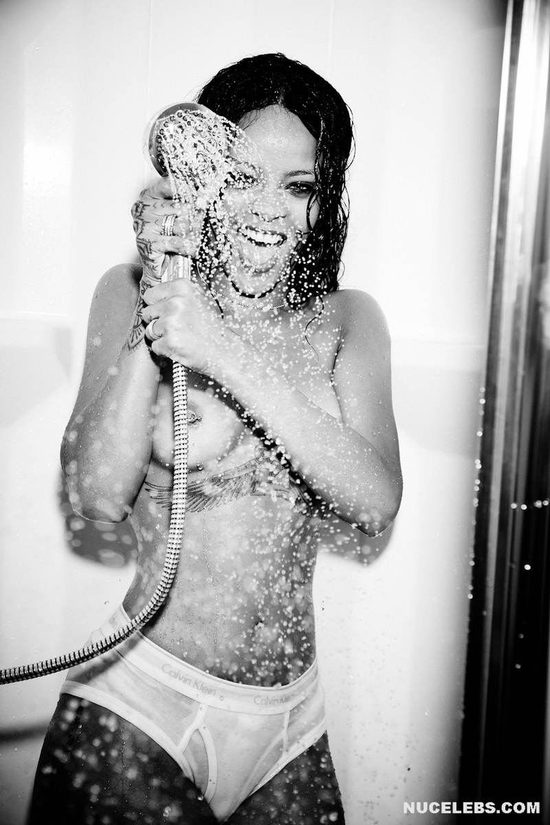 Rihanna is an absolute queen, and her incredible body is just as iconic as her music! You will howl with delight looking at this beauty in wet underwear during a photo shoot. However, you will be even more impressed by Rihanna nude photos! This star posed with a shower head turned on in her hands and it was damn sexy! Her long black hair seductively fell over her shoulders… And Rihanna nude boobs with brown nipples were also on display!