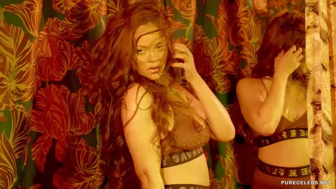 American singer Rihanna has more and more recently begun to try herself as a model of sexy lingerie. Not so long ago, this hot beauty starred in a photo shoot, which looked just gorgeous lying on the bed in black beautiful lingerie. Her awesome puffy booty in black lace panties looked very seductive, and her big juicy boobs seemed at any moment to jump out of the tight bra. This girl is able to drive anyone crazy, right?