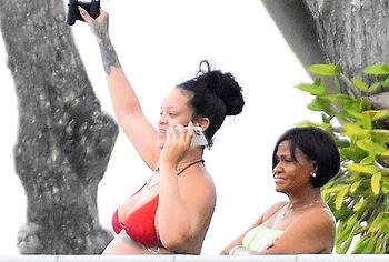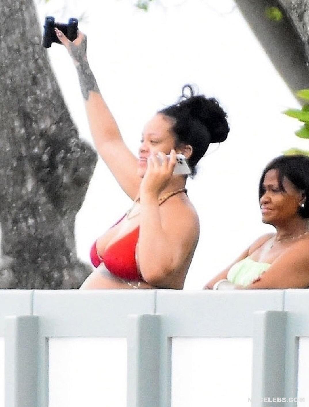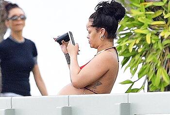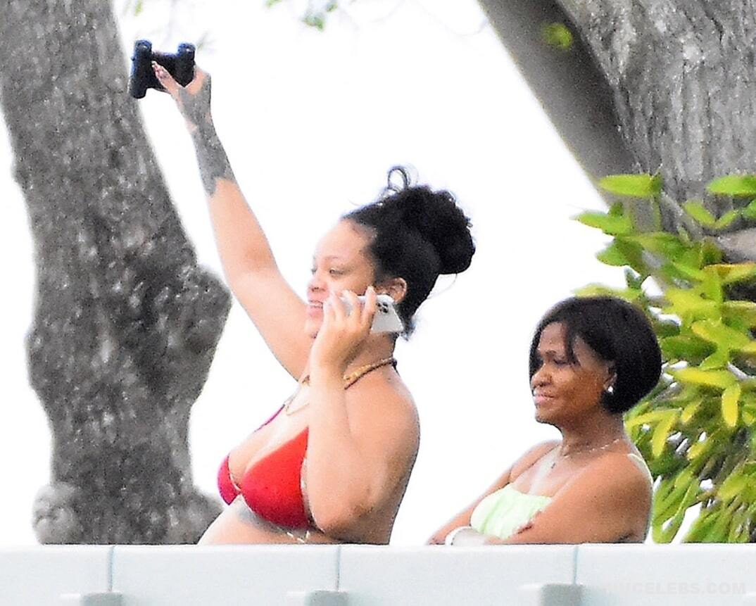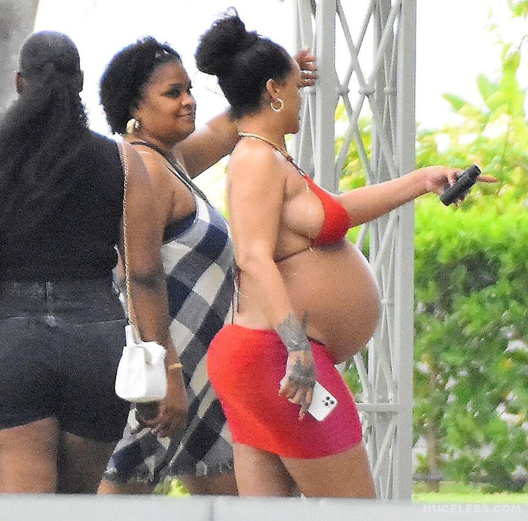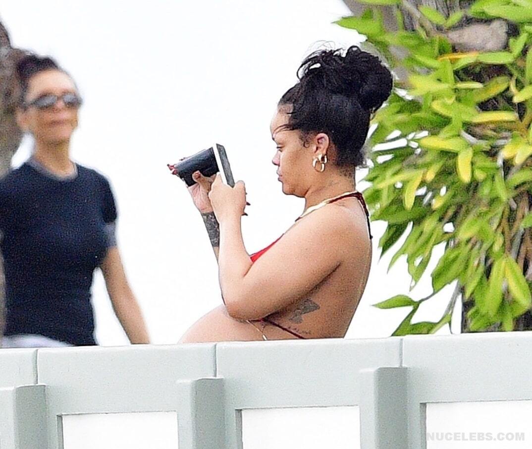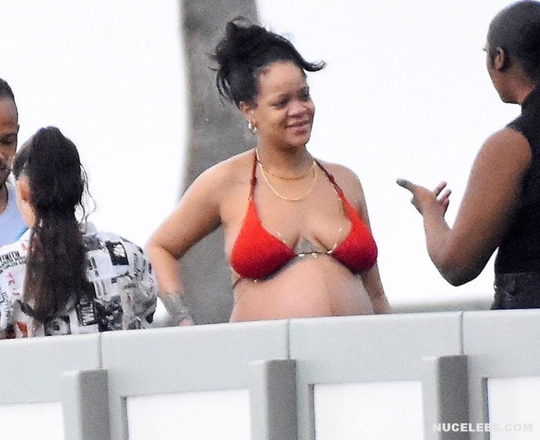 Rihanna once again proves that during pregnancy you should not be ashamed of changes in your body. She often appears in public and each time her outfits are getting skimpty. So, Rihanna’s nude boobs and buttocks were only lightly covered with little red pieces of cloth when she was photographed in a bikini on the beach. Her tummy also noticeably rounded. Well, this mommy-to-be looked really hot, didn’t she?