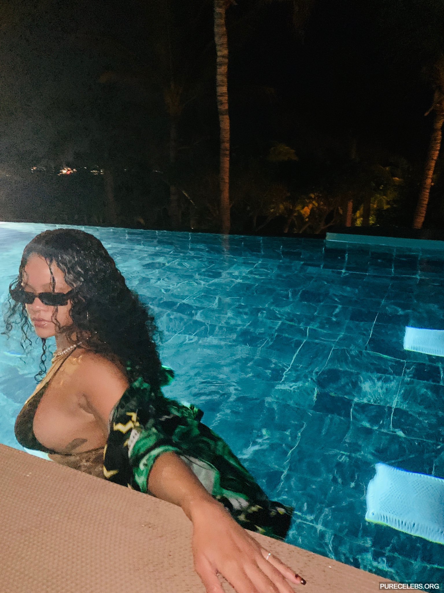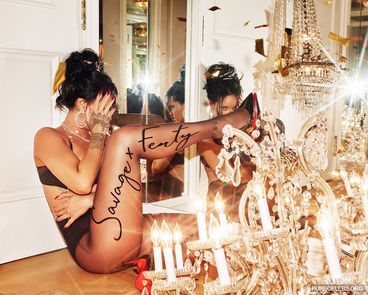 Not so long ago, charming singer Rihanna starred in photo shoots for Magazine September 2019 And Savage X Fenty, November 2019. This hot brunette felt confident enough to pose in see through black mesh outfit. So her awesome boobs with brown nipples were visible. And she looked incredibly hot in black sexy lingerie and black tights, lying on a pink bed. Her tits in a small bra were so juicy. And her awesome butt was so sweet in her little panties.