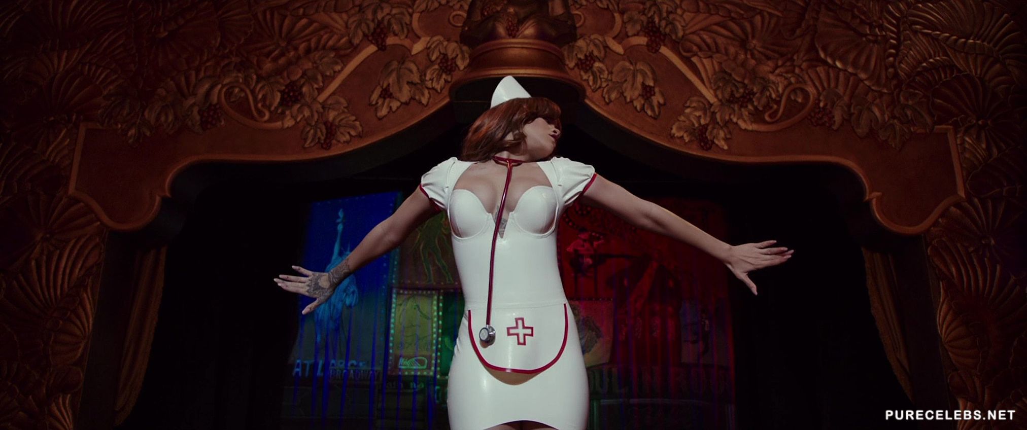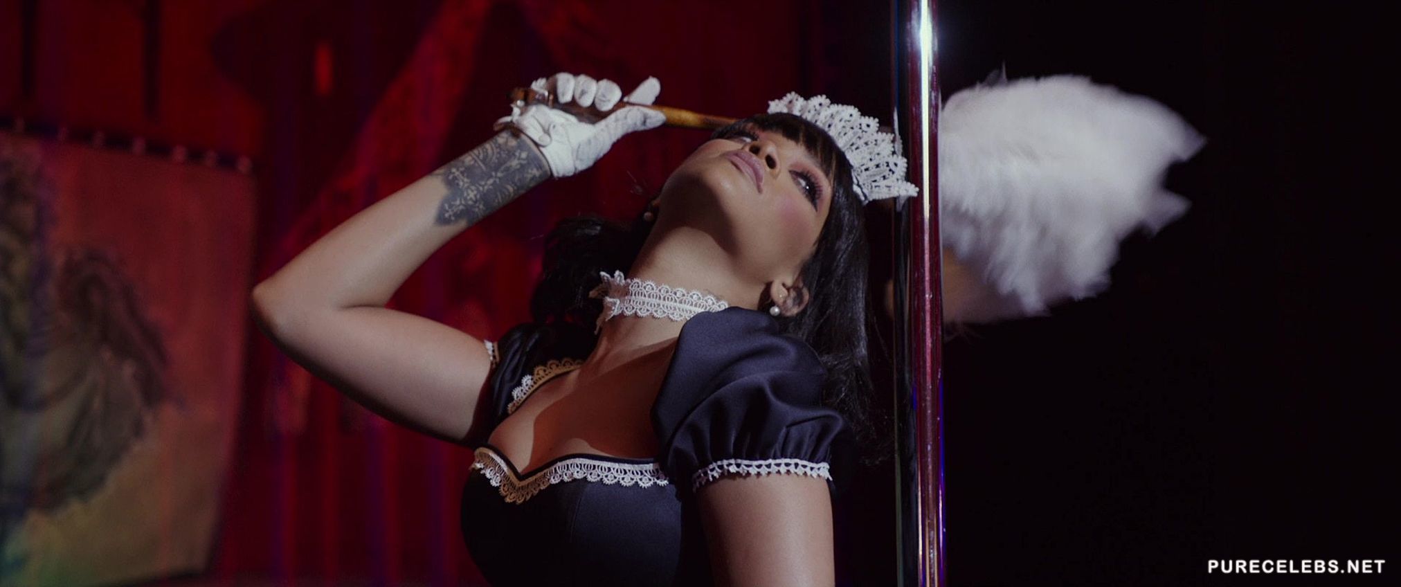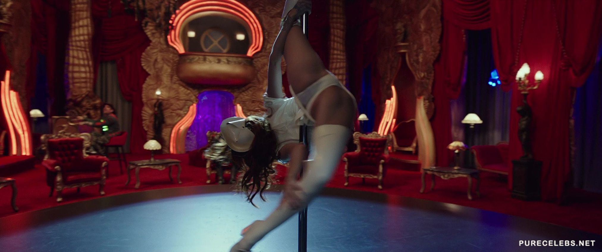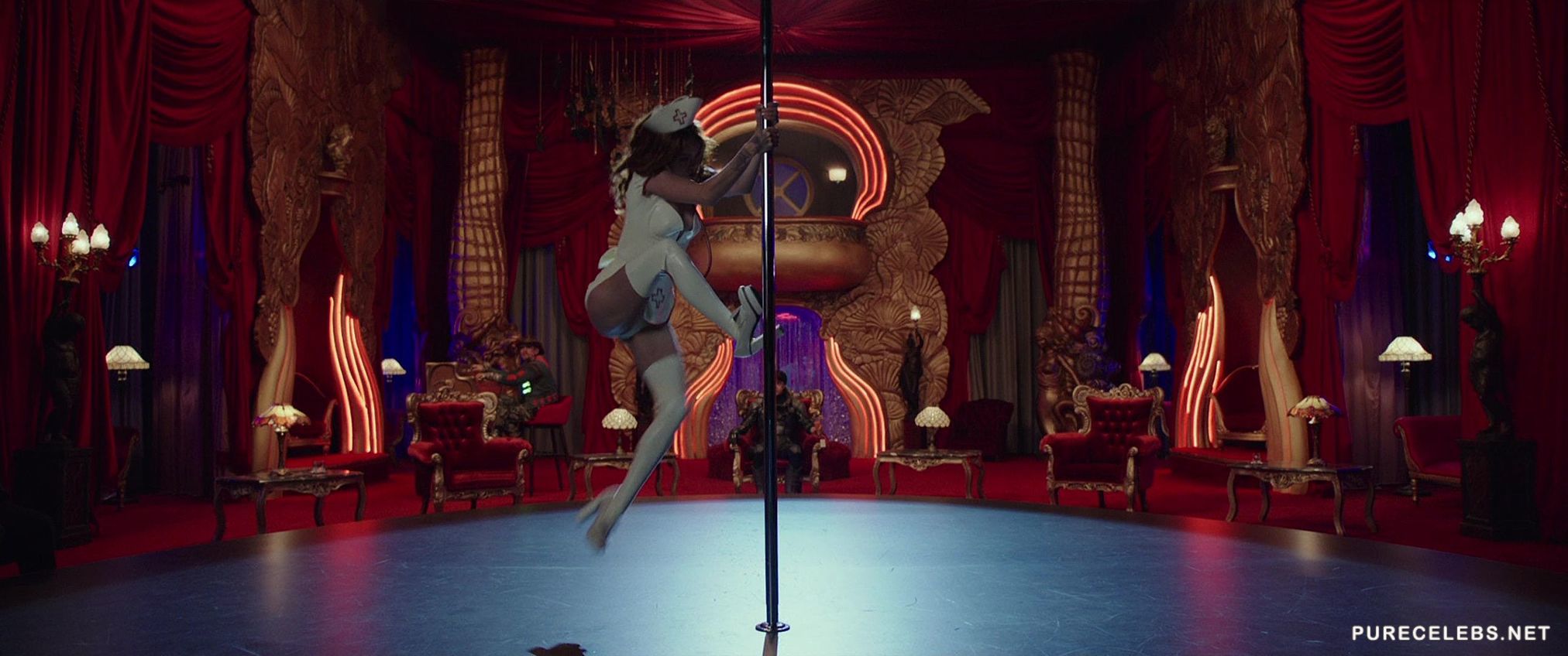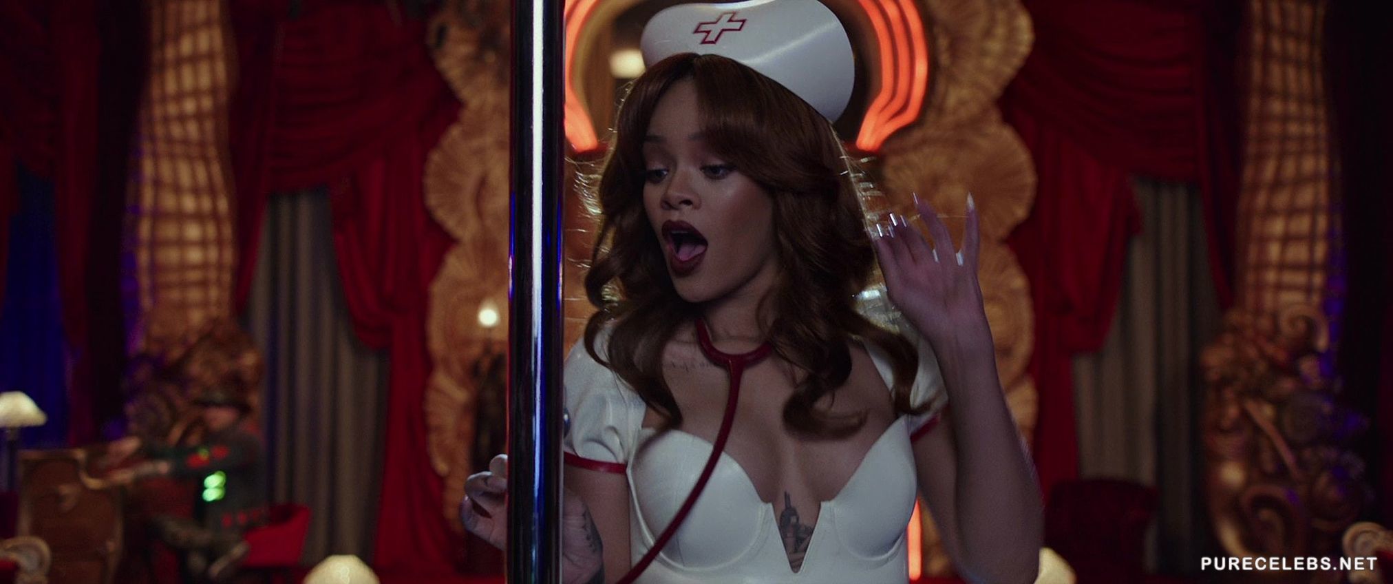 If you are not a fan of the science-fiction genre watching Rihanna do a live striptease show should be enough to make you watch the new Valerian and the City of a Thousand Planets movie. The hot ebony babe performs a traditional burlesque show for the protagonist while singing and taking off her clothes. Gripping the stripper pole with her muscular thighs in a slutty nurse costume is the highlight of this scene.