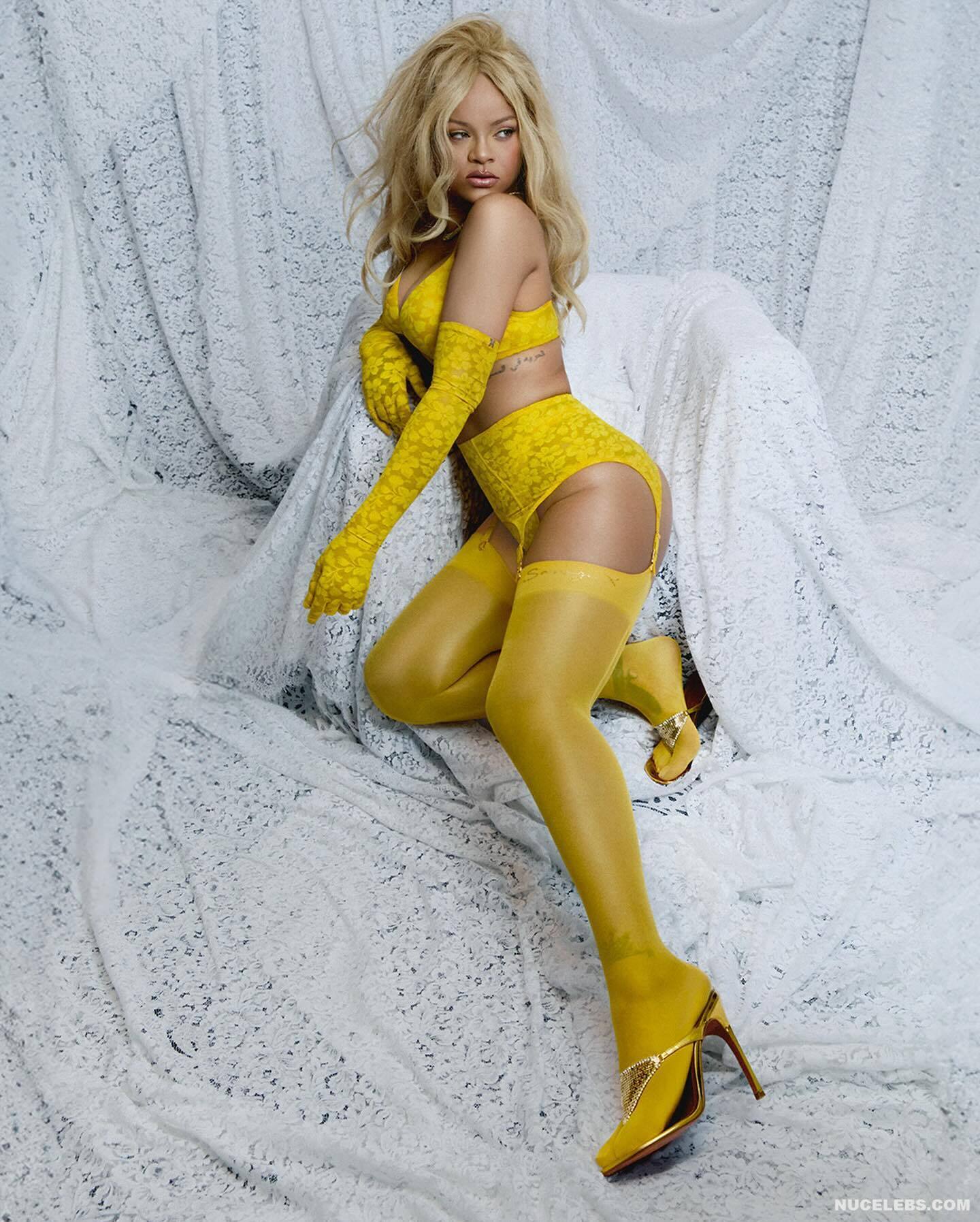 Another portion of damn sexy lingerie photos from Rihanna is already waiting for you! This hot singer does not miss the opportunity to tease you with her incredible figure. Her big boobs and butt looked very seductive in yellow lace lingerie. Rihanna’s booty seemed naked when she posed in stockings and black lingerie! Check out how she was bending when she crawled on the floor on her knees. Her ass in brown thongs looked gorgeous in these moments! Rihanna also boasted of her naked classy tits, posing topless in front of the mirror.