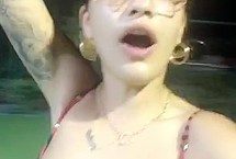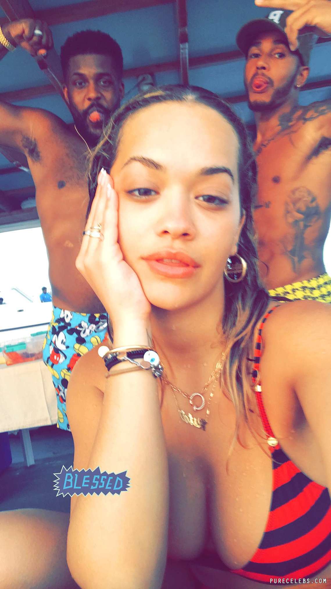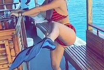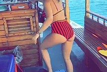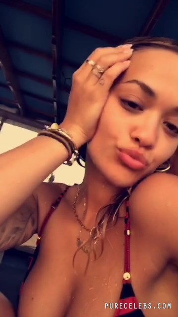 If you follow this beautiful singer Rita Ora on social media networks, you could see that she loves being on a super expensive yacht. But that’s not the point! The point is that she looks so freaking hot in that tight bikini with black and red stripes! Her boobs look magnificent especially when she makes them soaking wet! And also, her amazingly tight ass looks outstanding and very satisfactory!