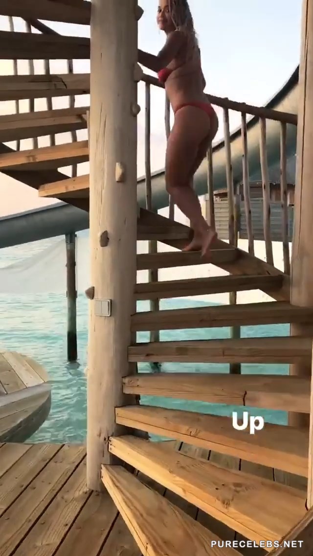 We are sure you are already familiar with Rita Ora’s amazing voice, but wait until you get a look at her completely nude body on the beach. This pop star’s social media accounts were recently hacked and flooded with photos of her relaxing by the ocean without any clothes on. Rita did her best to conceal her boobs, but she left her ass hanging out for all her fans to see.