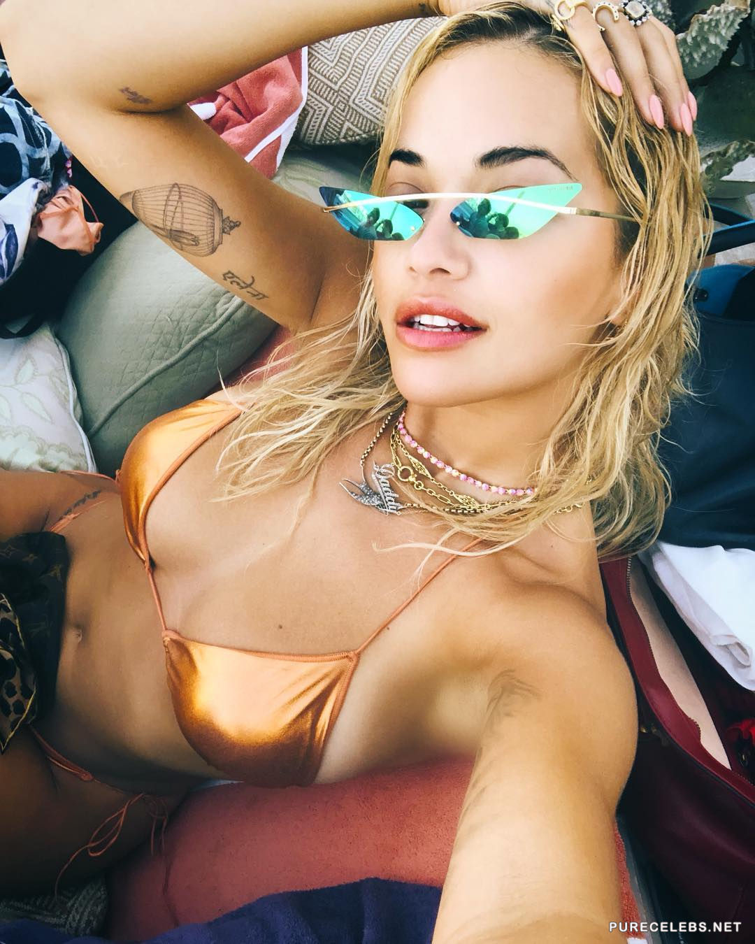 English singer and a naughty little temptress, Rita Ora likes to share her sexy photos with us, and every once in a while she gives us a mouthwatering selfie knowing that we will be having her in mind while jerking off. This time she has made a topless selfie, covering those amazing boobs of hers with her hand and making it clear that her tits are bigger than her palms.