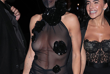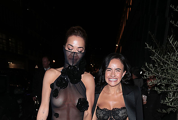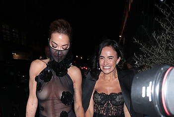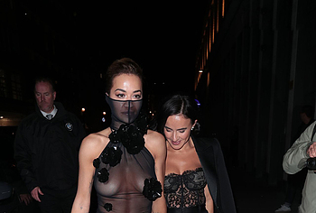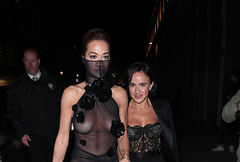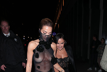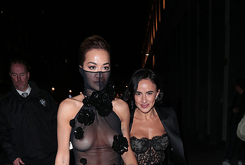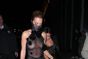Rita Ora confidently embraces her natural beauty, showcasing her nude boobies. At one of the events, she impressed everyone with her outfit. This British singer wore a black sheer dress, the top of which ended like a mask on her face. In addition, this 33-year-old celebrity wore braless. And if Rita Ora’s nude pussy was still covered by miniature panties, then her juicy tits could be seen through the transparent fabric.