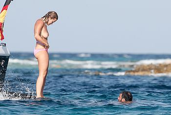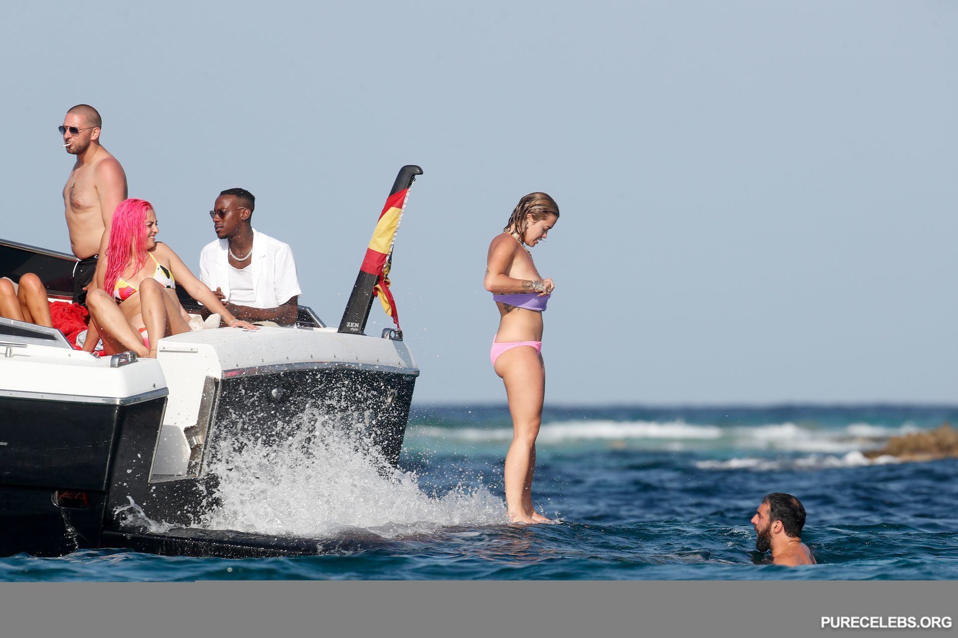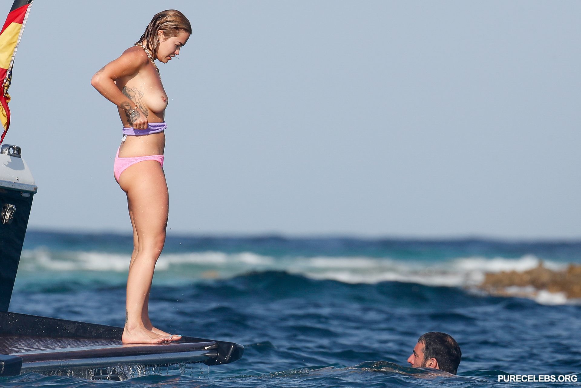 It is interesting to watch the rest of the English singer Rita Ora. After all, there is always a chance to see Rita Ora nude boobs, as for example happened this time. First, the celebrity swam and sunbathed in a small bikini, flaunting her awesome ass in wet panties. And the celebrity decided to take off her wet bra. So Rita Ora nude juicy tits with big nipples were exposed in public and it was breathtaking!
