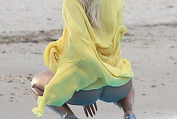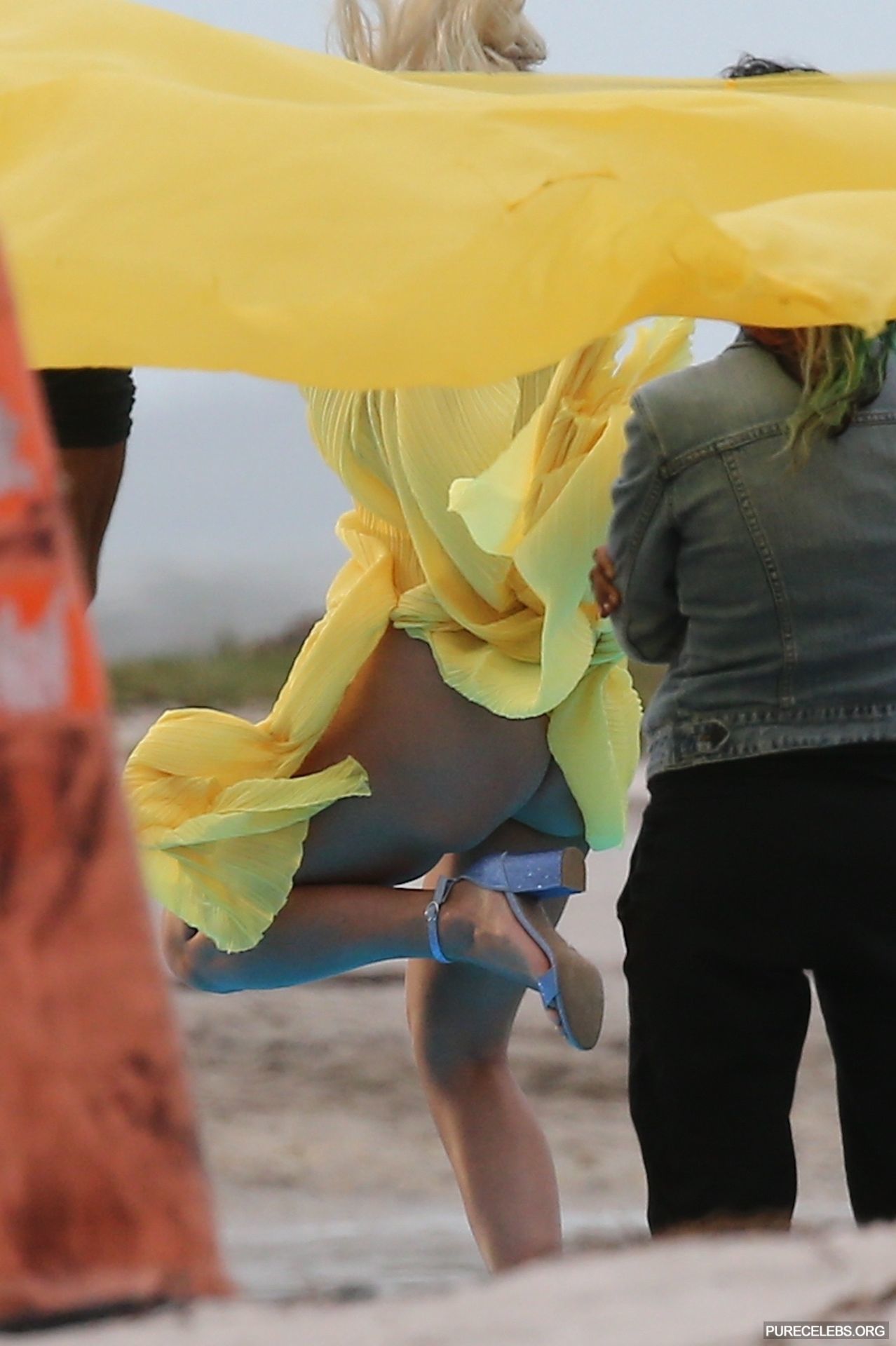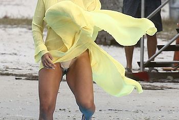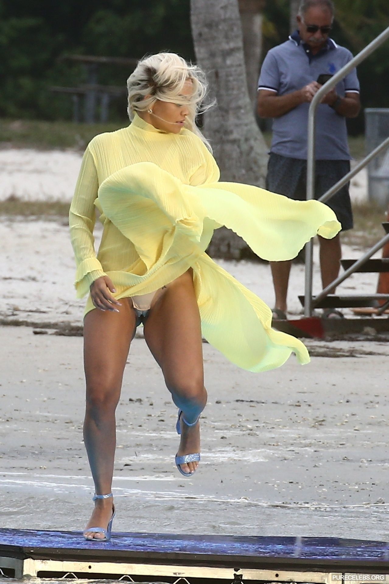 Also, this Rita Ora made a hot selfie, posing in front of a mirror nude. Paparazzi managed to photograph this beauty on the beach in windy weather. Her yellow dress rose up and her wonderful naked ass was visible, covered with a narrow strip of white thongs. Mmmmm, a very sexy sight, right?