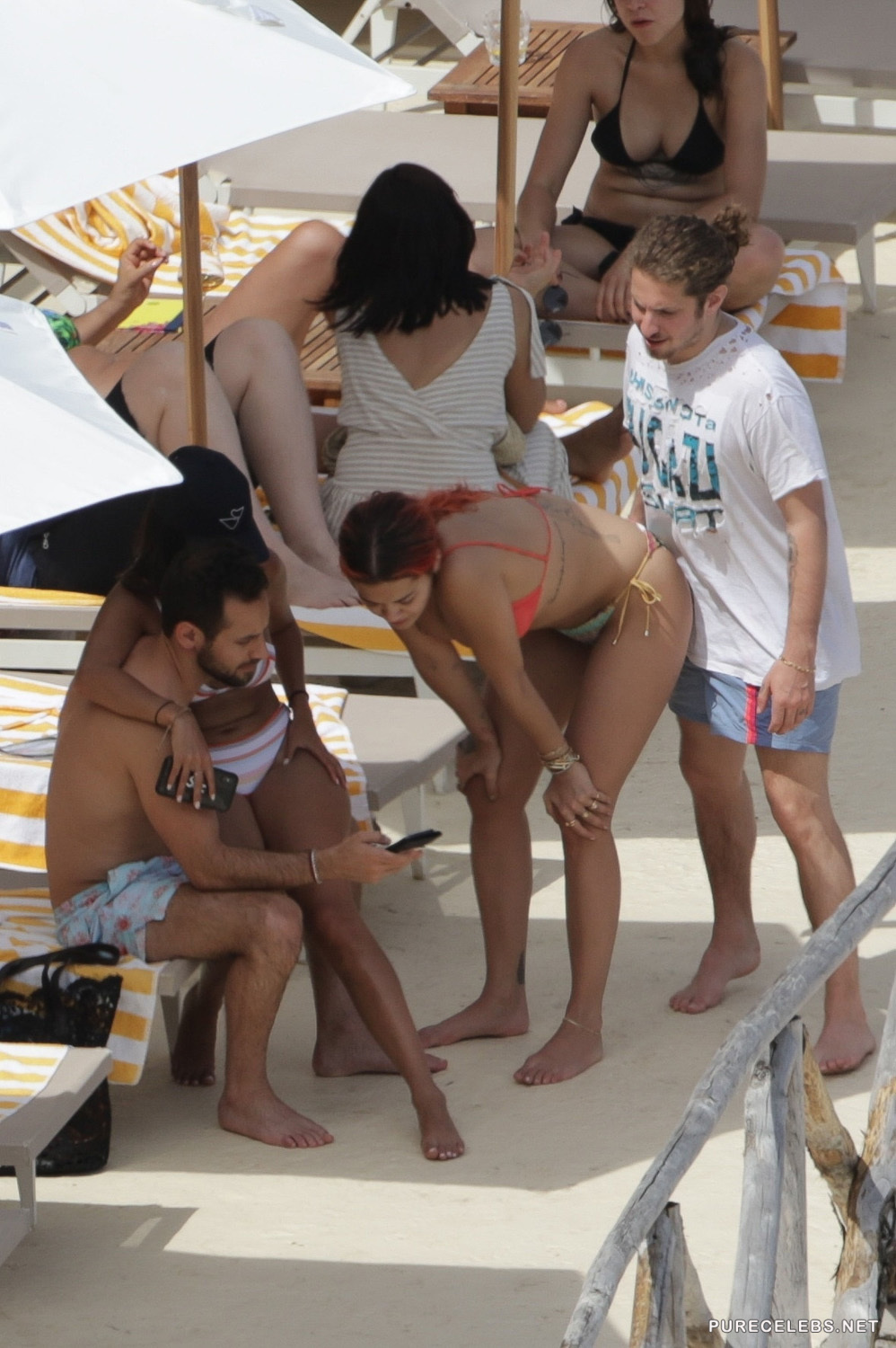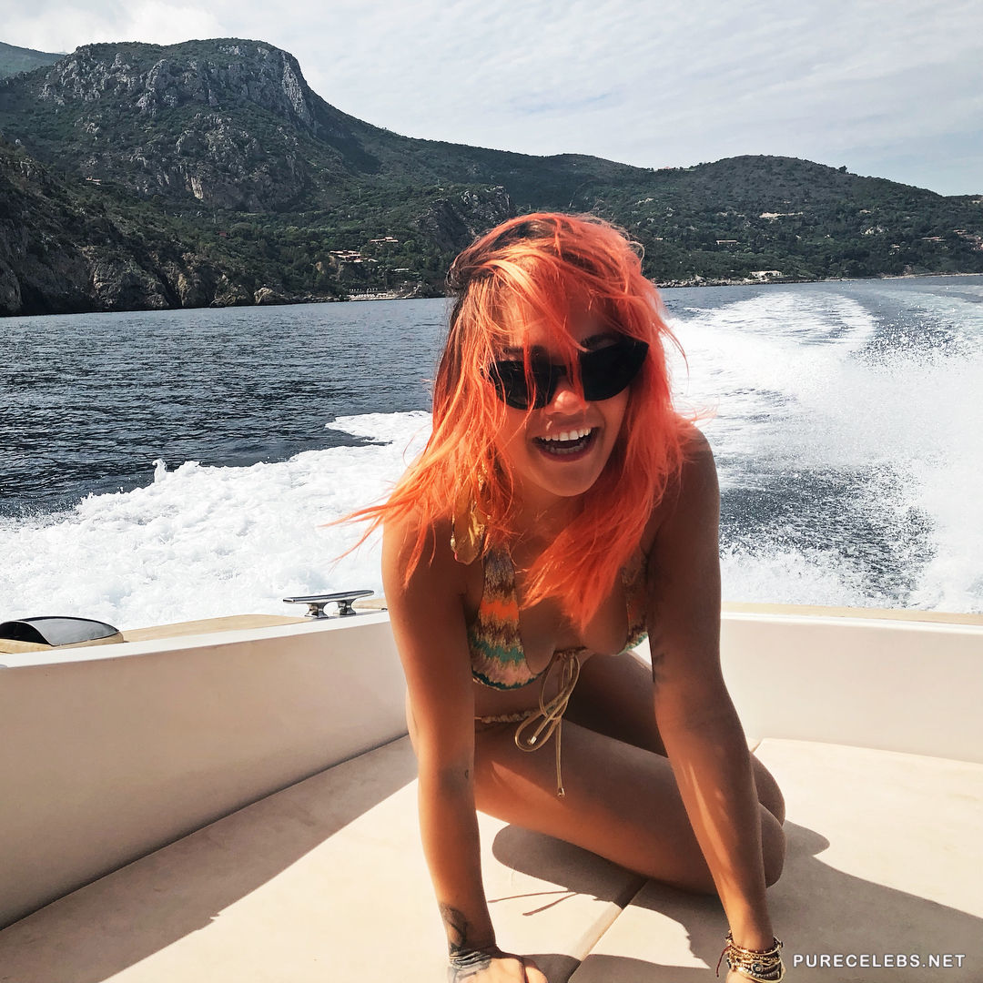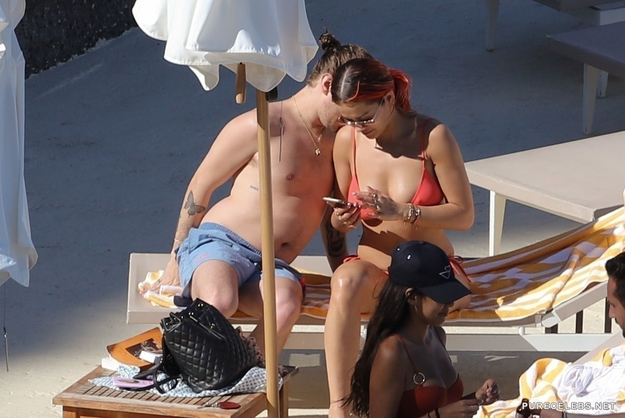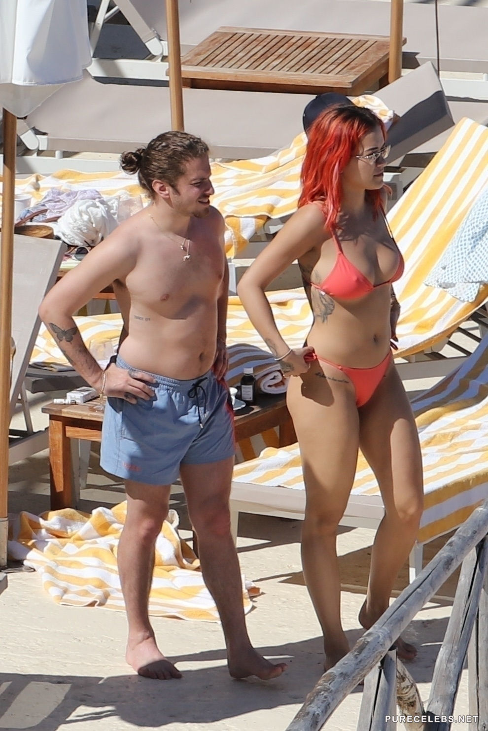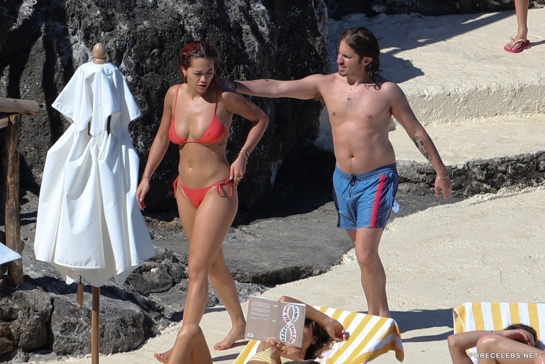 Exotic English pop star of Albanian origin Rita Ora is a total attention whore but who can blame this wonderful darling? She a self-centered rich bitch known for her flamboyant lifestyle and many people like her because of that. In this set of photos Rita reveals her sexy curves on the beach, her new bikini will surely leave you breathless. Rita Ora fans need to bookmark this page!