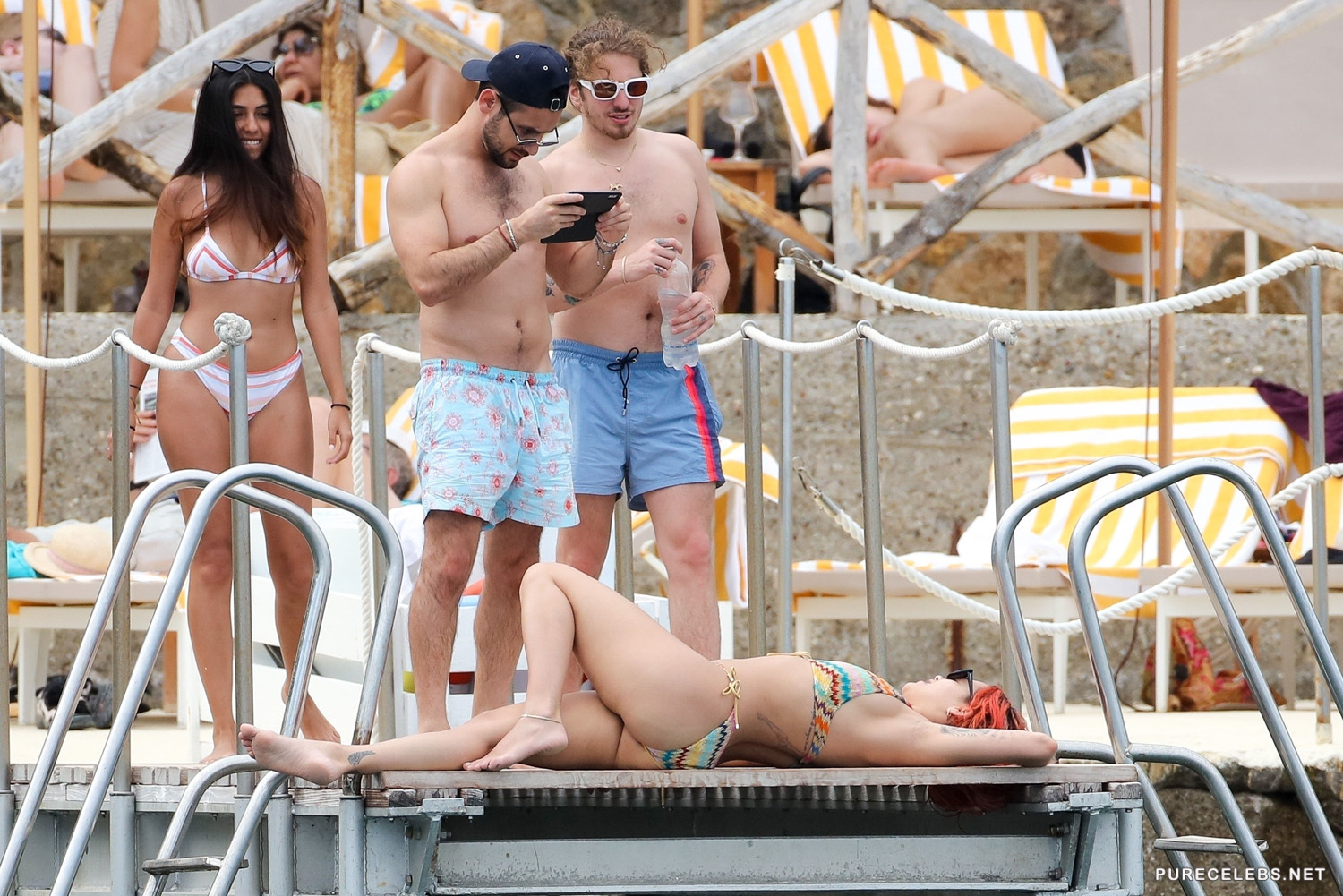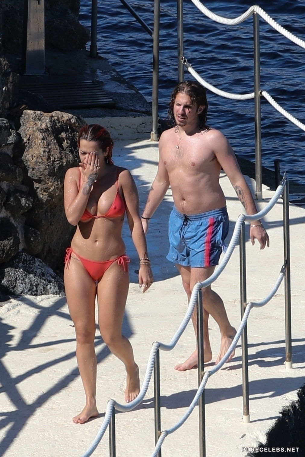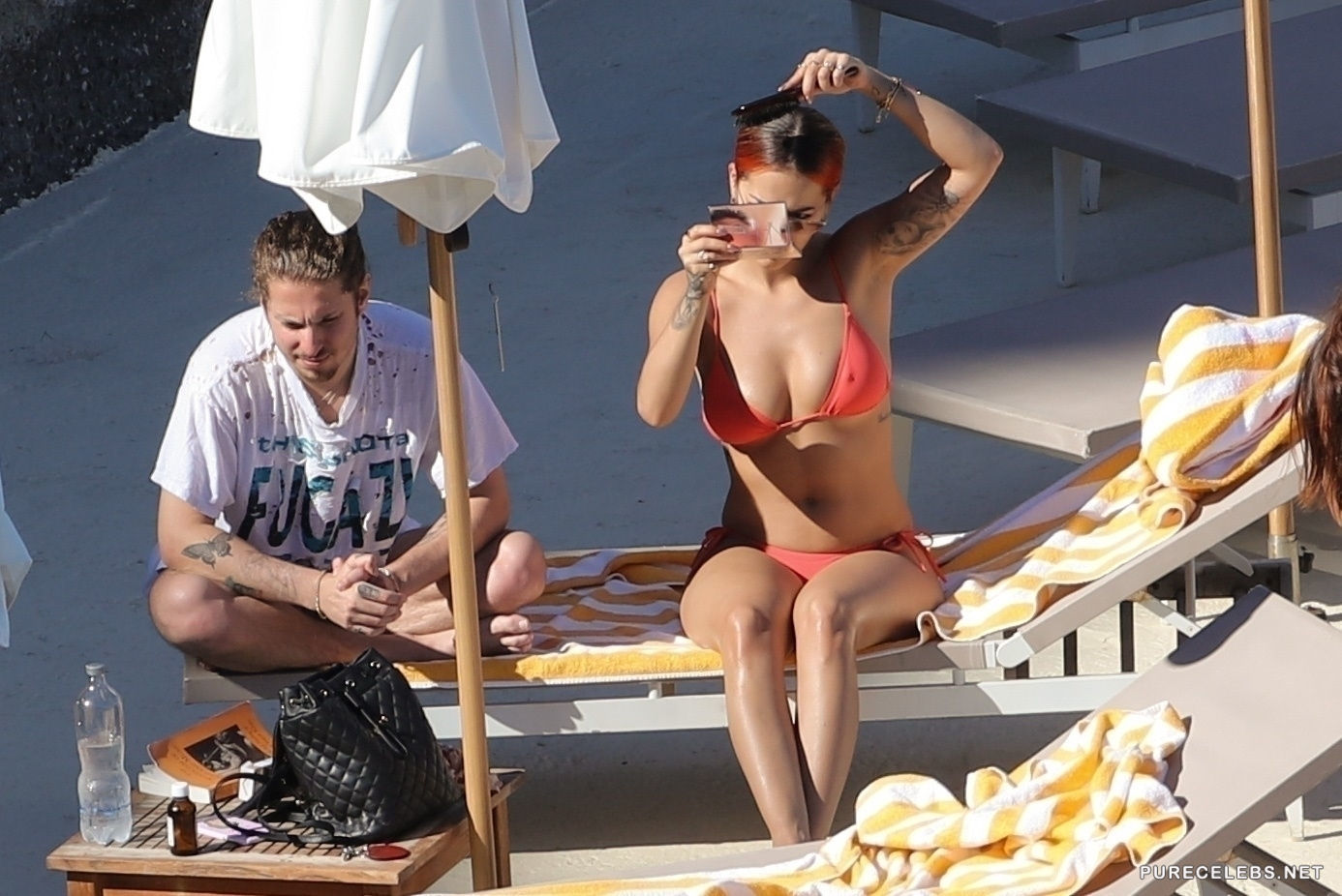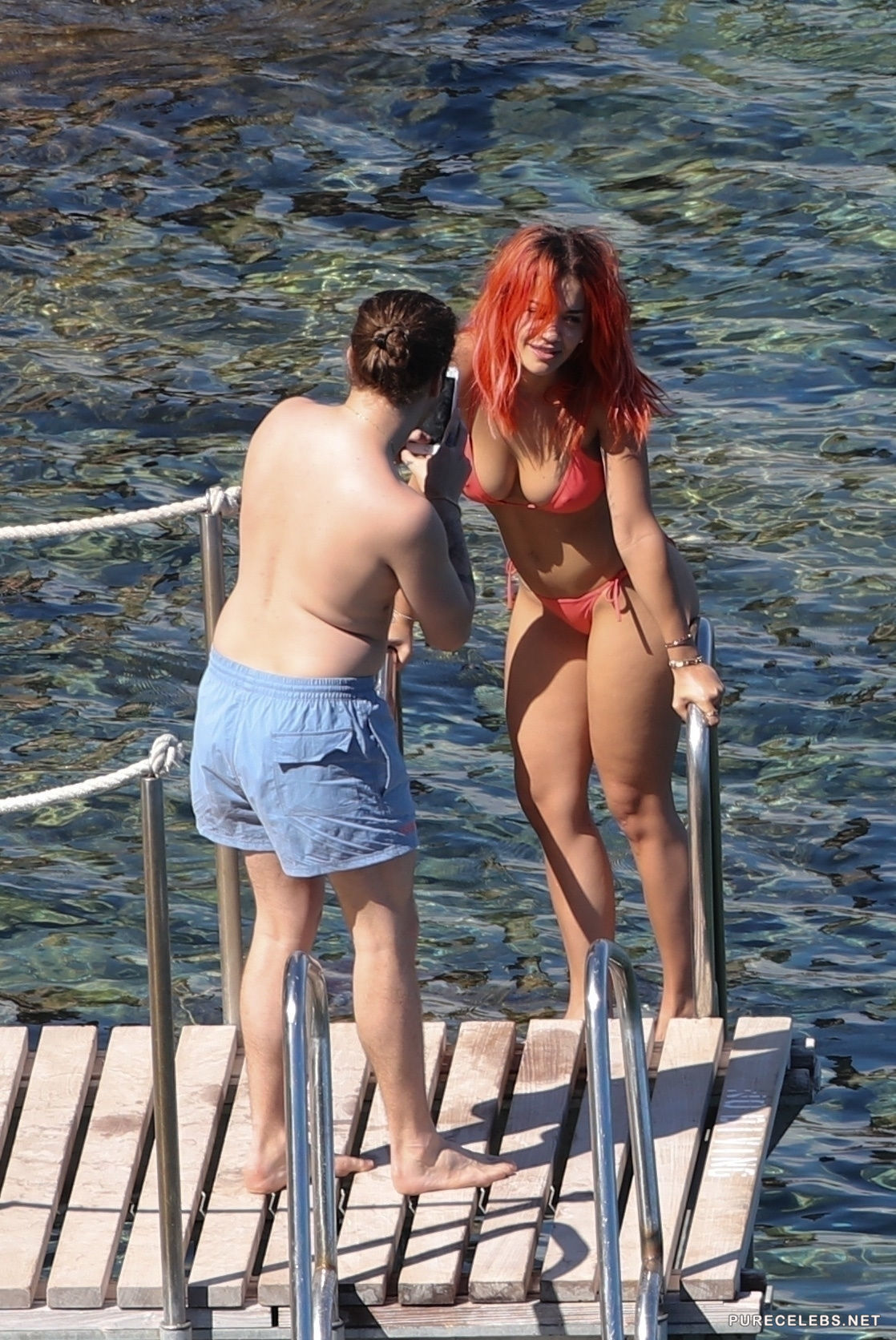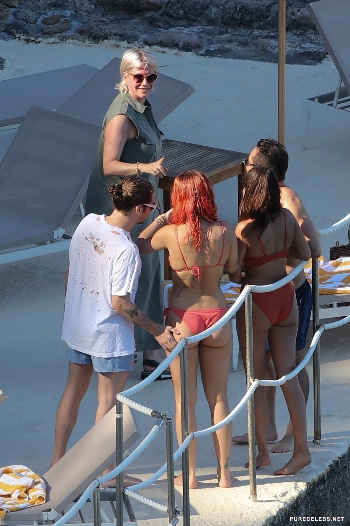 Exotic English pop star of Albanian origin Rita Ora is a total attention whore but who can blame this wonderful darling? She a self-centered rich bitch known for her flamboyant lifestyle and many people like her because of that. In this set of photos Rita reveals her sexy curves on the beach, her new bikini will surely leave you breathless. Rita Ora fans need to bookmark this page!
