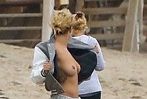 British singer and actress Rita Ora likes to tease the photographers following her around, but what was caught in these pictures she never intended to happen. While on an empty beach with a friend, she decided to go topless in a frilly pair of shorts, and got photographed. But, that’s not all. You can see her selfie bikini photos, as well as a few others by the pool with her nipples screaming.