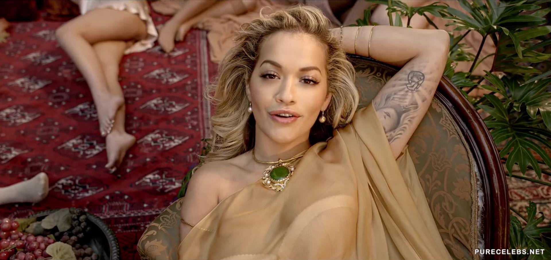 Rita Ora looks astonishing in a new video featuring sexy darlings Cardi B, Bebe Rexha and Charli XCX, his British singer, apart from having an amazing voice, looks gorgeous even without looking like a seductive forest fairy, while relaxing on the sofa in a sheer dress covering her almost naked body. If you watch carefully, you will also see a hot and very erotic girl girl kiss near the end.