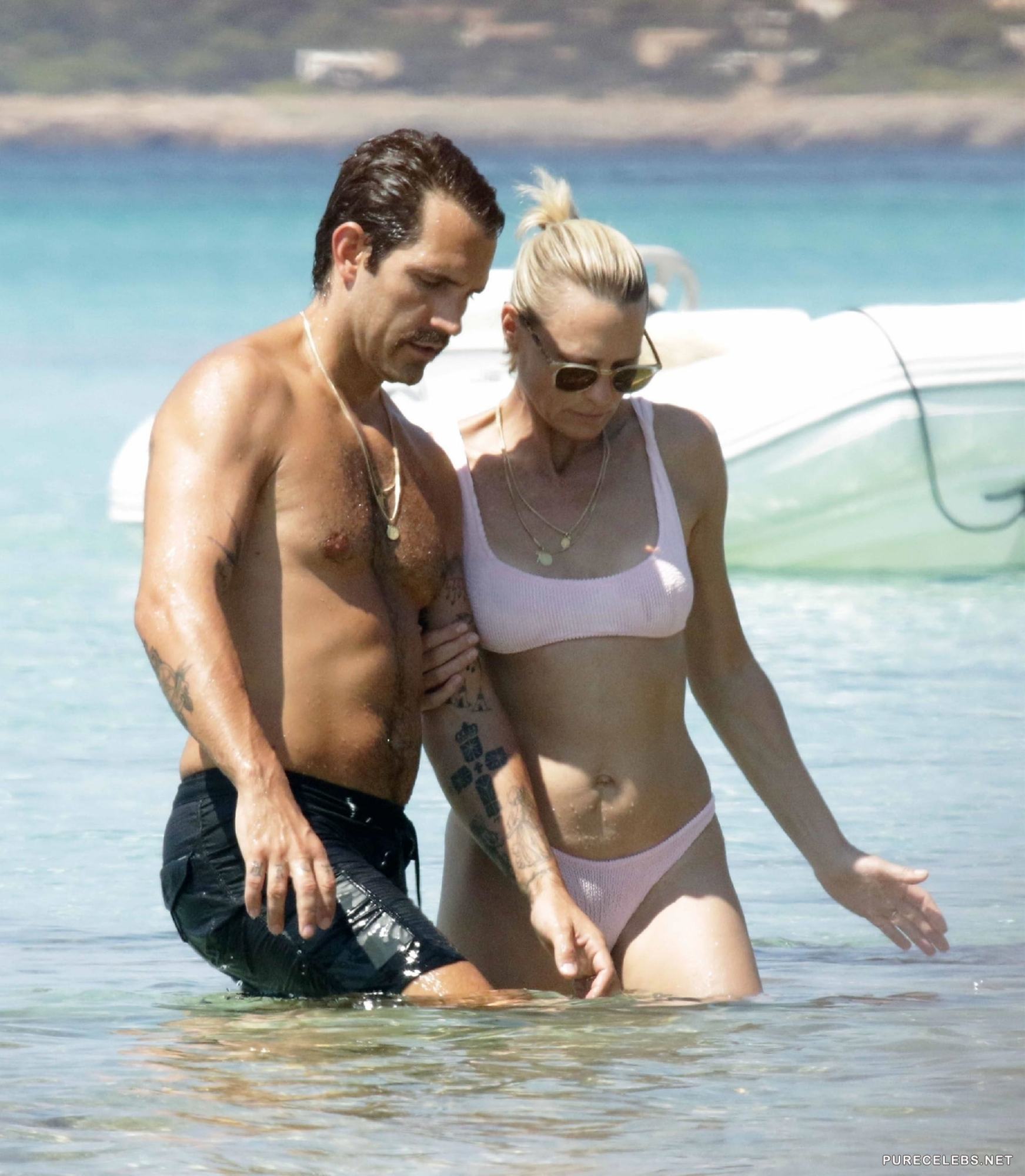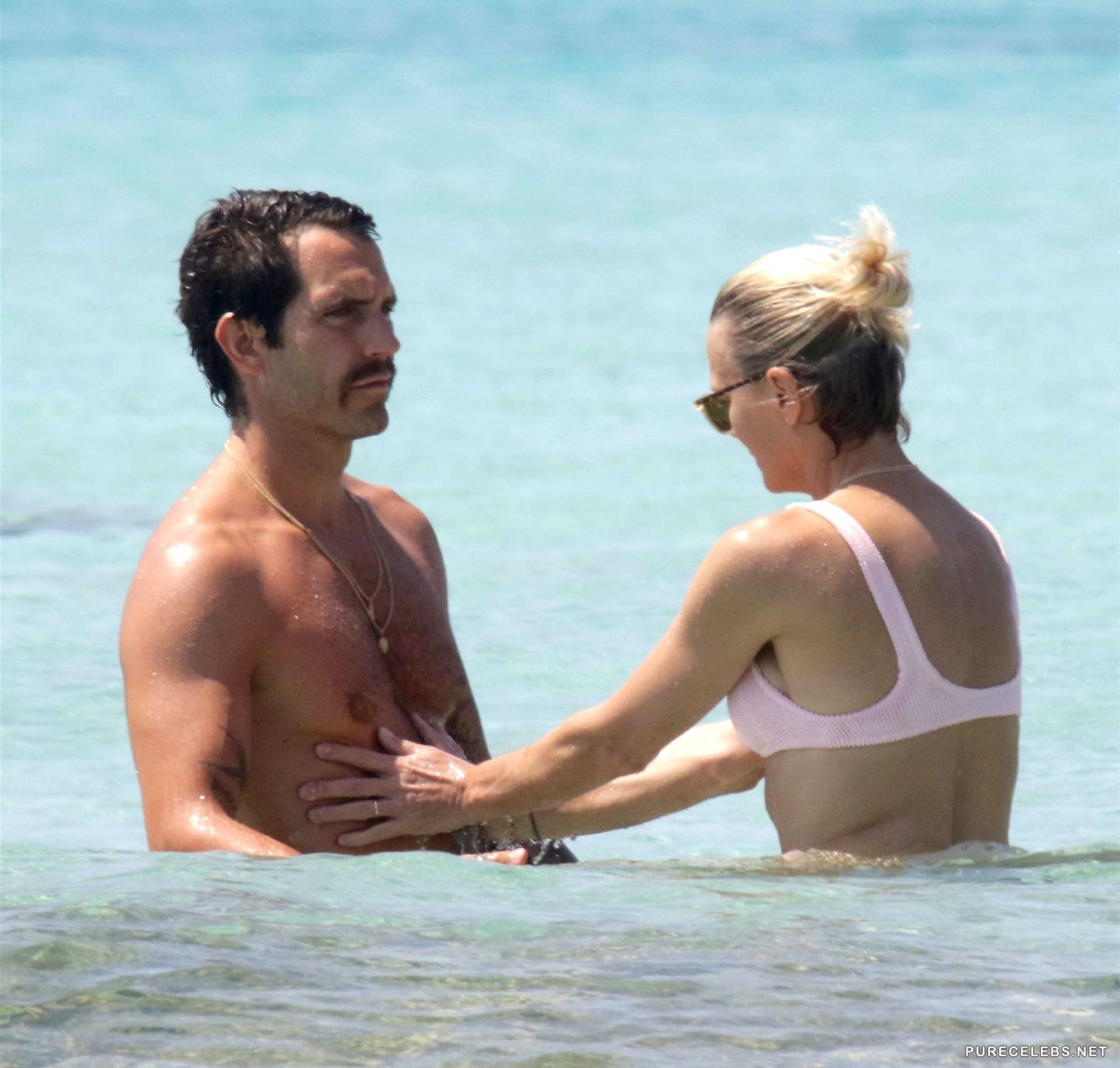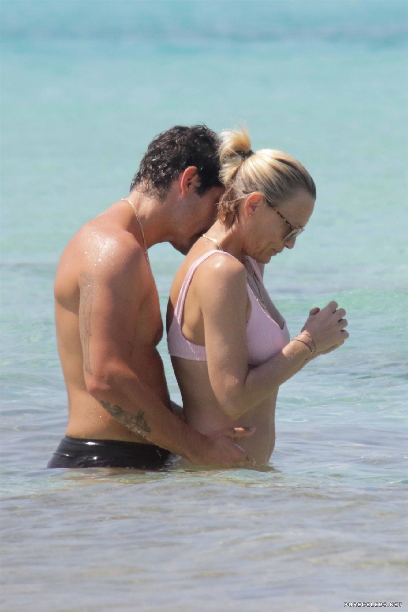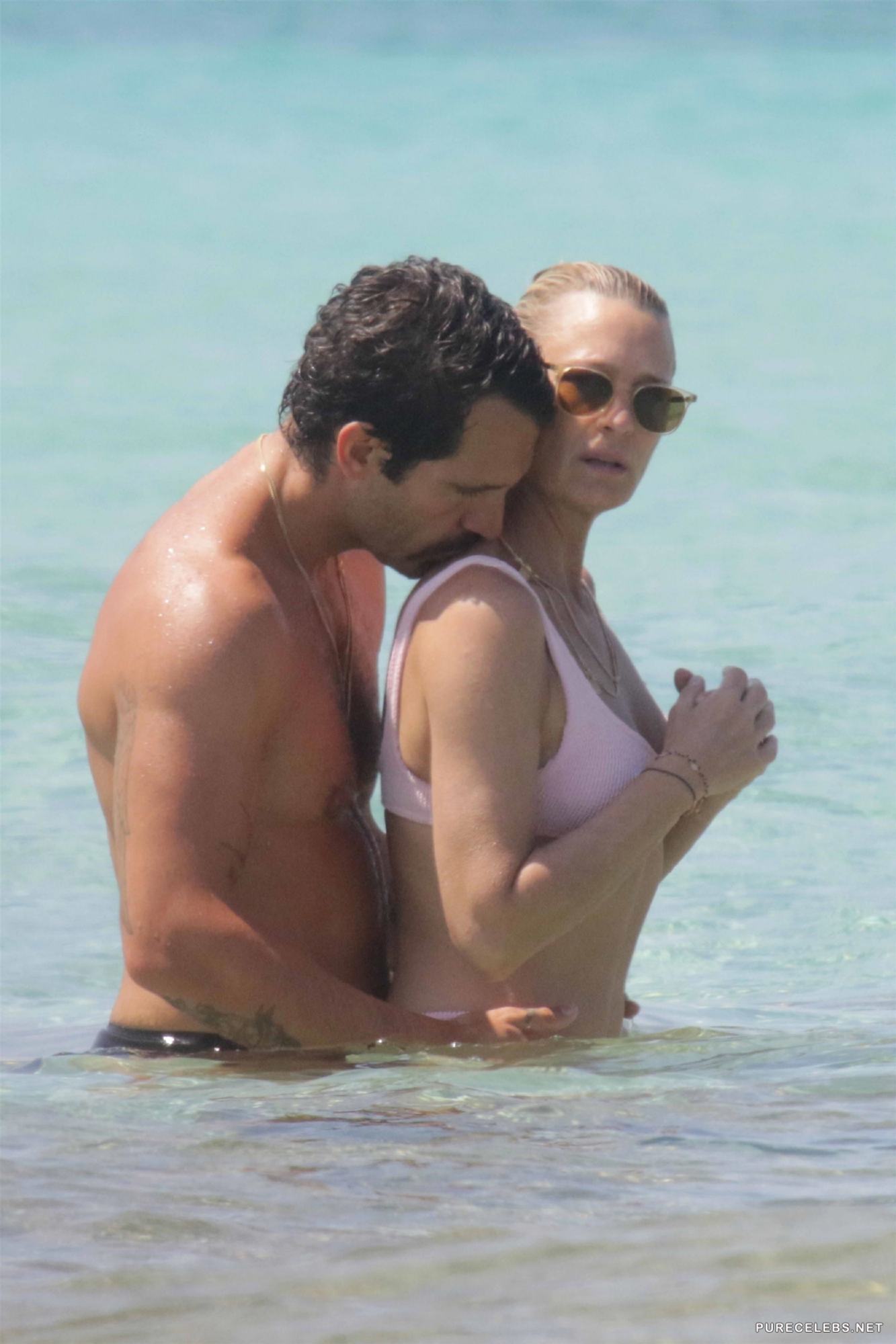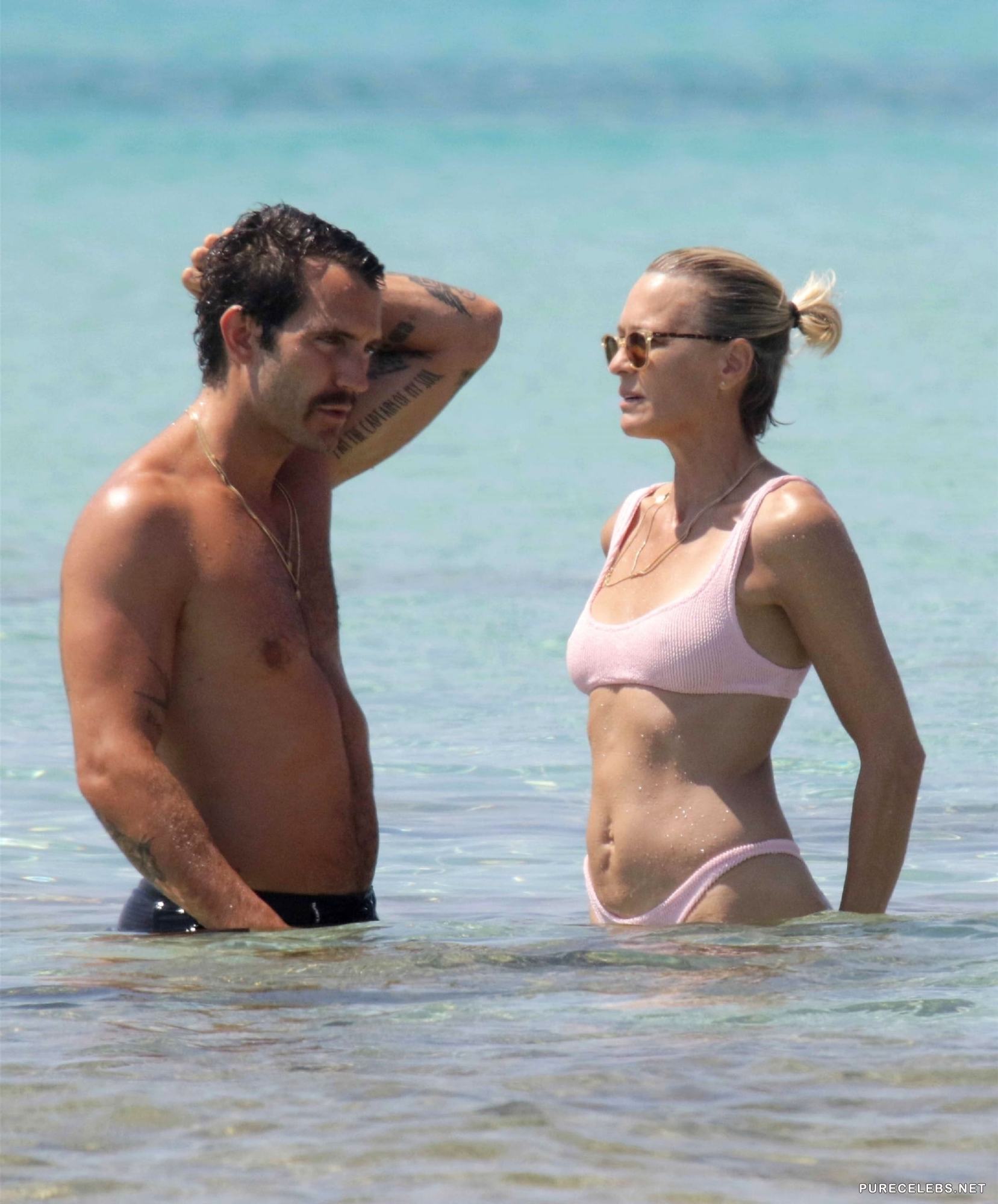 Looking good in her fifties, enjoying the time with her husband, Robin Wright seems quite happy and relaxed during a well deserved vacation away from every day stress and tons of work. This blonde TV face and mother of two looks stunning in a bikini that reveals enough of skin for her to tan nicely and lets us see that she has a nice, firm butt there, as well.