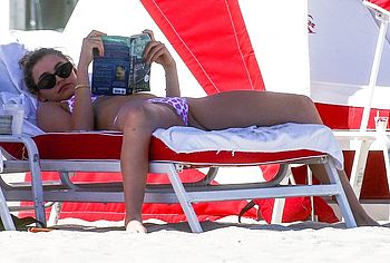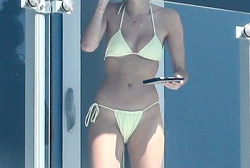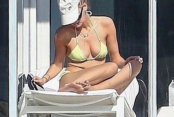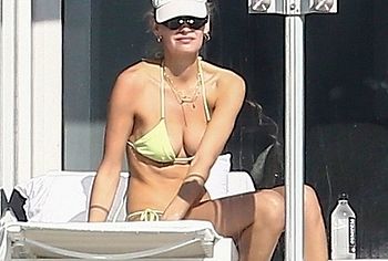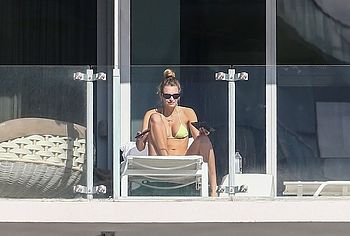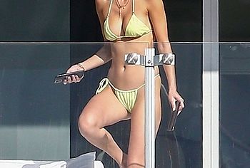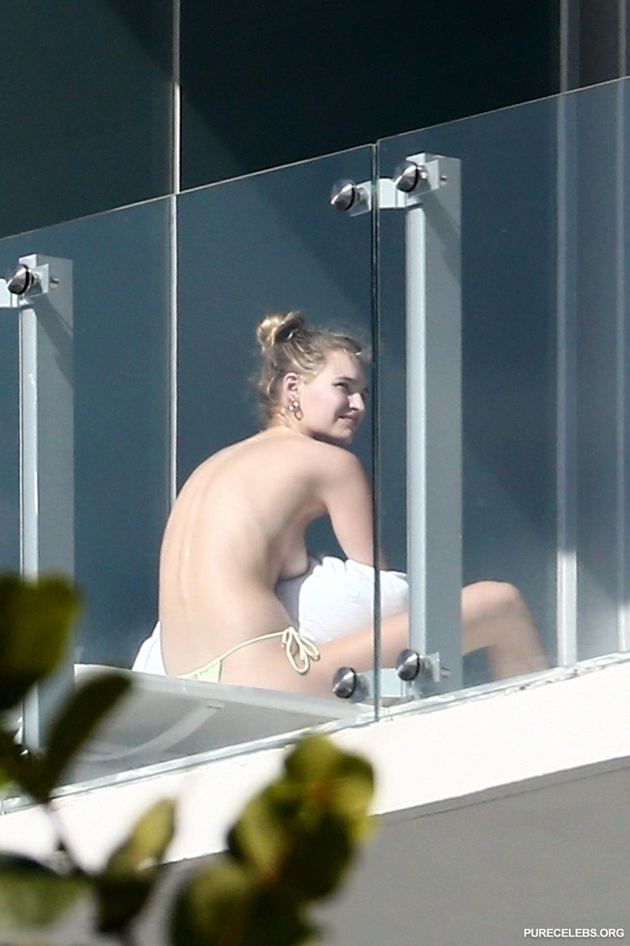 Dutch model Roosmarijn de Kok accidentally flashed her nude boobies. This beauty, known for her work for Victoria Secret, was just relaxing on the balcony. It is unlikely that the celebrity suspected that paparazzi were photographing her. Otherwise, she would not have sat on a transparent balcony in narrow thongs and topless. Roosmarijn de Kok’s sweet nude titties were only slightly covered by a pillow, so paparazzi managed to photograph them.