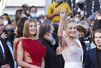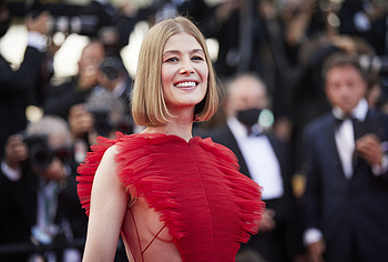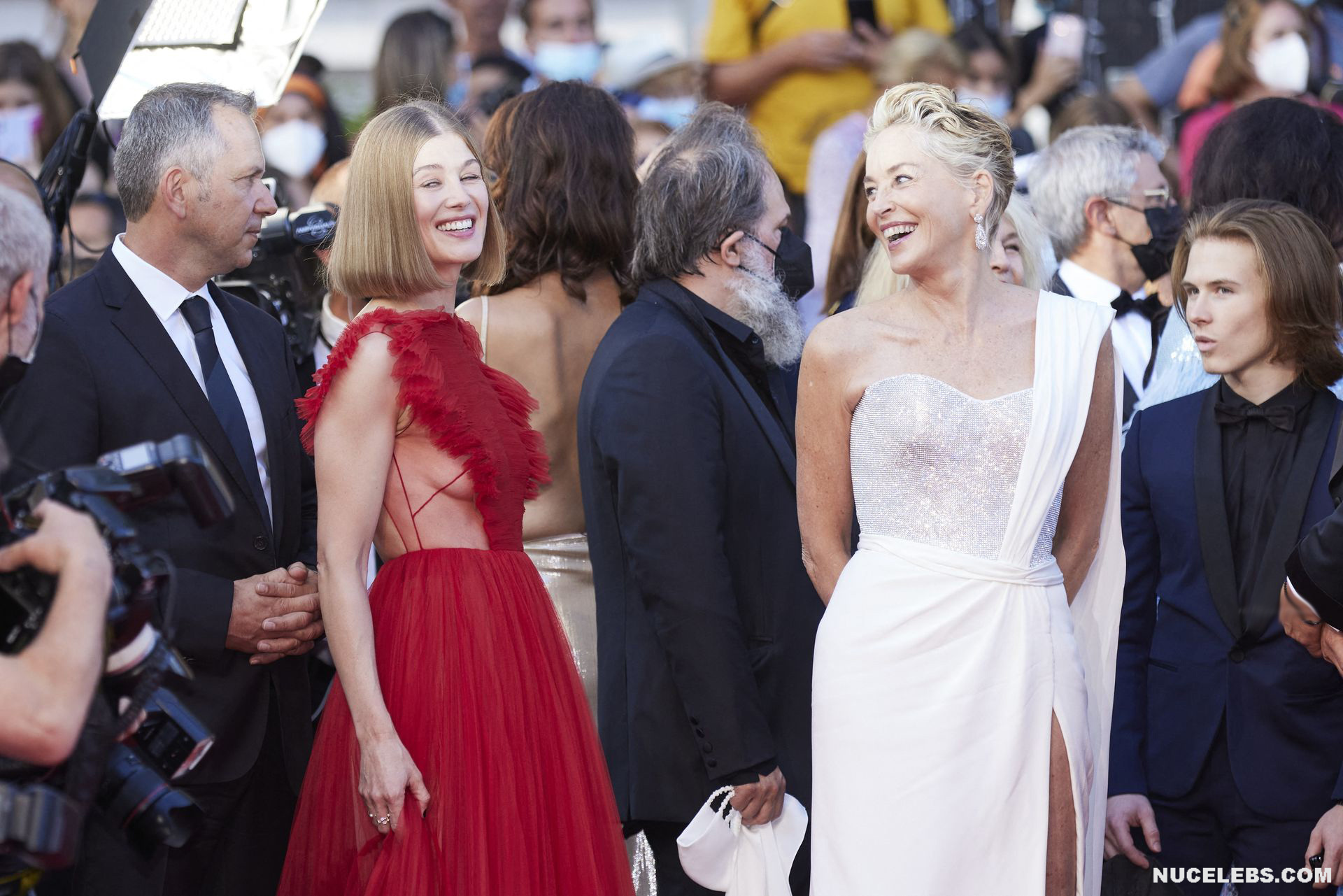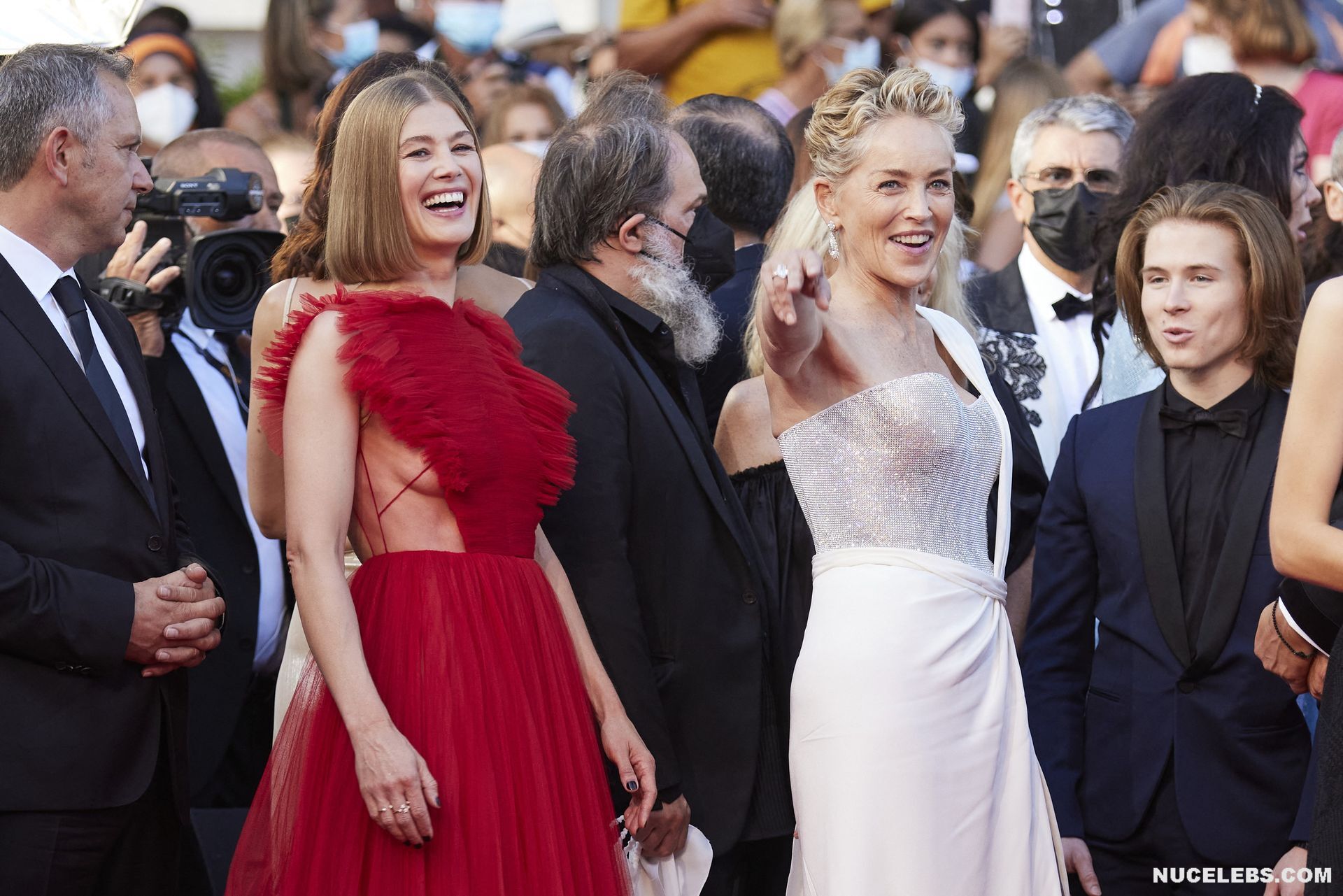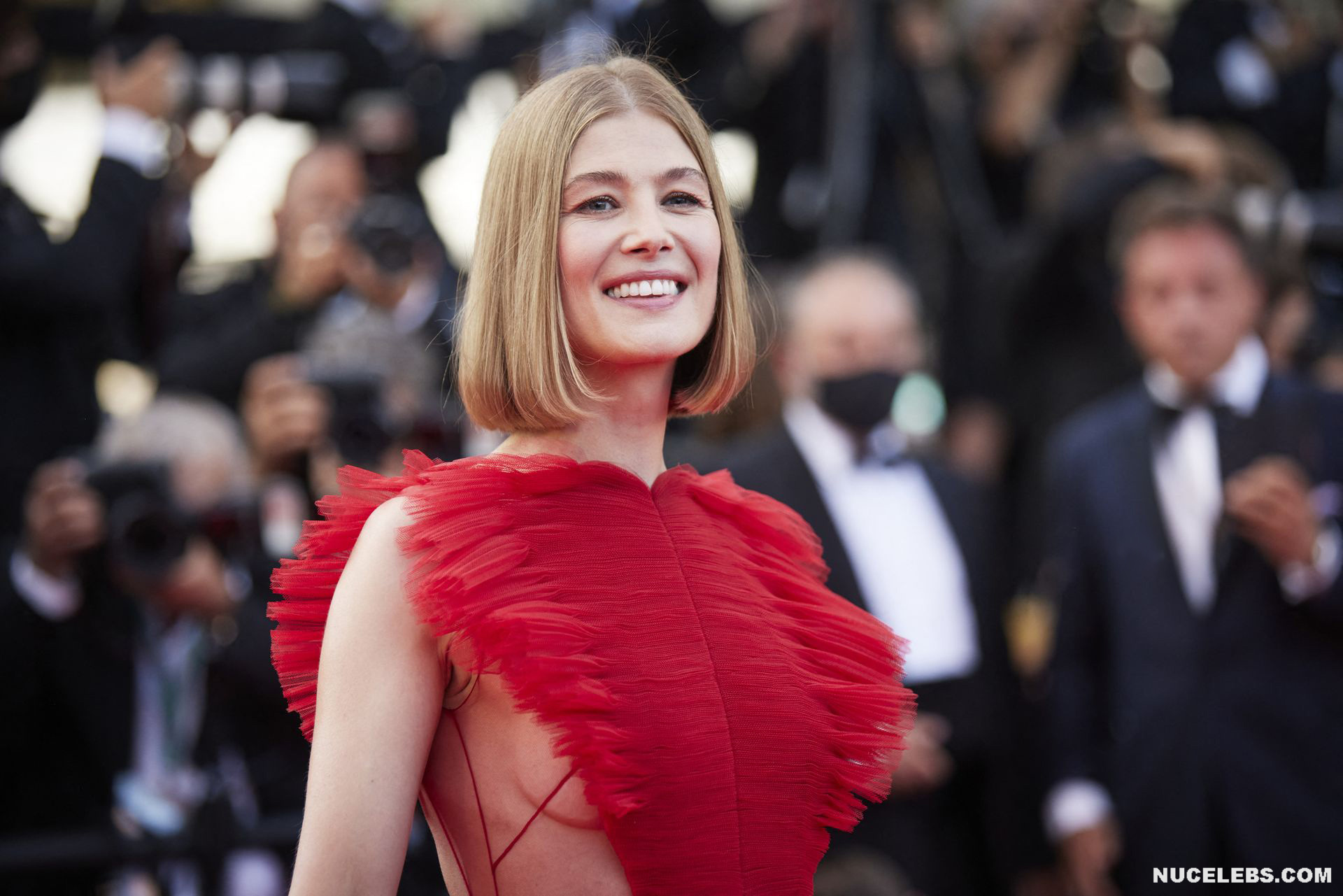 English actress Rosamund Pike decided to impress everyone at one of the events. And so this celebrity wore a long red dress that looked very provocative because of its design. So, the back of this English actress was completely naked. But beyond that, Rosamund Pike’s boobies were also nude! When the celebrity turned sideways, they looked out of her dress, and only the nipples remained covered! Well, no wonder everyone was just staring at Rosamund Pike and her almost nude tits!