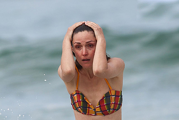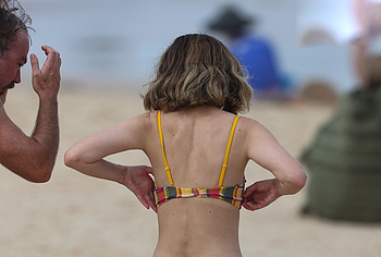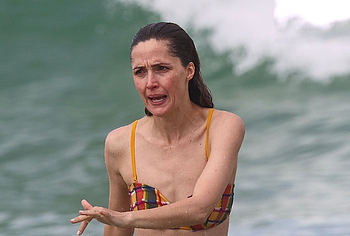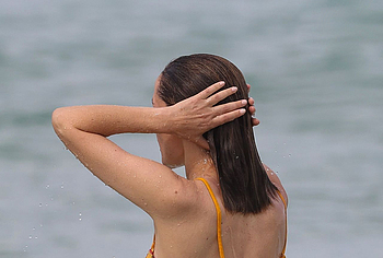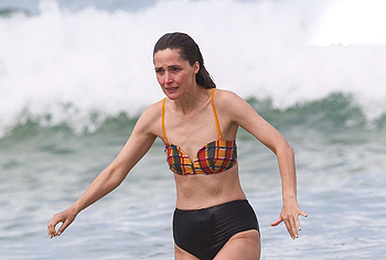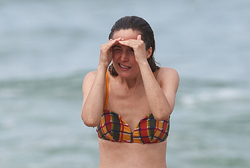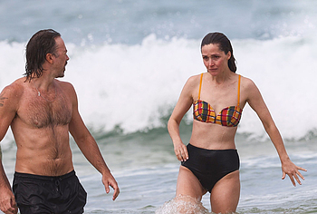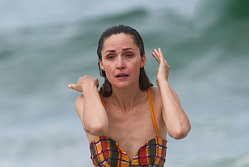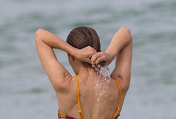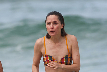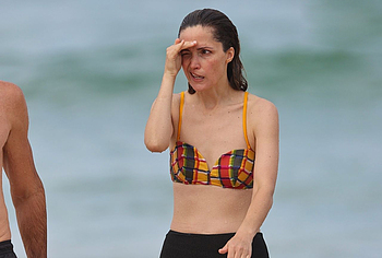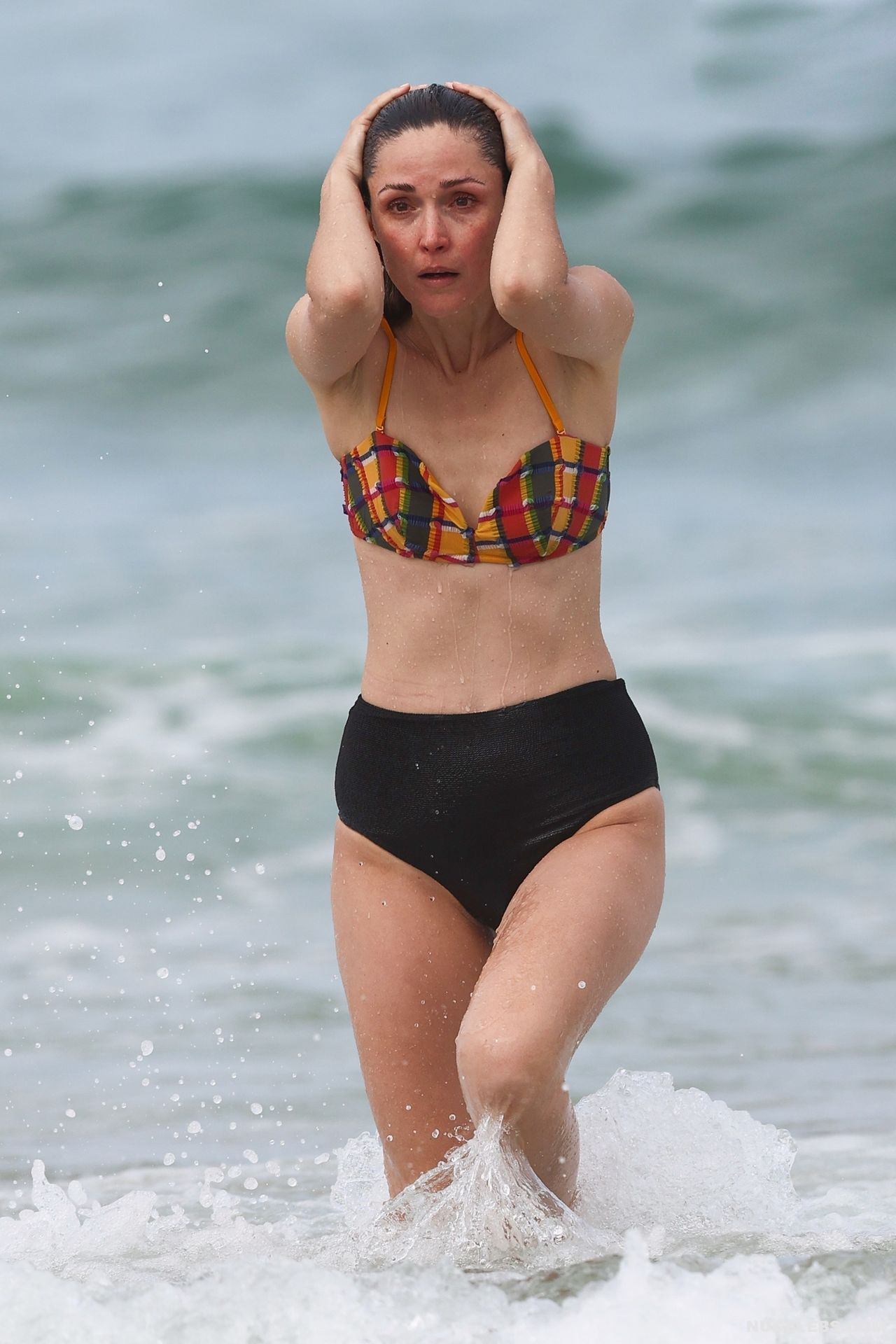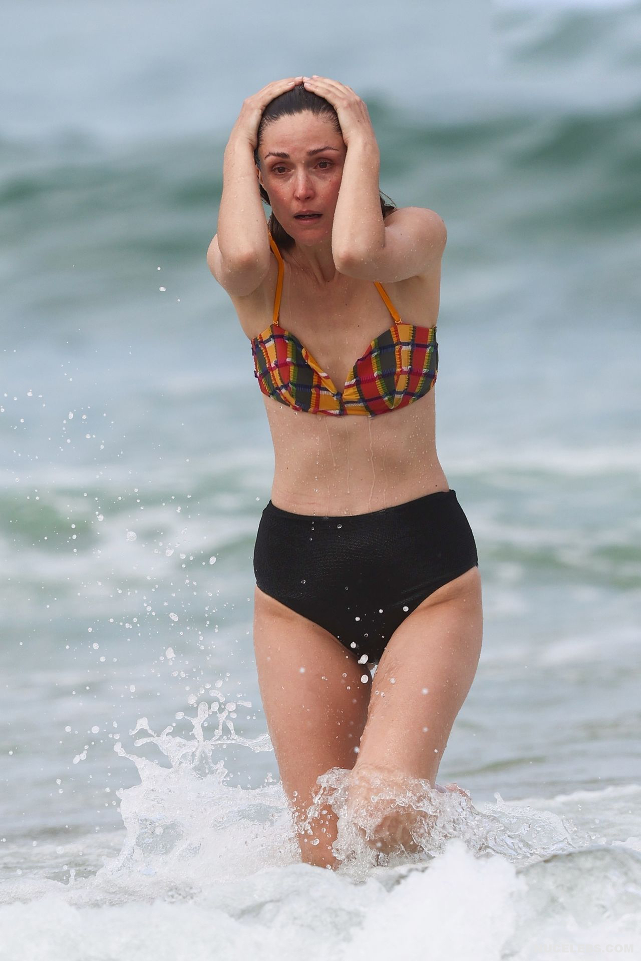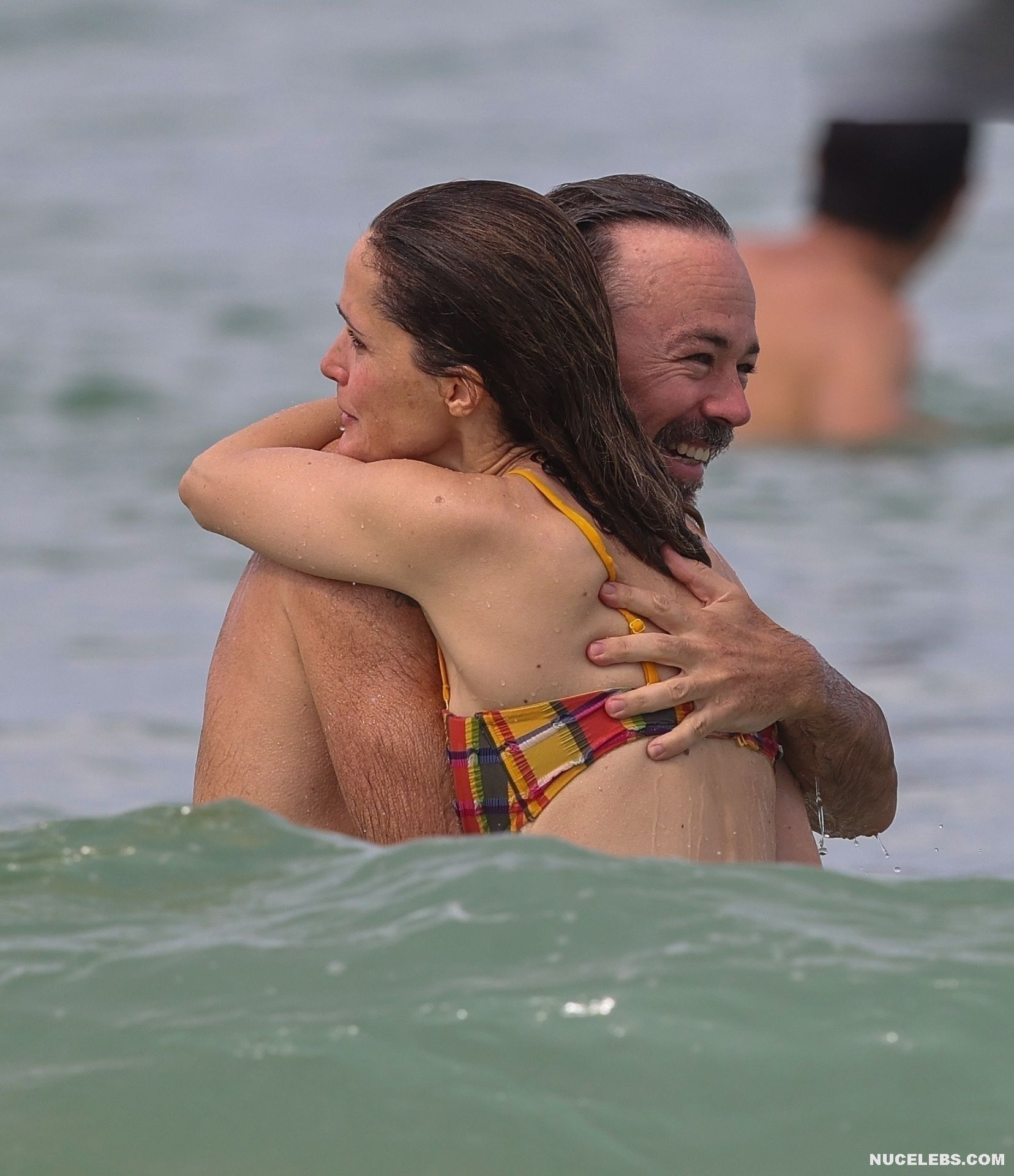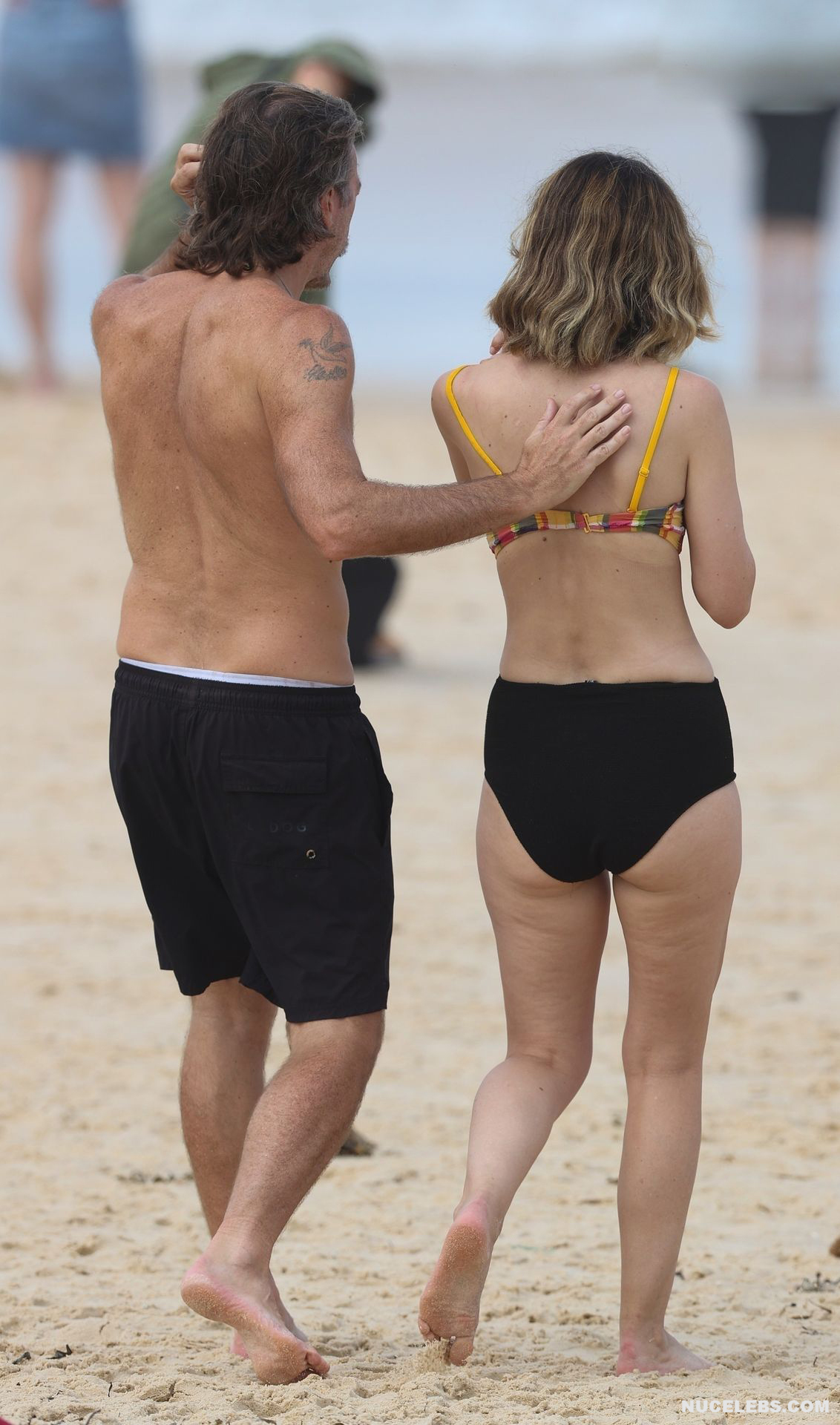 Rose Byrne will impress you with her amazing slim figure in a wet bikini during her vacation. The paparazzi photographed her at the moment when she was leaving the water. And it is worth noting that Rose Byrne’s booty in black panties looked very seductive, although it was not nude. Rose Byrne also periodically adjusted her plaid bra so that her nude boobies would not slip out of it.