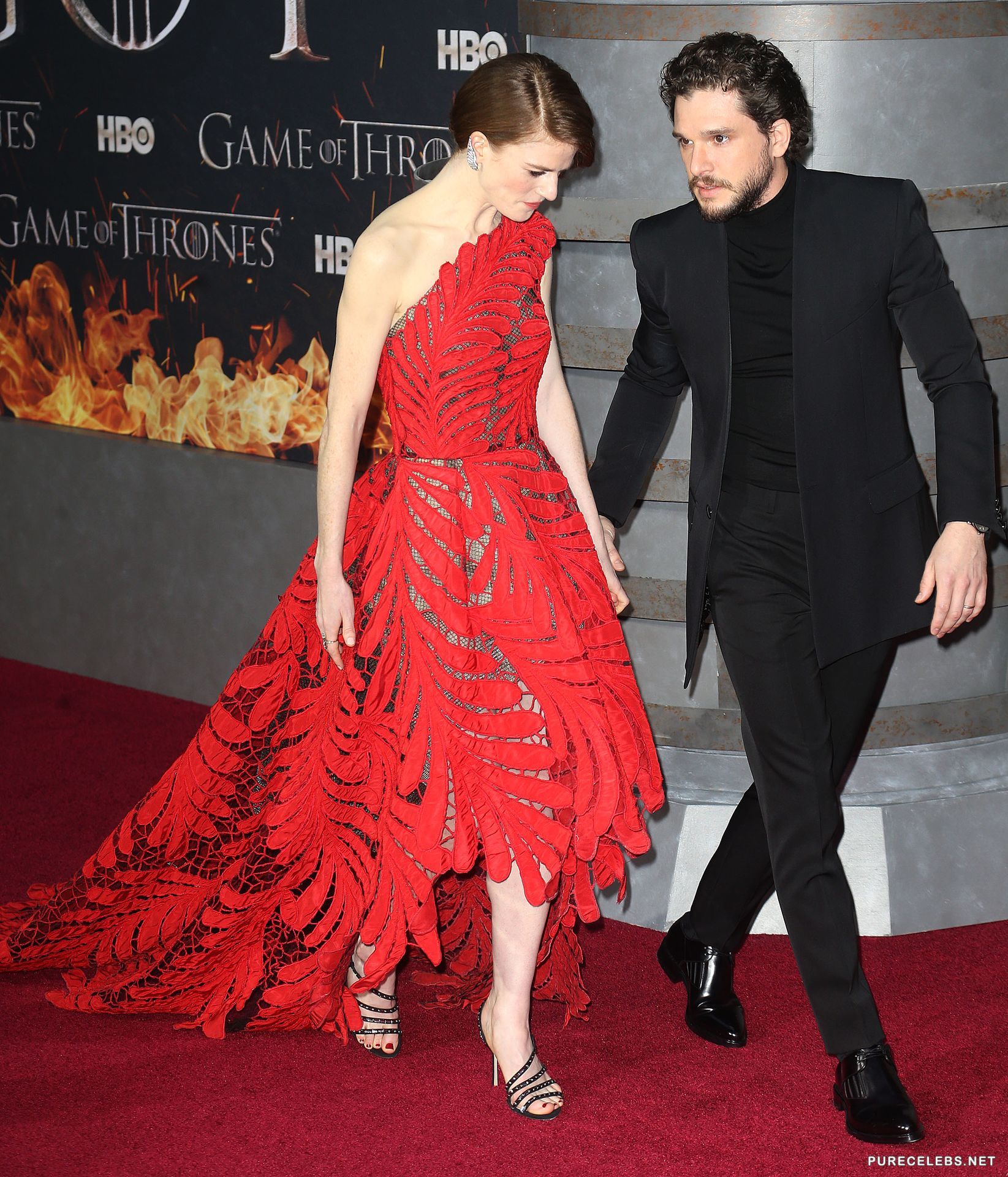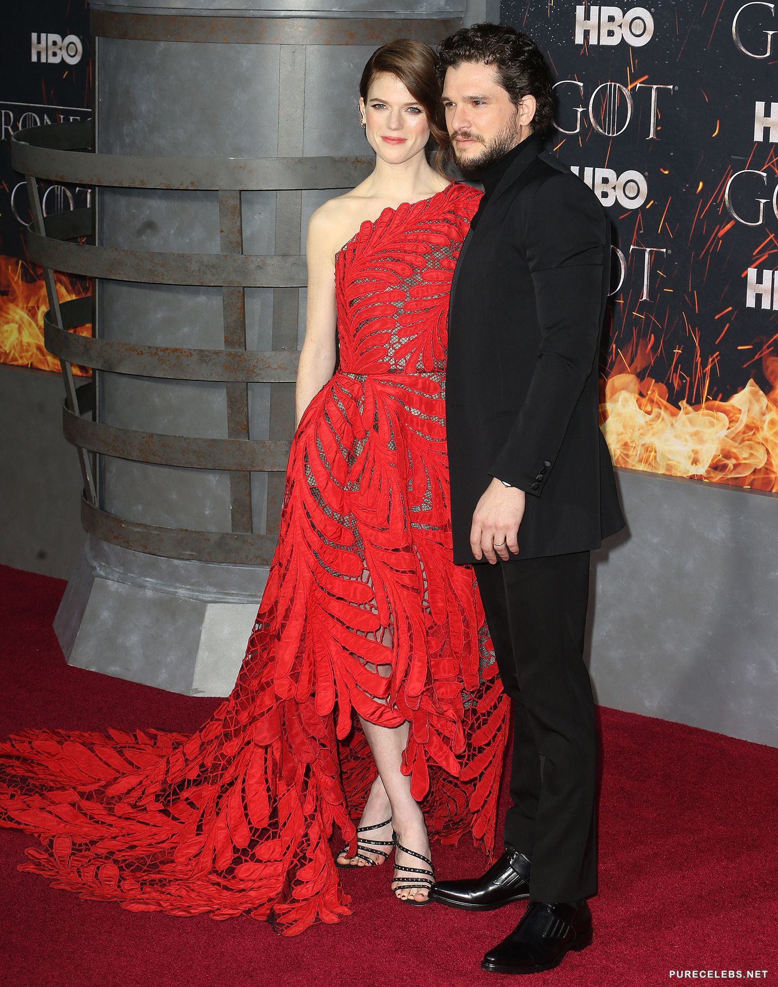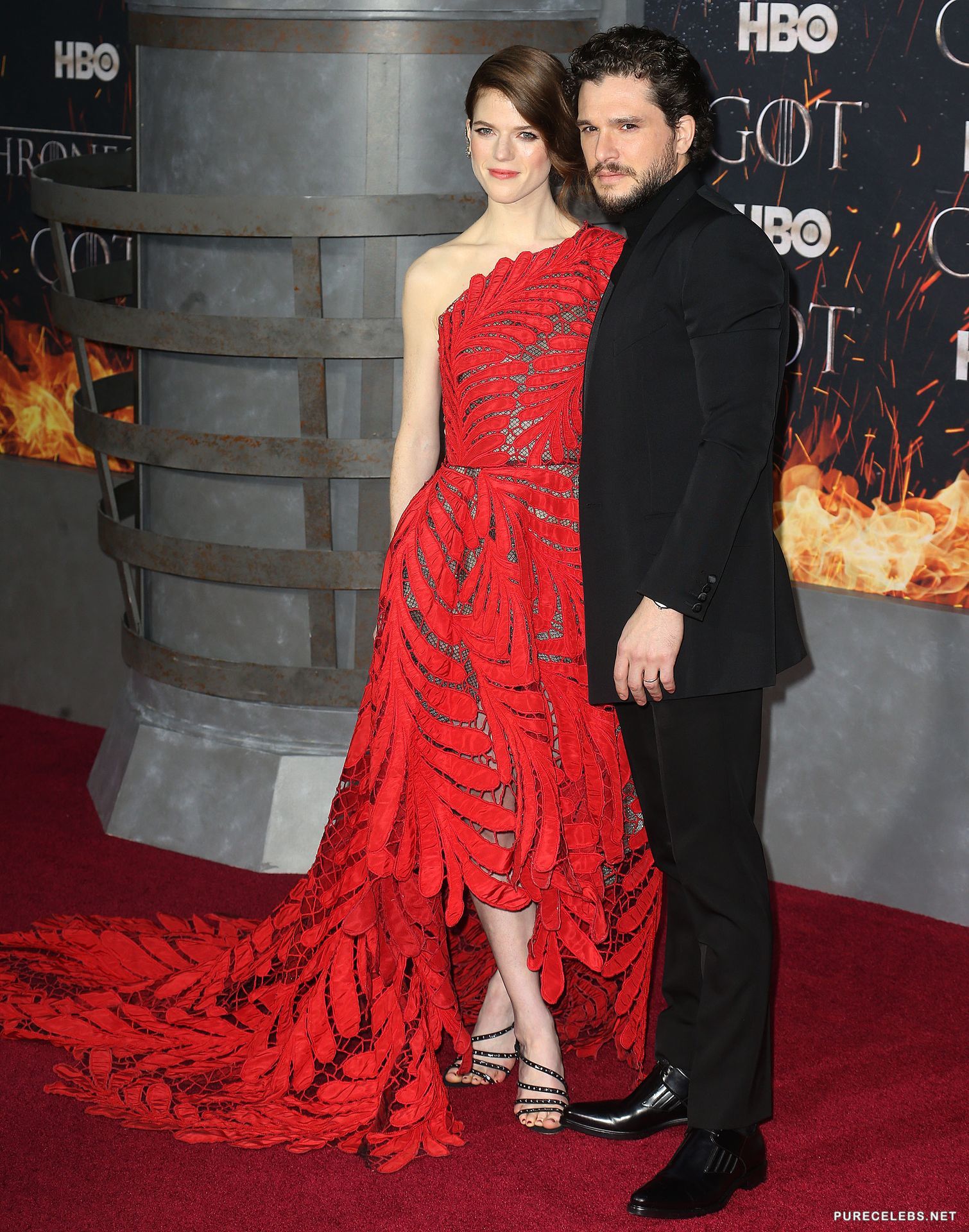 Recently, Rose Leslie attended a premiere of the 8th season of the Game of Thrones took place in New York. The actress chose for herself an elegant and at the same time defiant look. She wore a long beautiful red fitting dress and looked really stunning in it. Her hair was beautifully styled, and she had a light gentle make-up which added romance and mystery to her look.