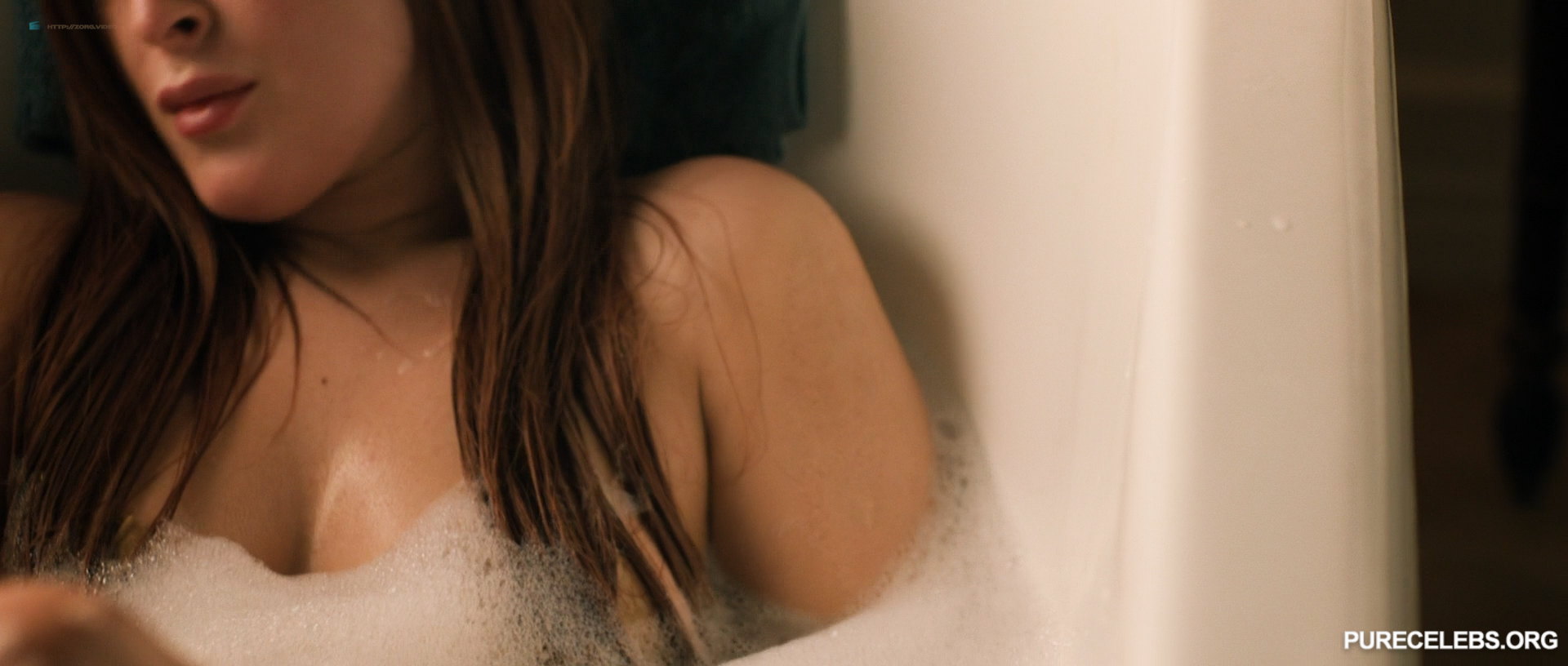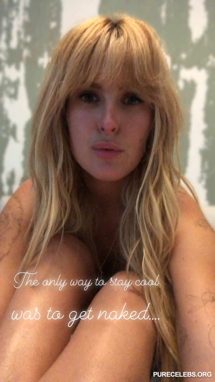 The eldest daughter of Demi Moore and Bruce Willis, Rumer Willis loves to impress the public. For example, at one of the events, this celebrity appeared in a long beige dress with a low neckline. As a result, everyone around could see the nude tits of Rumer Willis through the transparent fabric. Also, this celebrity is not shy about posing topless. This is evidenced by her black and white photo, in which she stands with her hands clasped in her head. And her miniature naked boobs with hard nipples are on display. Rumer Willis also played wonderfully in nude and sexy scenes in Hello Again (2017). This hot babe will sit on the bed in sexy black lingerie and a blue robe, seducing her boyfriend. Rumer Willis will also take a foam bath completely naked.