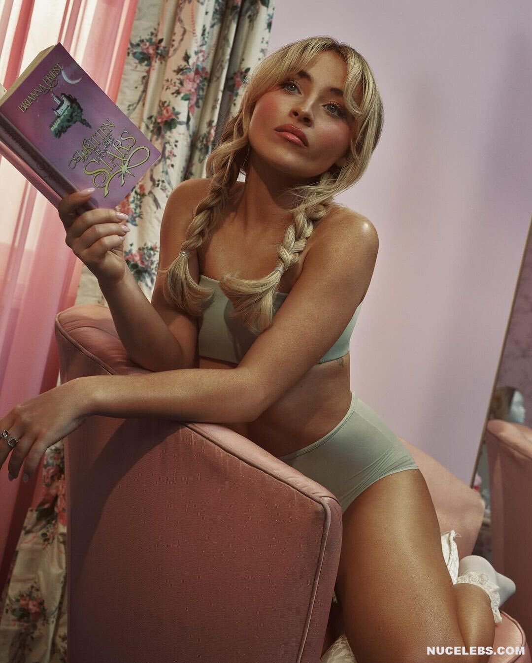 Sabrina Carpenter is not one of those celebrities who pose nude often. However, this 24-year-old beauty loves to show off her amazing figure in lingerie. Check out the photos of this actress posing in a pink lace corset. The thin fabric perfectly hugs Sabrina Carpenter’s sweet tits and emphasizes her narrow waist. And her amazing celebrity pussy is hidden from our view under miniature panties.