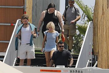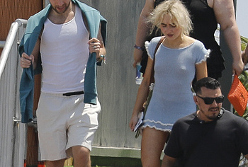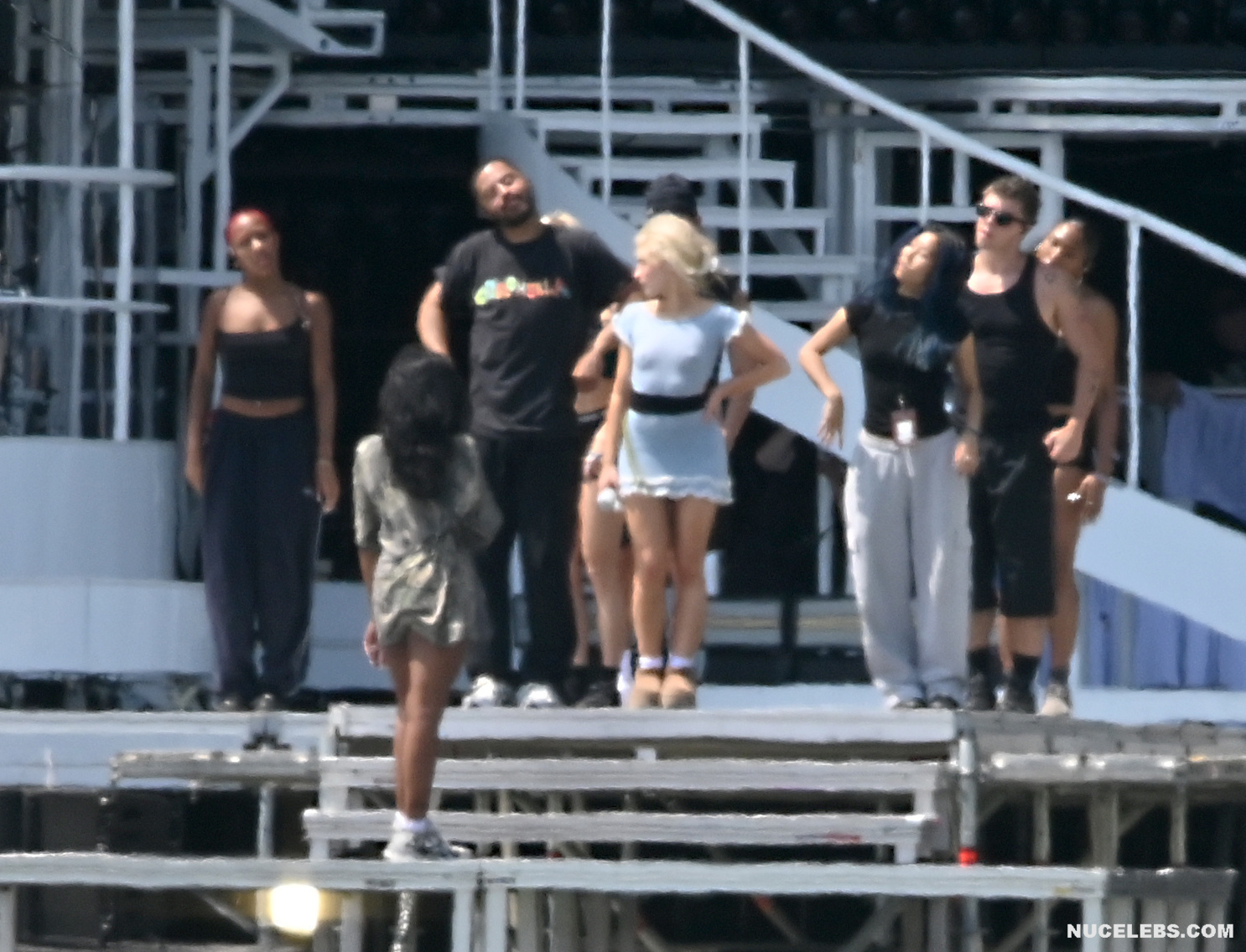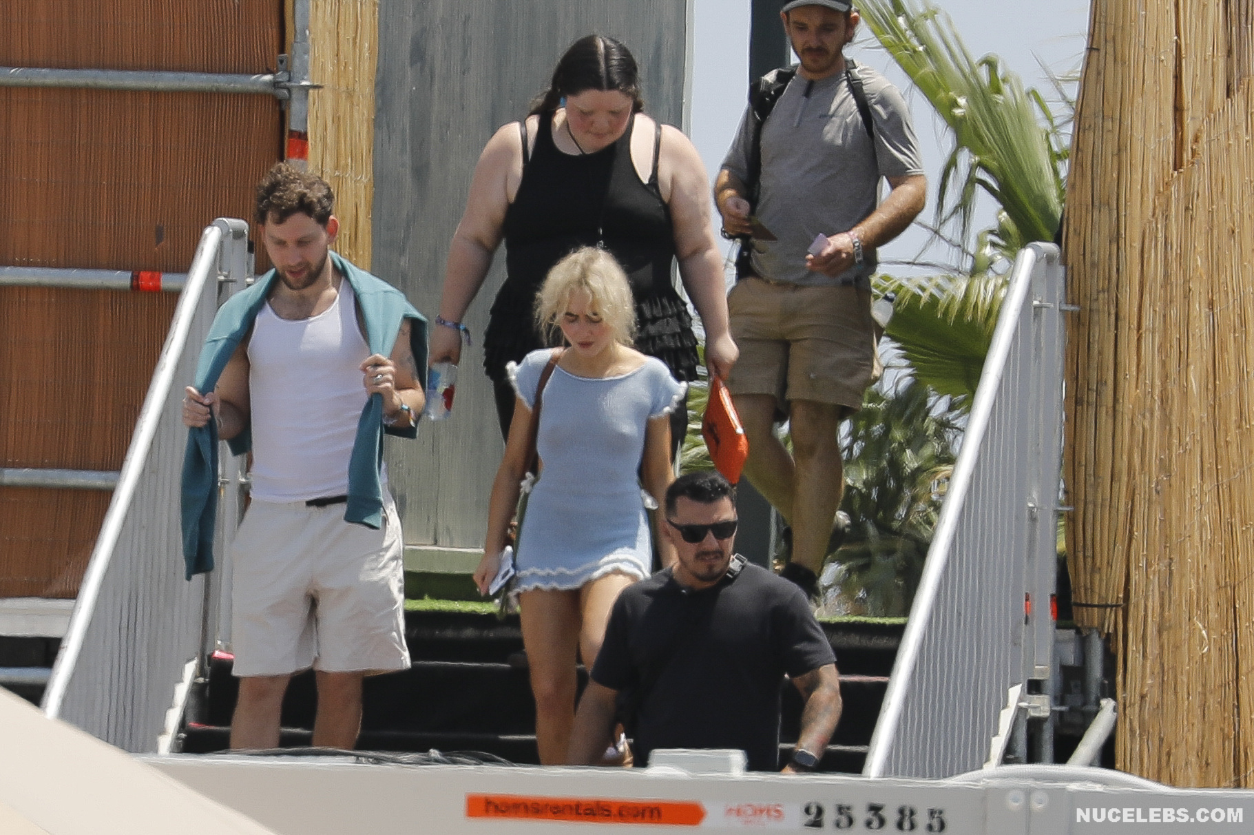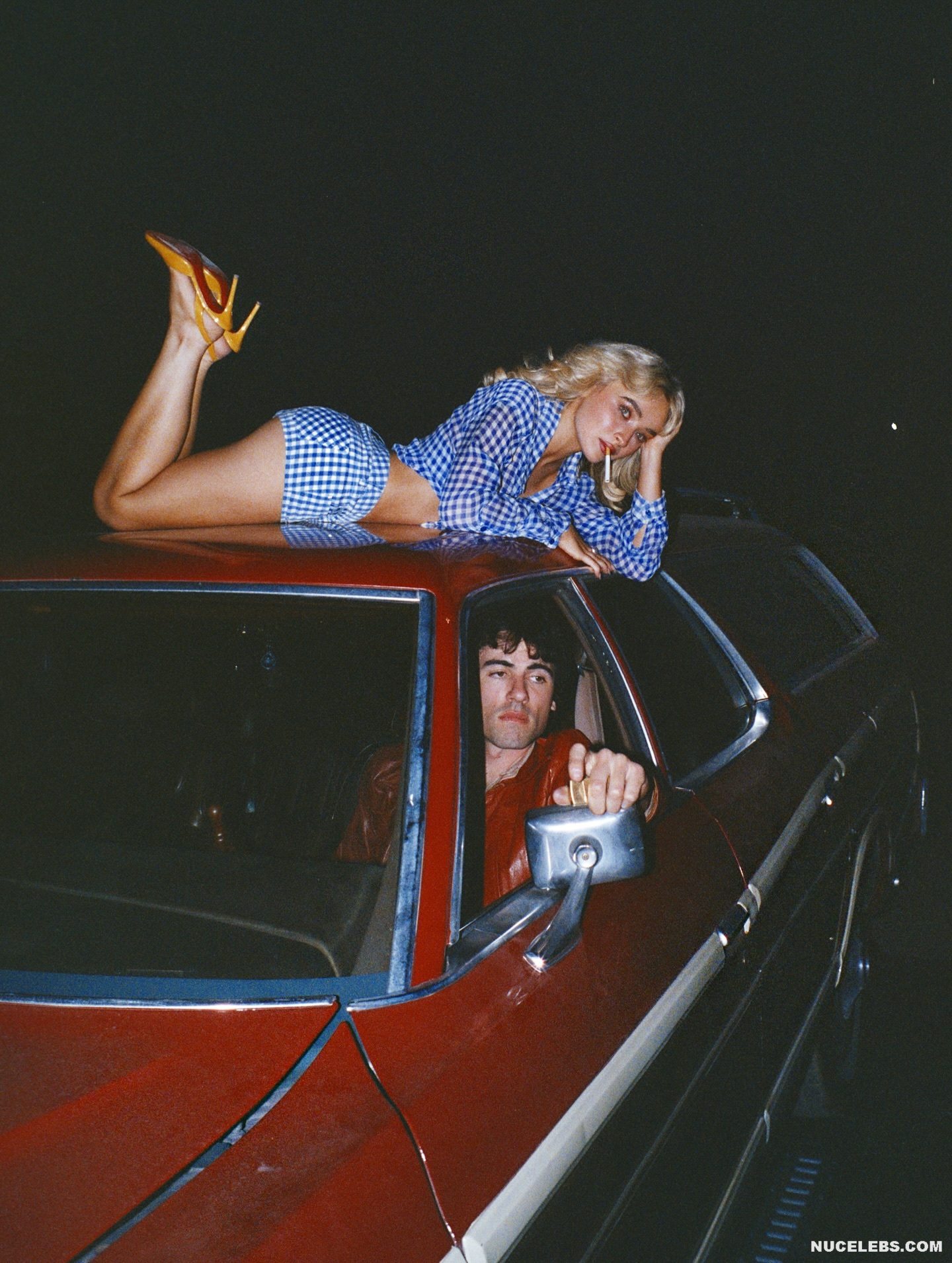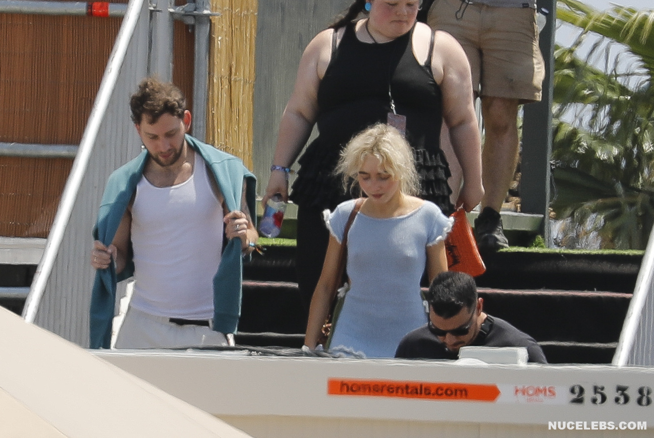 Everyone criticized Sabrina Carpenter’s new album cover, but honestly, it’s divine. Even though she covered most of her body with her hair, we can still enjoy the view of Sabrina Carpenter’s naked ass. And those white stockings only add fuel to the fire. On top of that, recent paparazzi photos, show Sabrina wearing a blue thin dress, give us a full view of Sabrina’s tits.