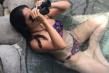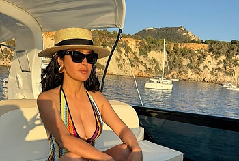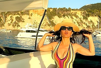 Explore the elegance and allure of Salma Hayek with stunning bikini and sexy photos. When you see this charming actress in a bikini, you will not be able to look at anything else except her bust. Oh yes, Salma Hayek is the owner of huge juicy boobs that barely fit in her bras. Agree, she looked damn sexy posing in a red bikini and a light hat on the seashore. The bra perfectly hugged her wonderful breasts, and the small panties emphasized the beauty of her slender hips.