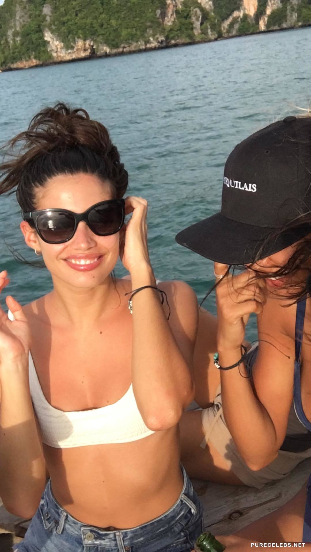 Model Sara Sampaio traveled to Thailand this year to pose for a bikini photo shoot. The gorgeous bombshell wore a miniature white thong bikini that perfectly displayed her tiny tits and round ass. As she stood in the clear water you can see her hard nipples poking out of her bathing suit. Sexy Sara even took some time away from the shoot to snap some selfies with other crew members.