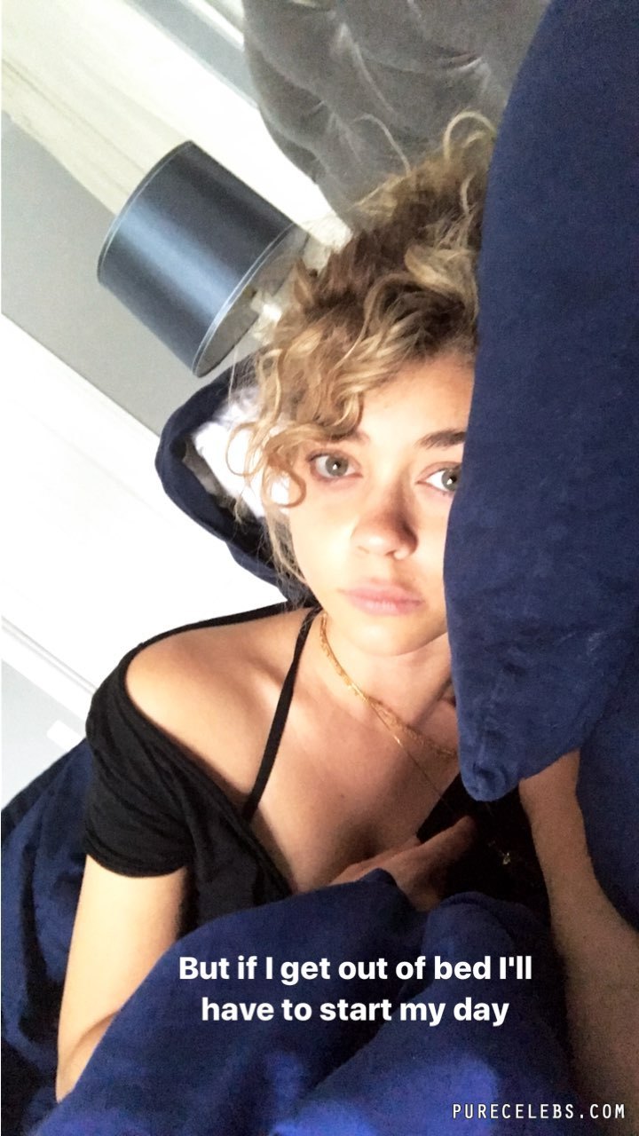 Star of the hit TV show Modern Family, Sarah Hyland woke up this morning and thought she looked particularly cute with her messy hair. She decided to post a selfie of her shaggy hairdo on Instagram, but failed to wear a shirt. Lucky for us, her nipple was ready and waiting to get in the shot and make this one seductive photo. Sarah is looking hotter than ever, especially when she is naked in bed.