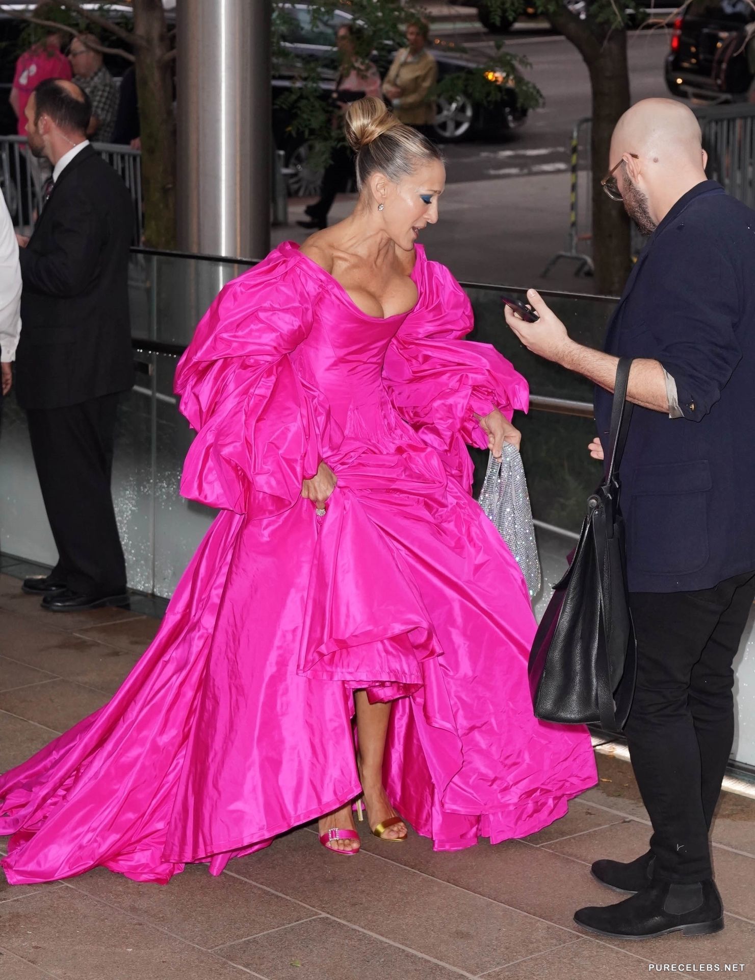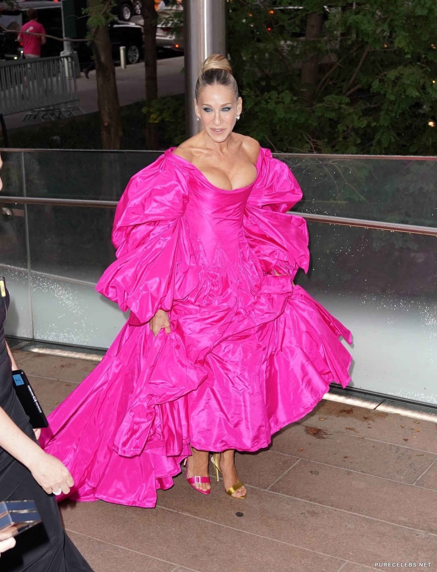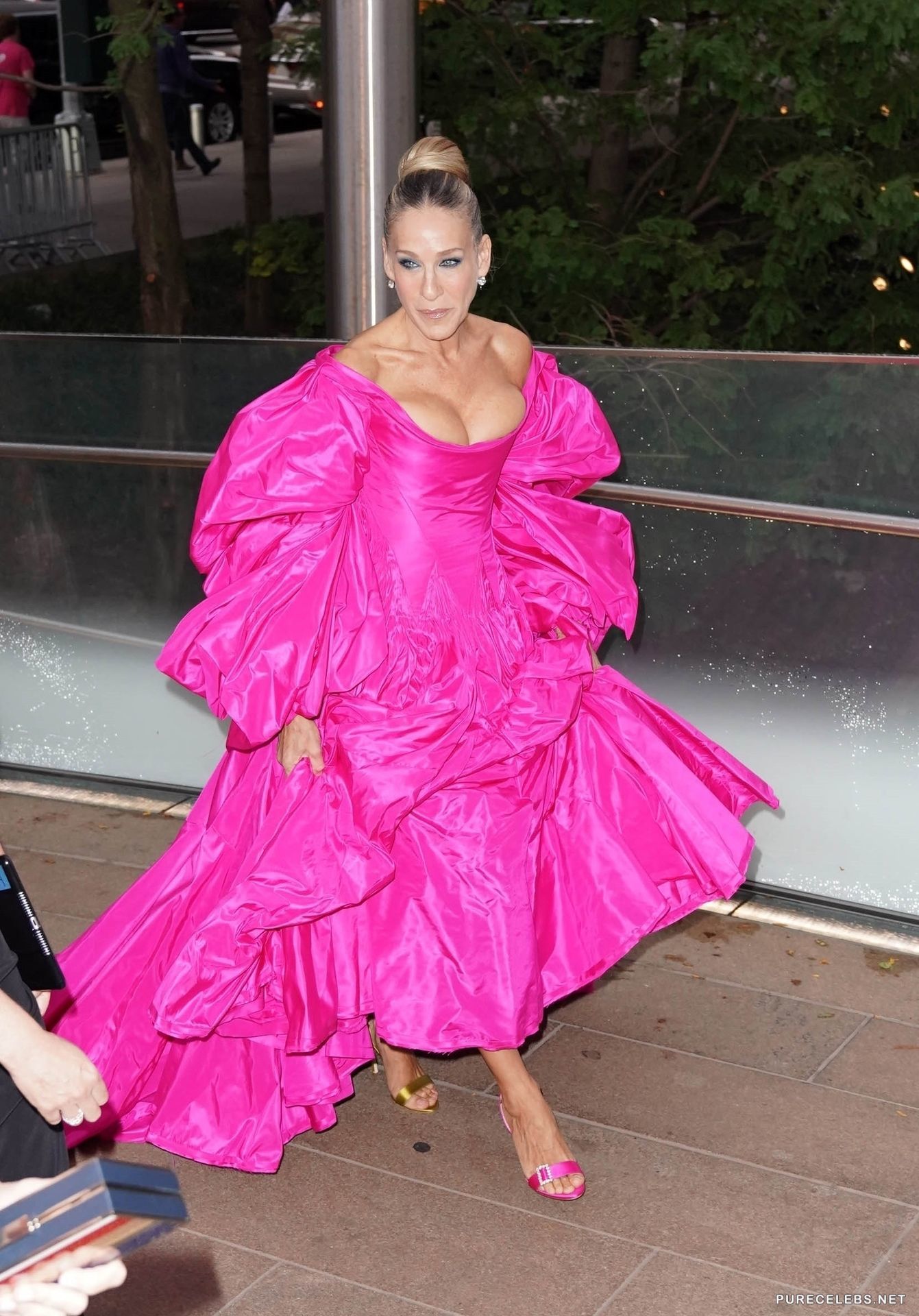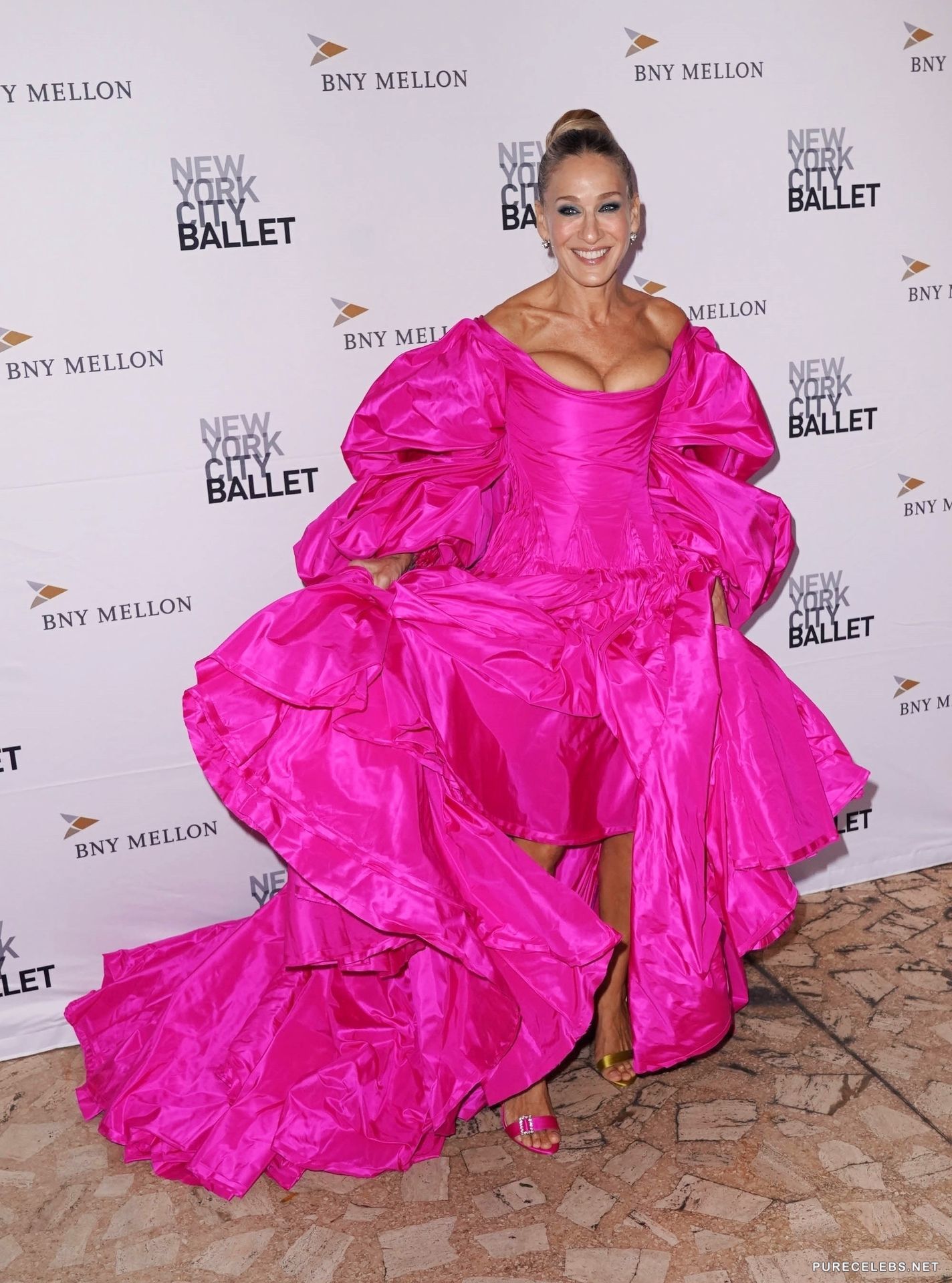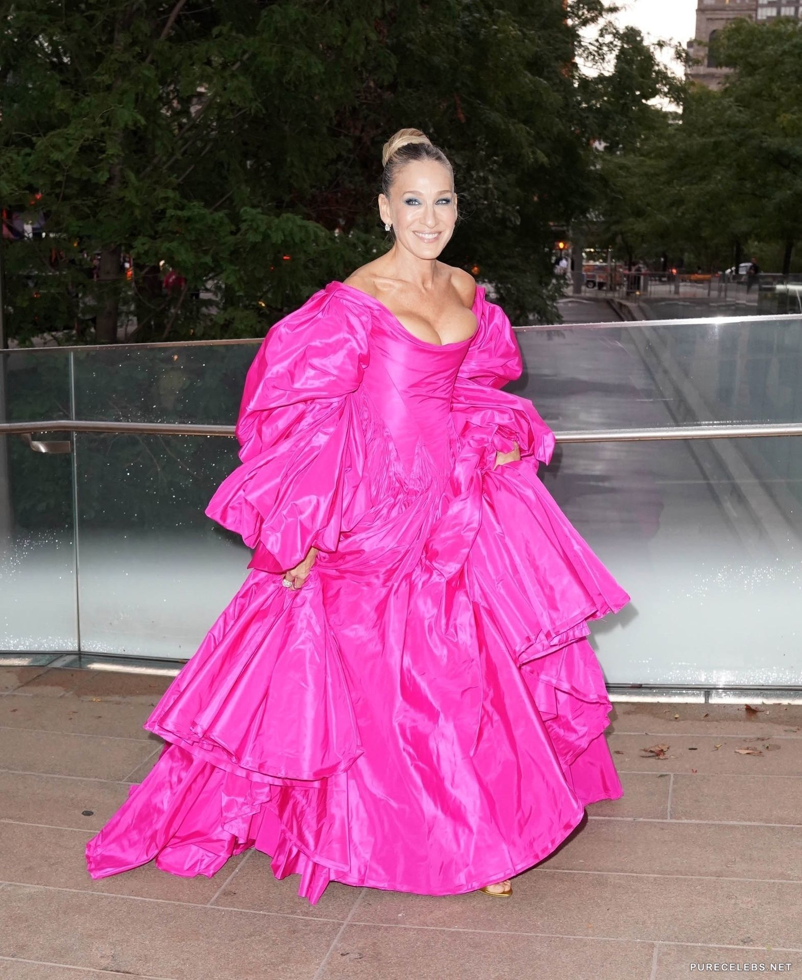American actress Sarah Jessica Parker is always in the spotlight at any event. So it happened this time. The charming blonde arrived at the event in a bright pink puffy dress with a deep neckline. Well, it is not surprising that the attention of all around was focused on her awesome boobs, which seemed to be able to jump out of the dress at any time. Agree, it is simply impossible to resist this hot celebrity!