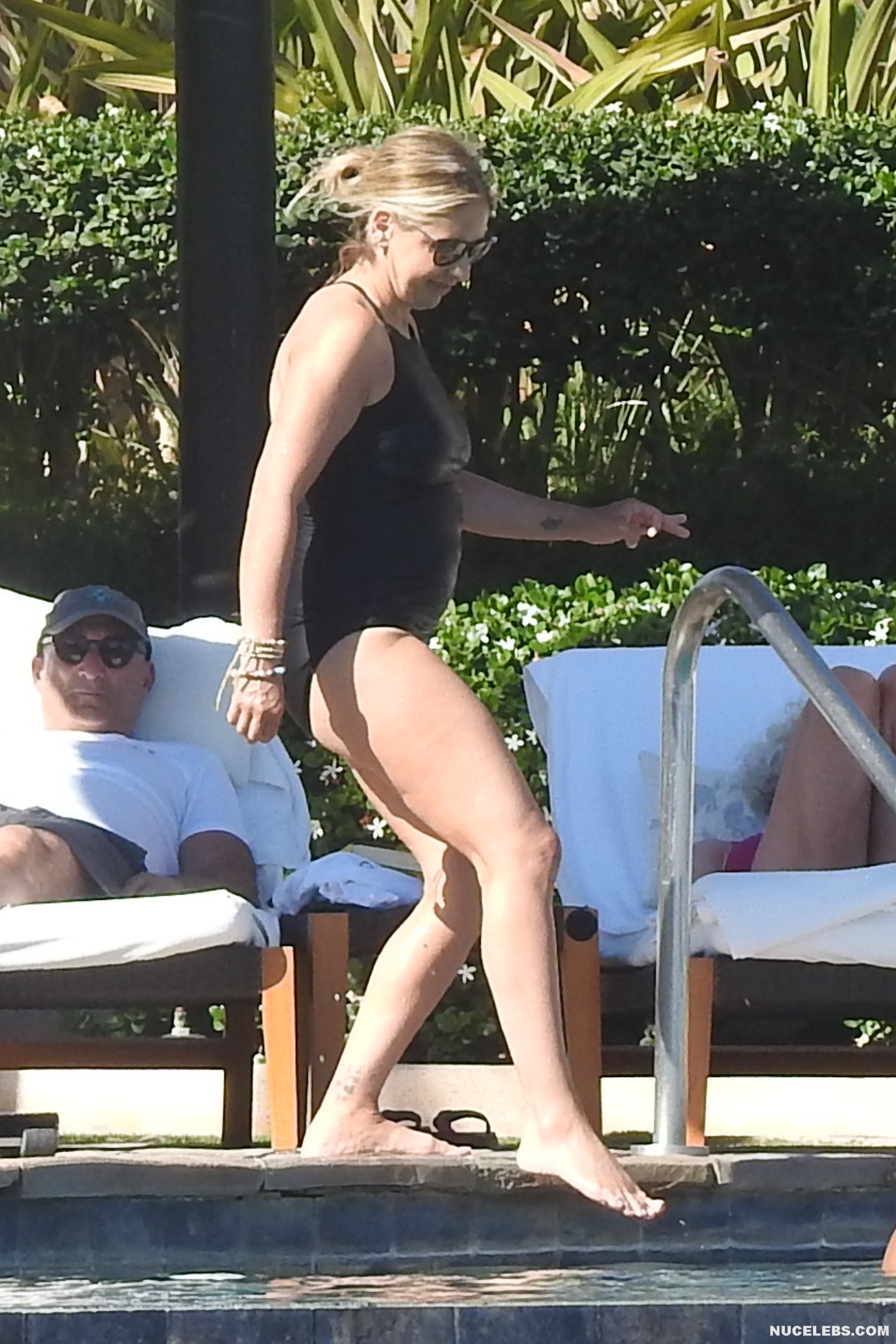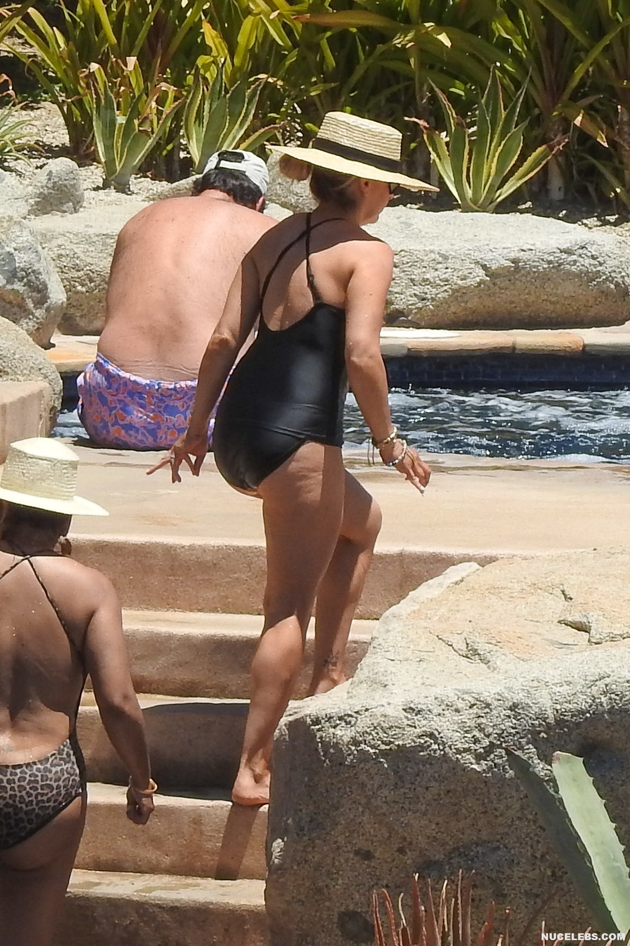 Sarah Michelle Gellar is in no hurry to pamper us with her nude photos. However, the paparazzi managed to photograph this blonde during her beach vacation. And while Sarah Michelle Gellar was not nude, the black form-fitting swimsuit perfectly accentuated the curves of her plump body. Additionally, Sarah Michelle Gellar also showed off the sides of her nude boobs as she posed in a low cut black robe in the bathtub.
