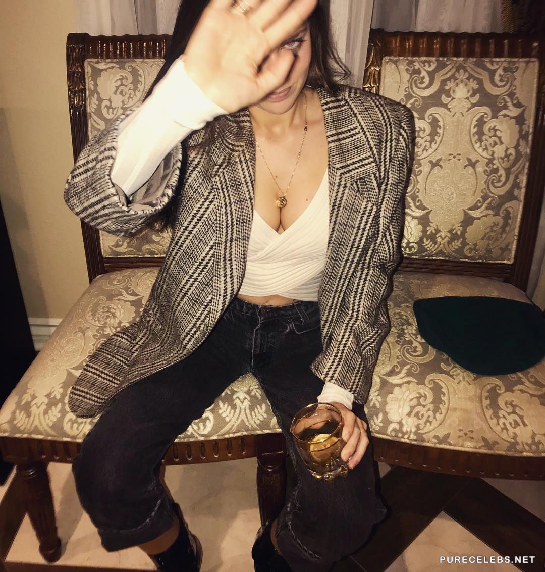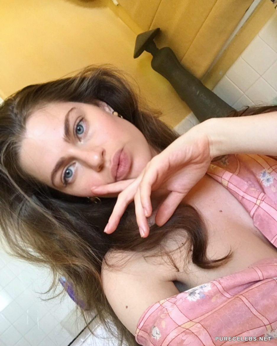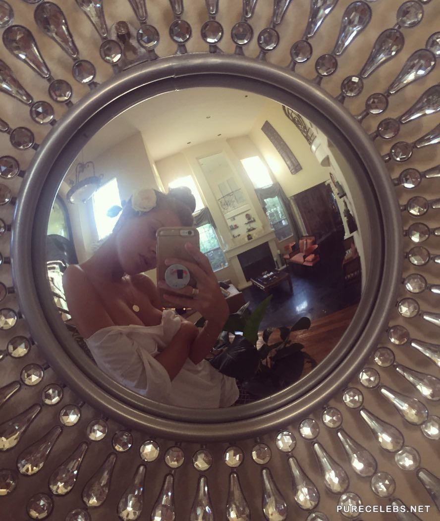 Beautiful Australian model and actress Sarah Stephens took some really sexy selfies. She is looking amazingly good and she is willing to share those pictures with us. We see her in sexy bra that is barely holding her big heavy boos with nipples poking out. On other pictures she is topless in her room and outside, just enjoying being bra-less and drinking coffee while being so.