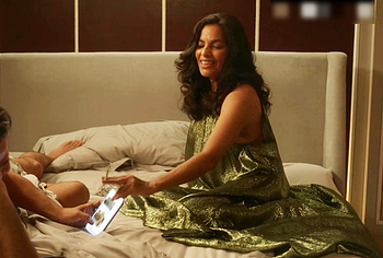 Check out Sarita Choudhury nude in And Just Like That. This hot brunette was enjoying sensual sex on the bed. The actress was moaning sweetly as the man fucked her in missionary position. However, she enjoyed cowgirl sex even more. The man was caressing Sarita Choudhury nude boobies while she was riding his cock non-stop. You should definitely see it!