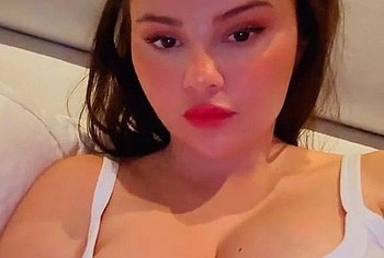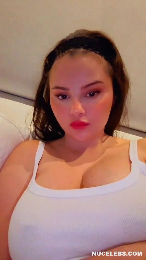 Selena Gomes feels absolutely confident in the new weight. And it looks like she thinks it’s a great excuse to take a selfie for you. This 30-year-old celebrity wore a low-cut white bodycon top. And Selena Gomes boobs looked just huge and she tried to point her phone camera so that you could better see them from different angles.