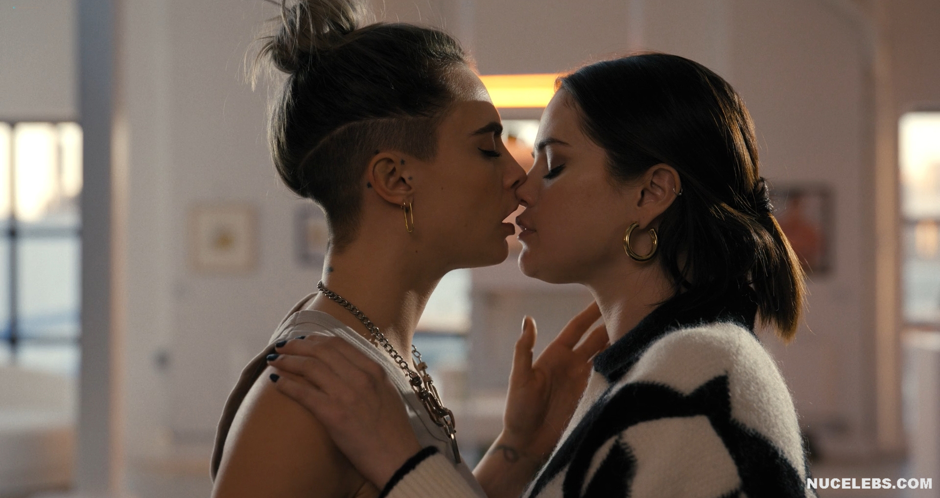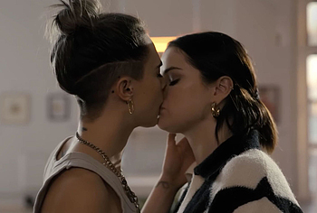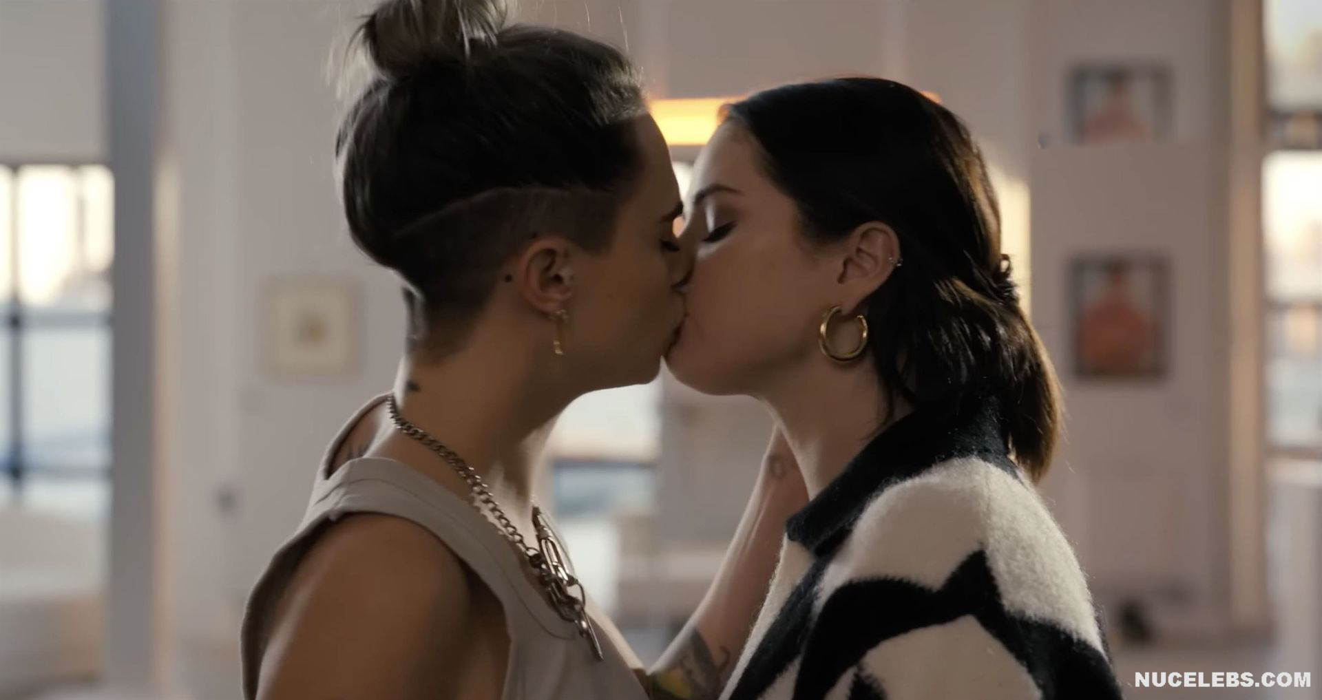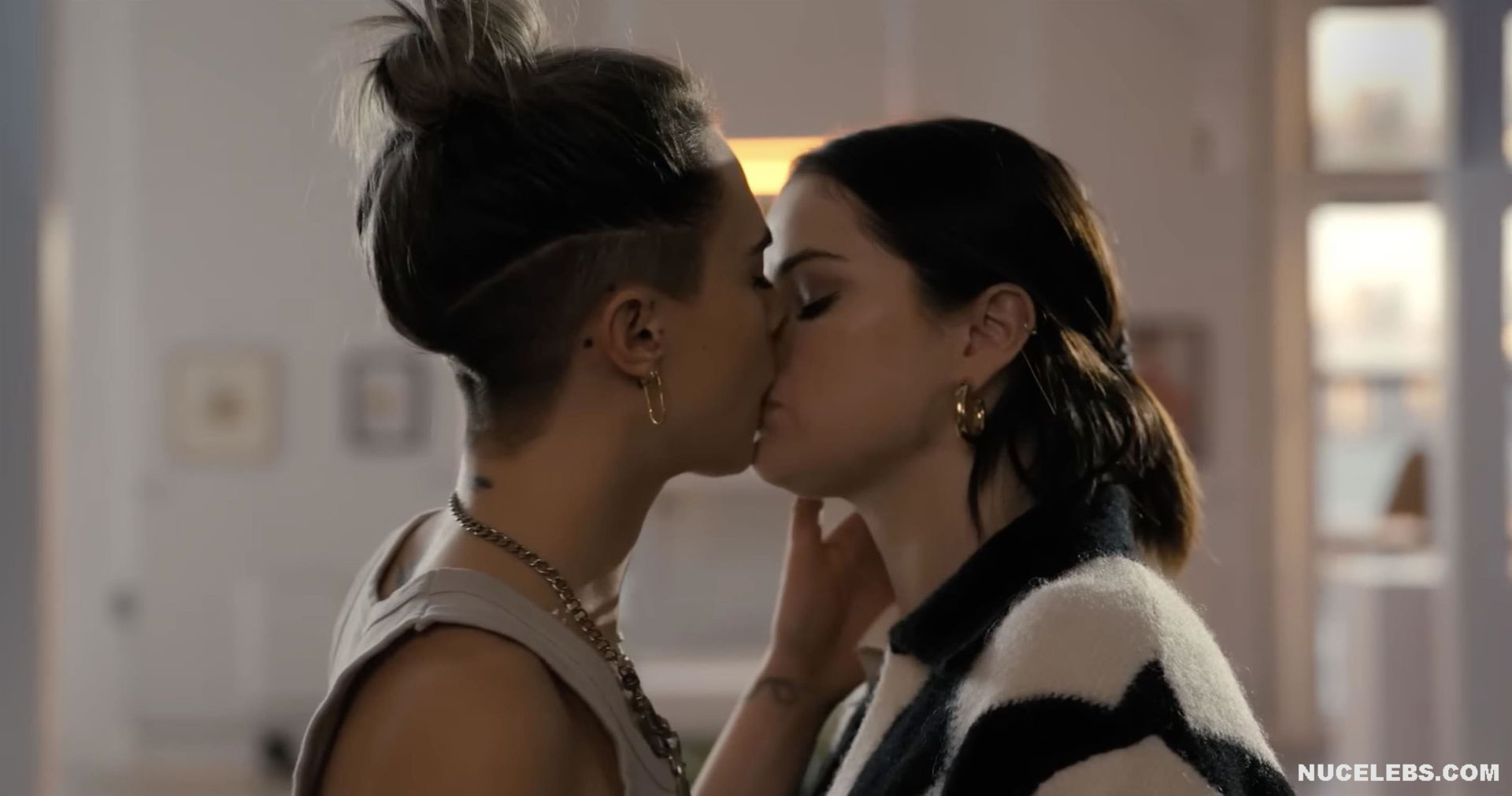 Selena Gomez and Cara Delevingne were not completely nude in one of the films. However, their hot lesbian kiss will definitely make you howl with delight! First, Selena Gomez approached Cara Delevingne and kissed her several times on the lips. And after that, this couple began to kiss for a long time and passionately. Who knows, maybe a little more and Selena Gomez and Cara Delevingne would drop their clothes and show their nude bodies?