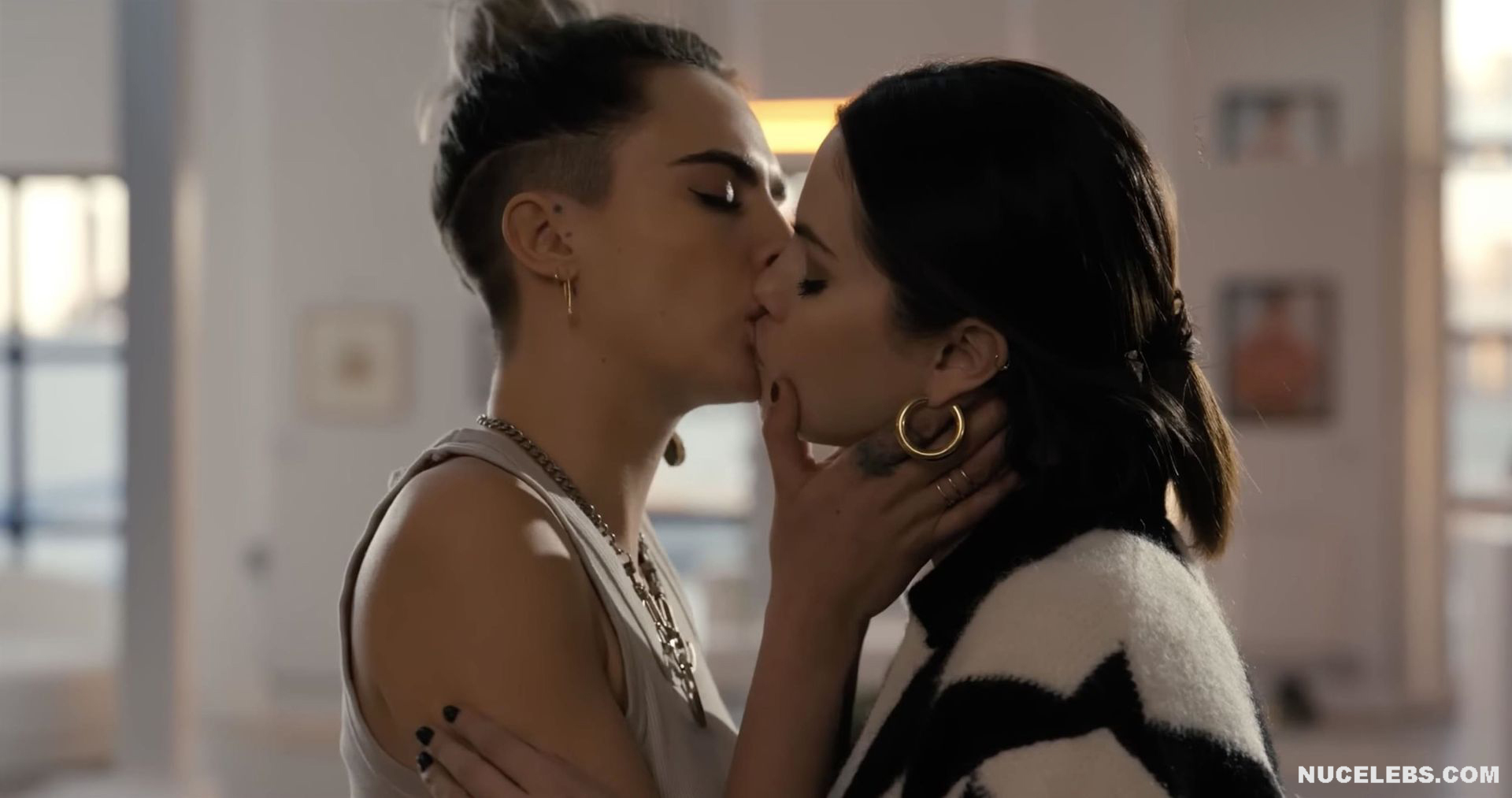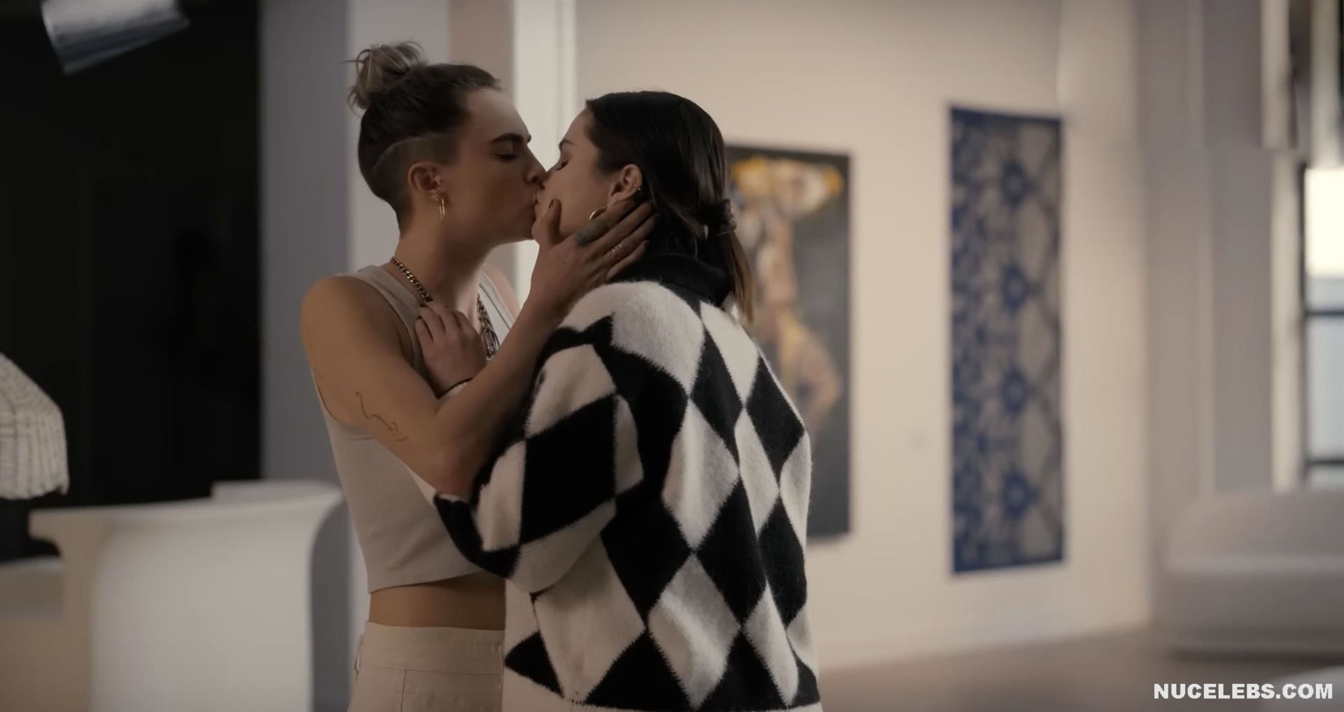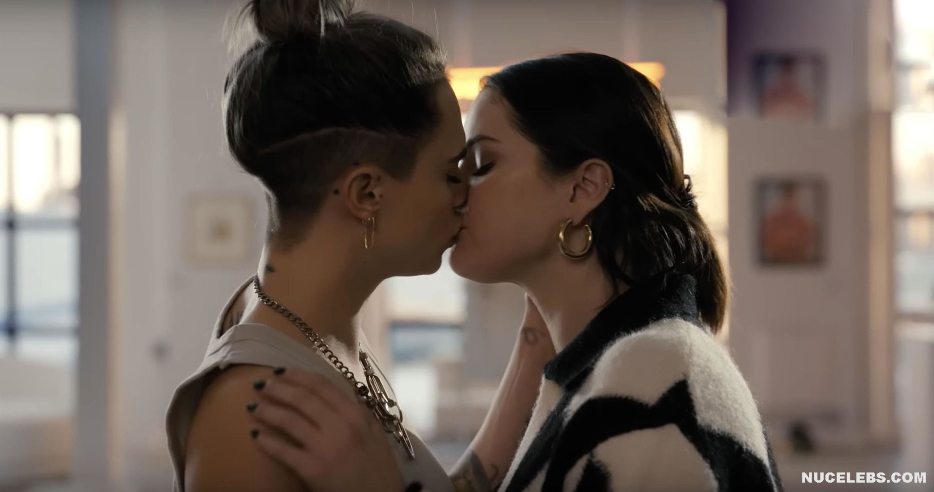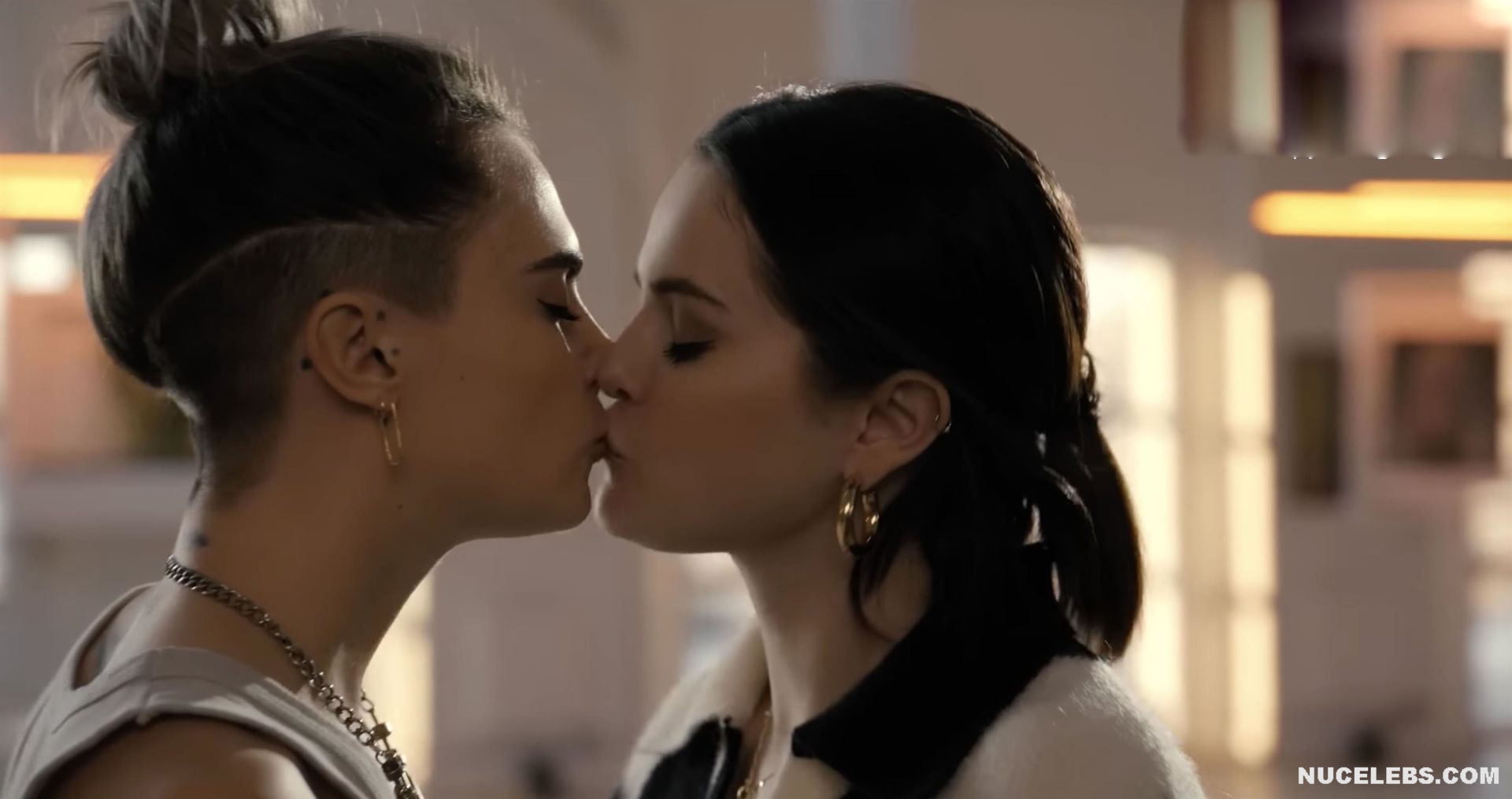 Selena Gomez and Cara Delevingne were not completely nude in one of the films. However, their hot lesbian kiss will definitely make you howl with delight! First, Selena Gomez approached Cara Delevingne and kissed her several times on the lips. And after that, this couple began to kiss for a long time and passionately. Who knows, maybe a little more and Selena Gomez and Cara Delevingne would drop their clothes and show their nude bodies?