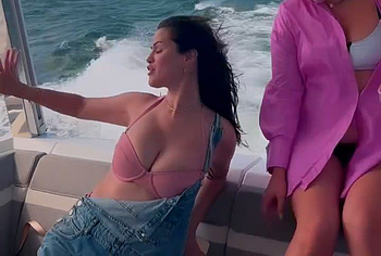 Selena Gomez is not one of those singers who does not hesitate to flaunt her naked body. She likes to tease the audience with her revealing outfits. Recently, this star in a pink bikini had a great hang on a yacht. And while this 31-year-old celebrity moved energetically to the music, her bra had a hard time holding onto her big boobs. So it is not surprising that with the next movement of Selena Gomez, the areola slipped out a little. Well, maybe very soon we will see her completely naked breasts, what do you think?
