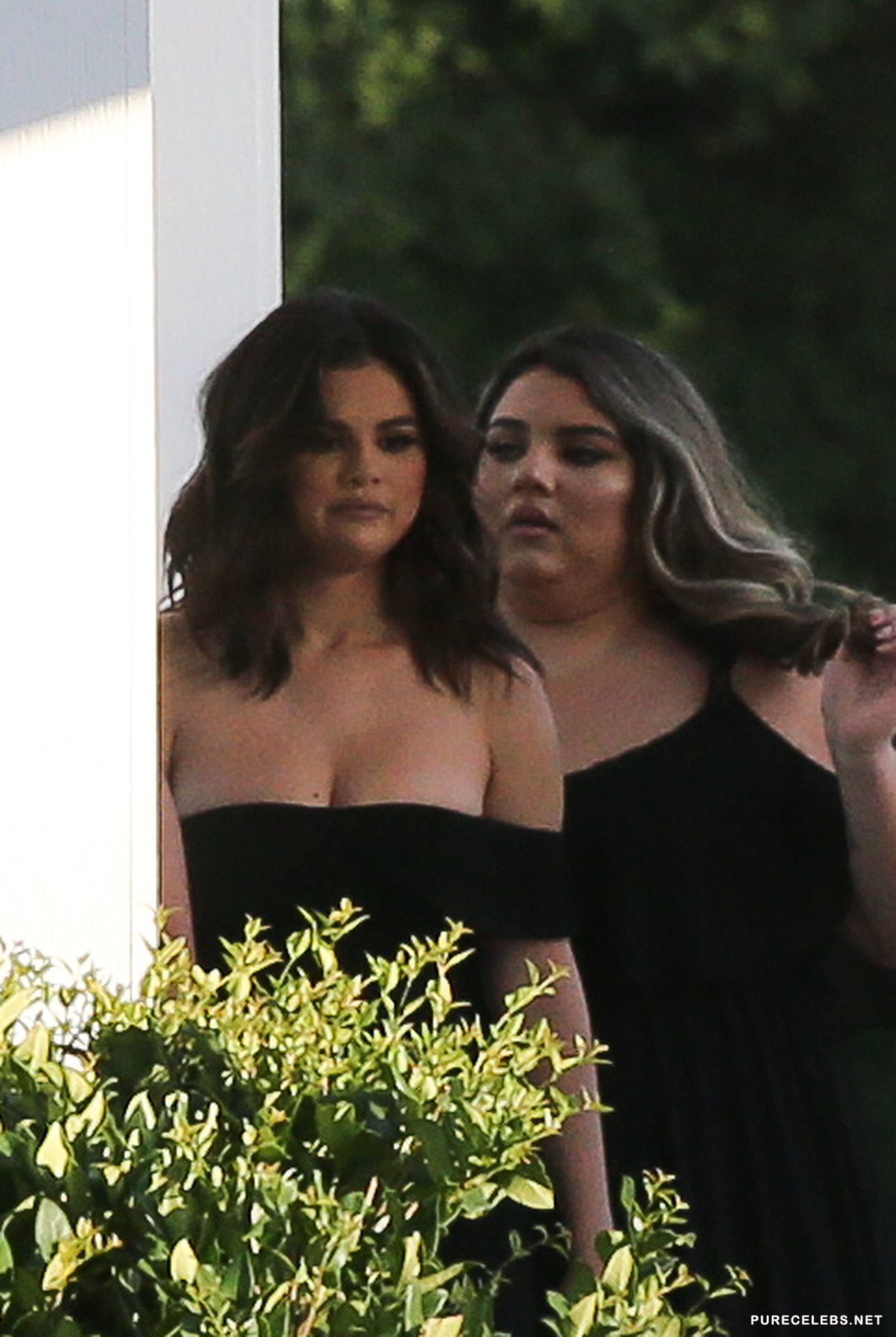 Recently, American actress Selena Gomez attended her cousin’s wedding, where she was caught by the paparazzi. Charming brunette looked very tender and feminine in a long black dress that perfectly fitted the curves of her beautiful body, and with a bunch of flowers in her hands. And her awesome tits looked very seductive, because the star’s dress was open-top, and it seemed that it was about to slip from her breasts.