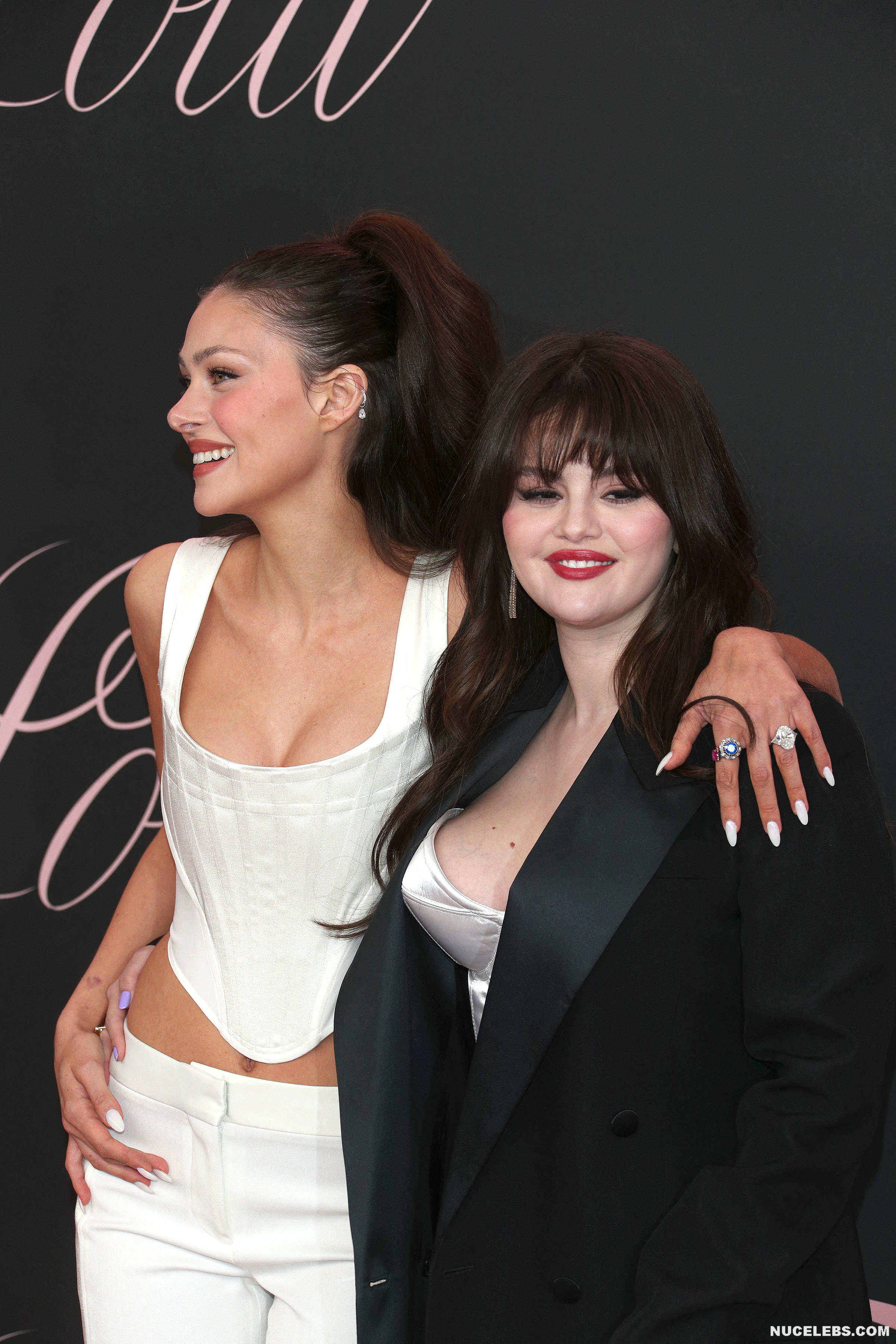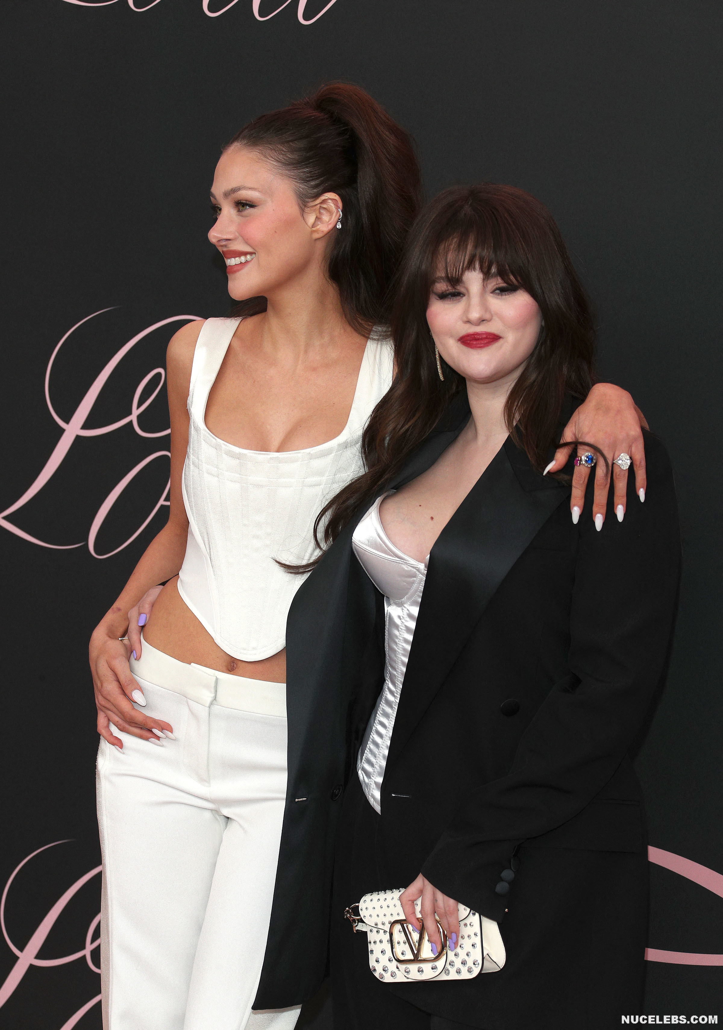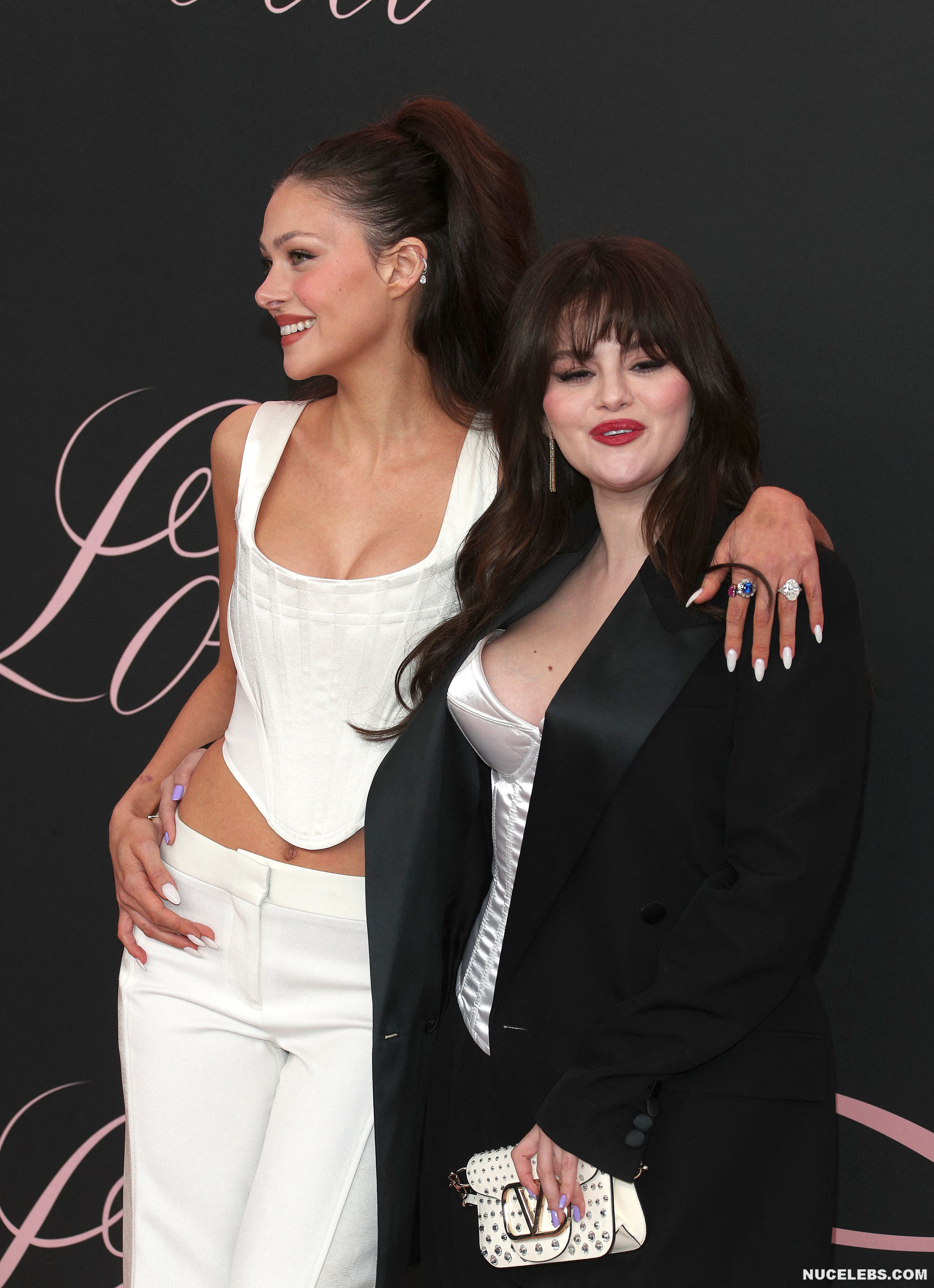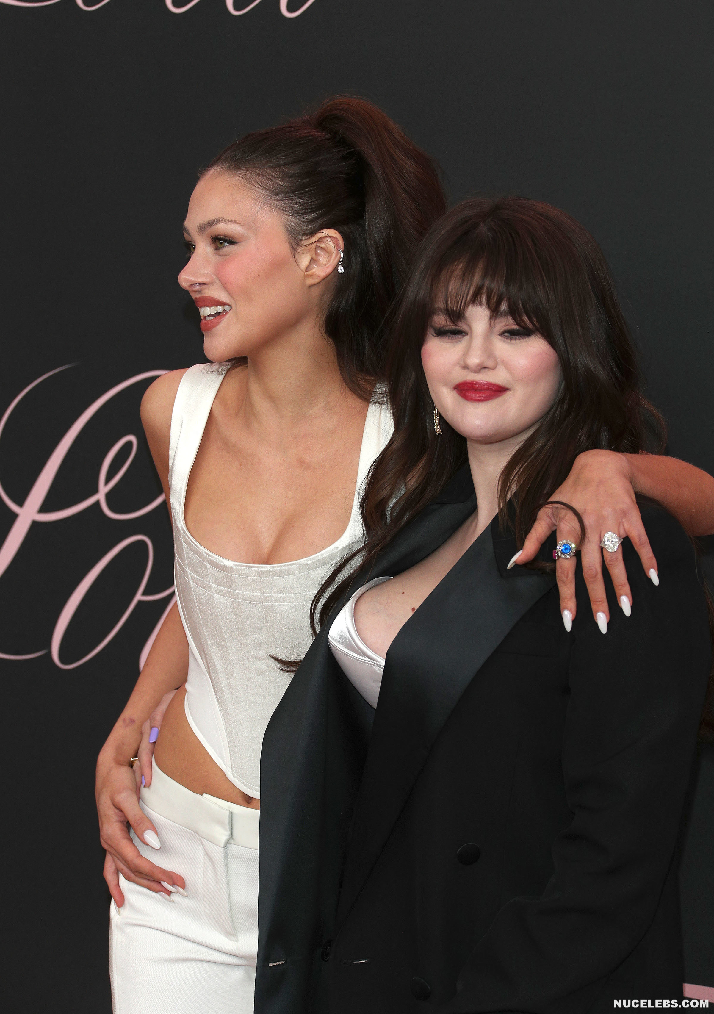 Selena Gomez once again showed off her big boobs at one of the events. You definitely won’t be able to take your eyes off her stunning cleavage in a cream bodysuit. And in some photos, Selena Gomez enjoyed the way a man squeezed her juicy tits in a beige dress and kissed her shoulders. It’s no wonder he couldn’t resist this beauty!