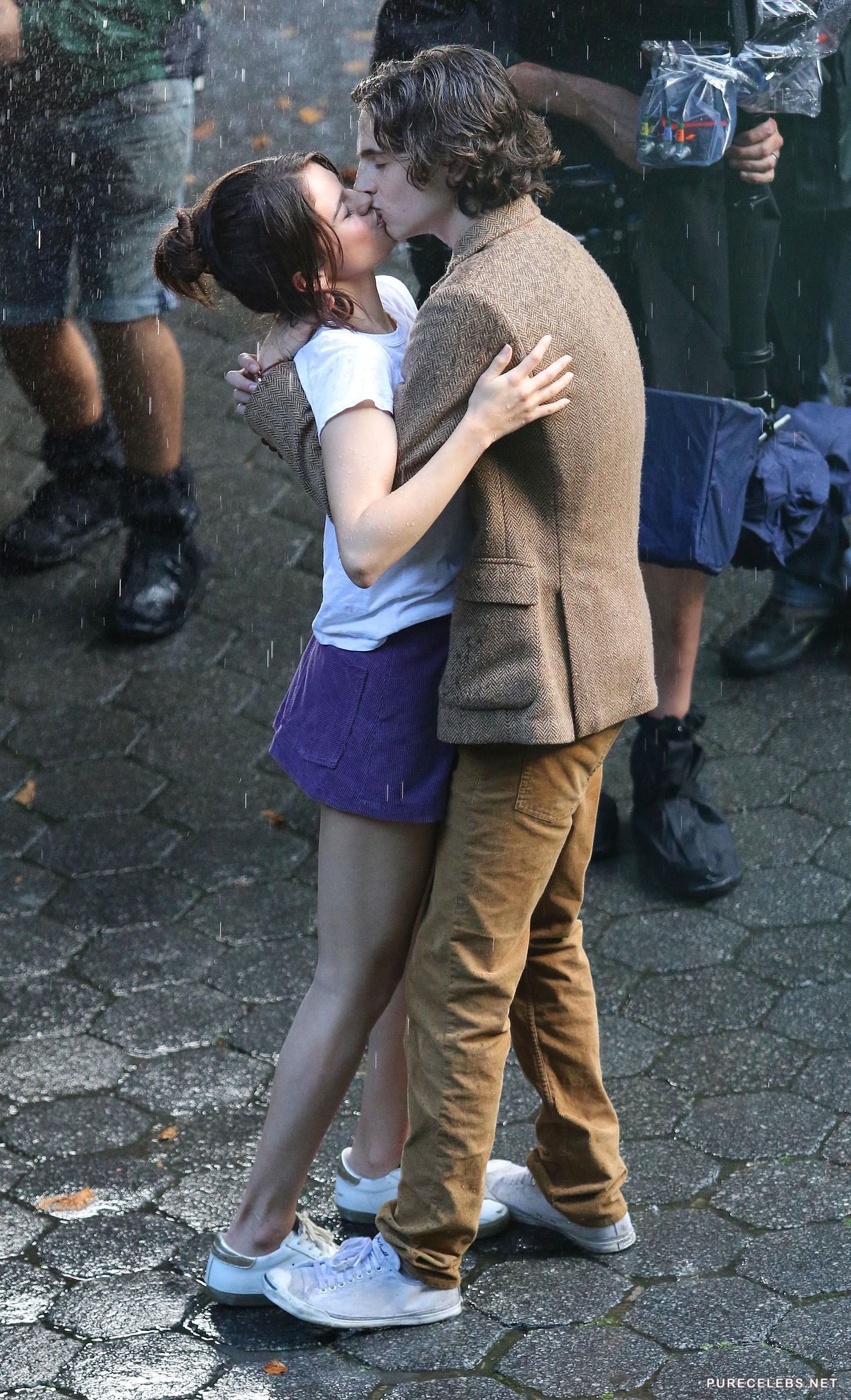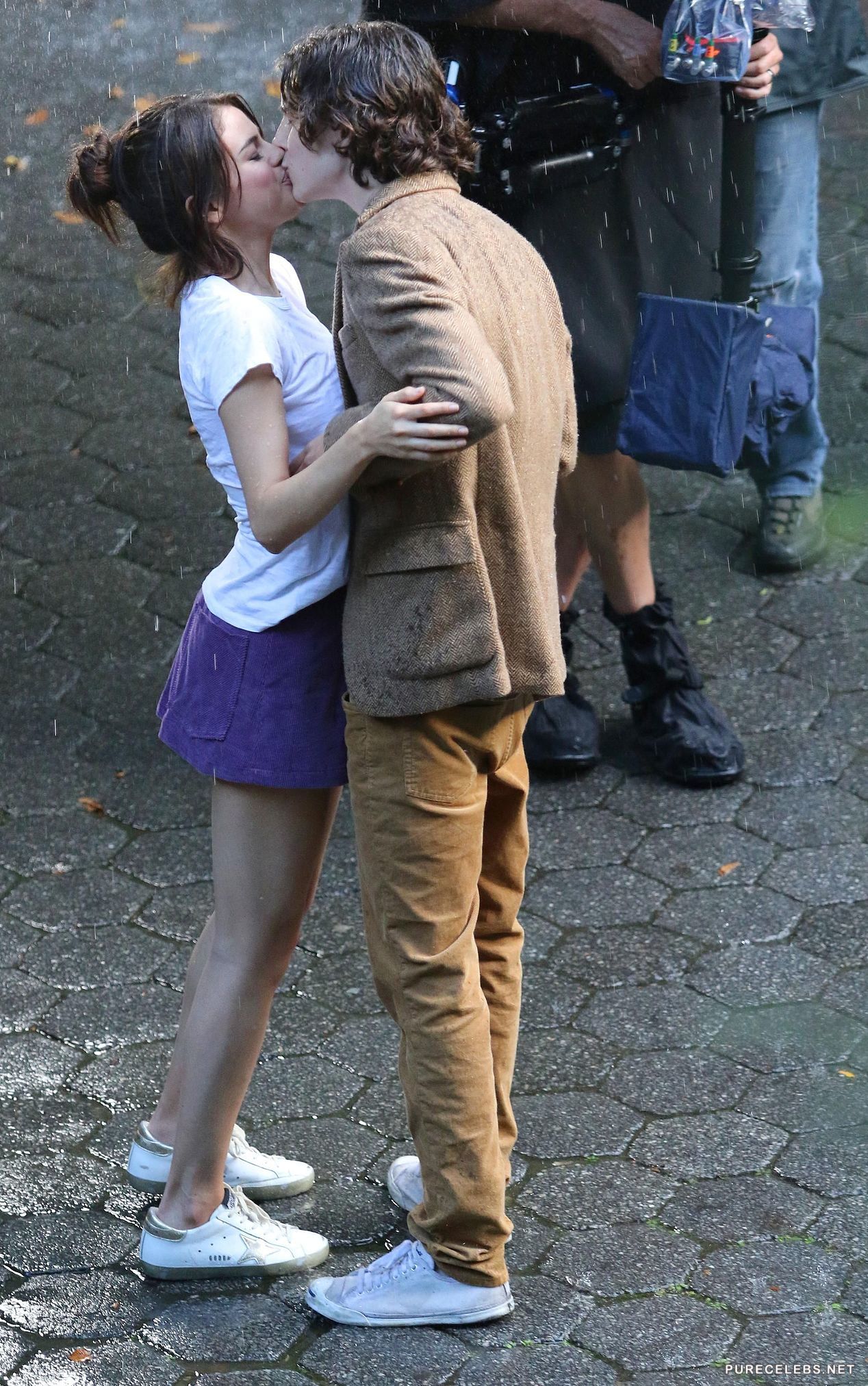 Selena Gomez is currently busy filming the newest Woody Allen film A Rainy Day In New York. It was impossible to keep paparazzi of the movie set and we are happy to bring you steamy photos of Selena and her costar Timothée Chalamet passionately kissing in the rain. The young brunette’s white T shirt is completely wet revealing her beautiful breasts. As the two exchange affection we can only guess that her T shirt is not the only thing getting wet.