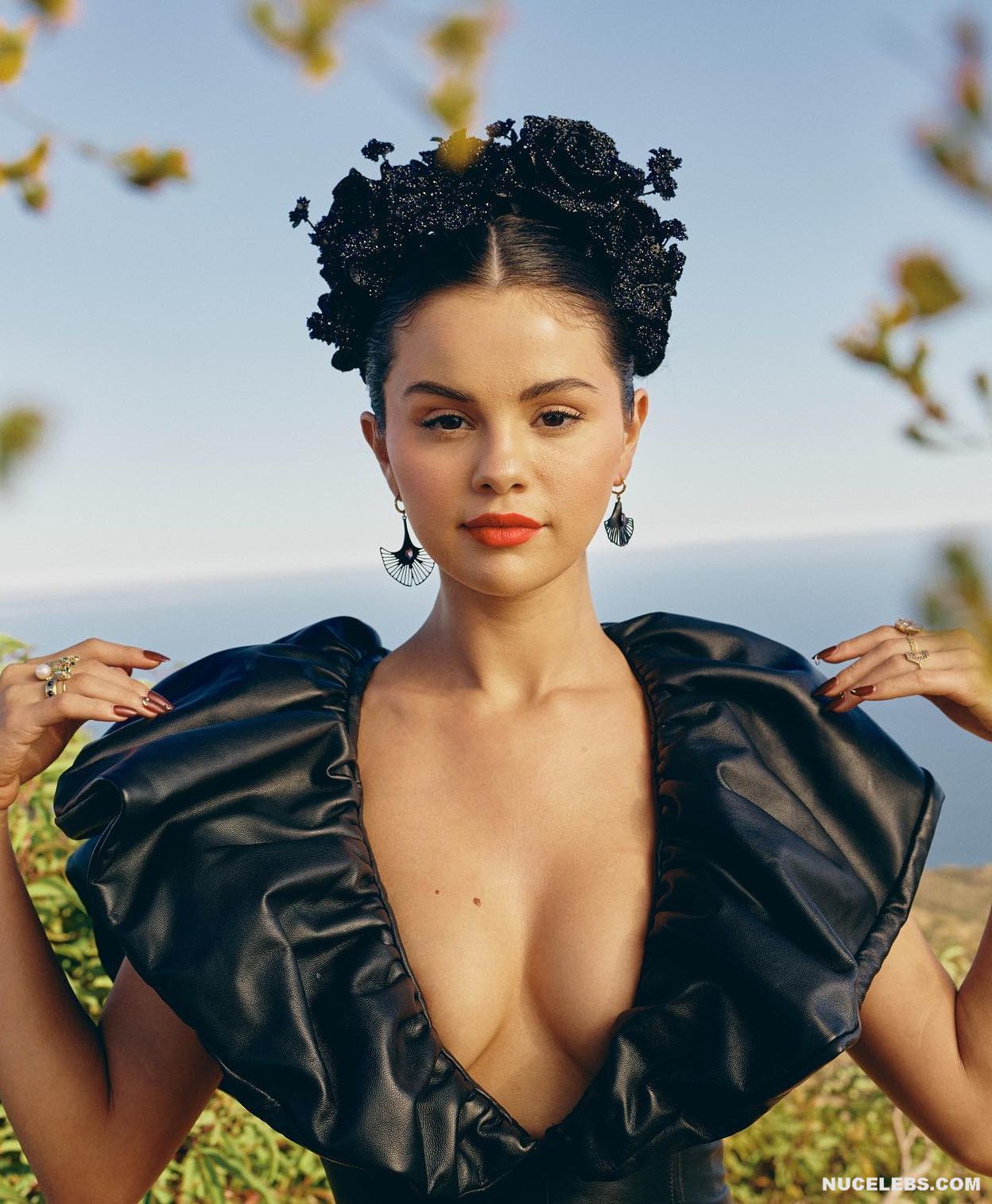 It looks like Selena Gomez has completely forgotten about her former lover Justin Bieber. This beauty starred in a very sexy photo shoot for Allure Magazine. By the way, there Selena Gomez almost showed her nude breasts in a meager outfit. The star posed in navy blue shorts and a top with puffy sleeves. By the way, the top looked more like a petite bra and almost slipped off Selena Gomez’s nude tits. The singer also showed off her awesome cleavage posing in the middle of the field. Mmmm, this brunette is undeniably very hot!