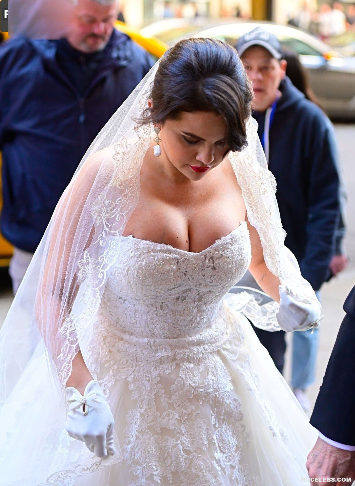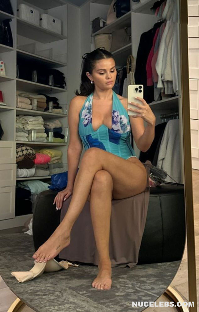 Check out the hot selection of Selena Gomez sexy photos. This 31-year-old singer is in no hurry to go completely naked, but all her outfits emphasize the beauty of her curvy figure. Just look at Selena Gomez’s huge juicy tits in a white bra as she rose from the pool! By the way, she emphasized her curvy hips with contrasting black panties. This star also took a hot selfie in front of the mirror. This time Selena Gomez showed off her amazing cleavage and slender legs in a blue swimsuit.