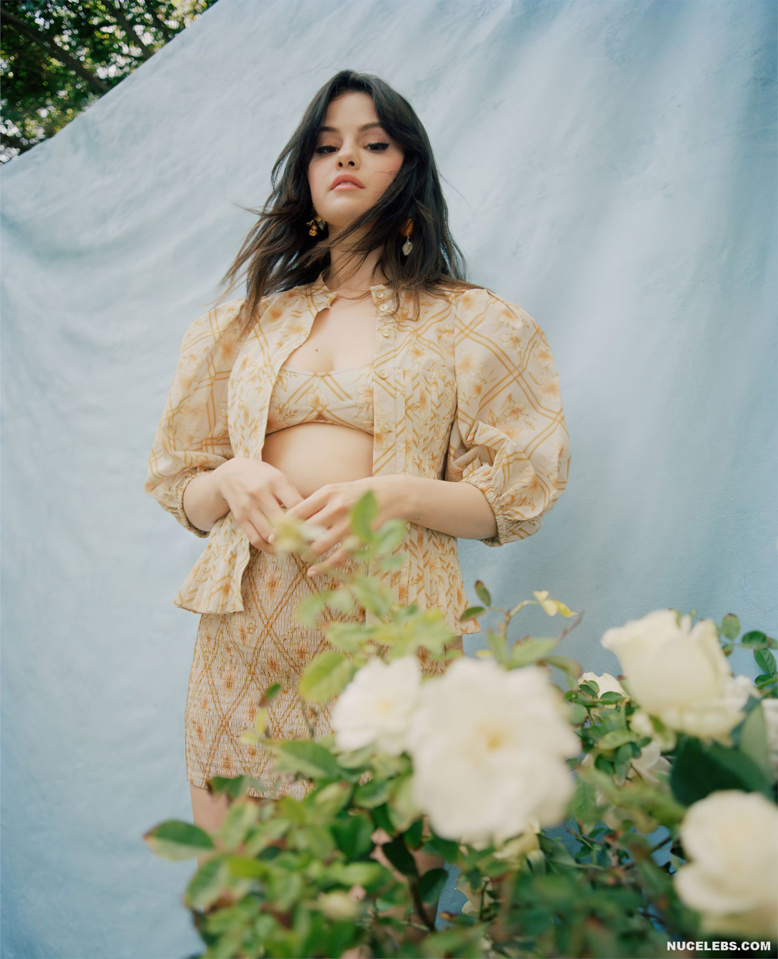 Many expected to see Selena Gomez nude photos in Vogue 2021. However, the celebrity decided to be shy. At least Selena hasn’t taken off all her clothes in front of the camera. But her sexy outfits will still make you drool. Although Selena Gomez didn’t show off her nude boobies or booty, she still showed off her wonderful figure in a multi-colored bikini. And this celebrity also showed off her awesome cleavage, posing in a beige tight-fitting suit.