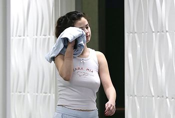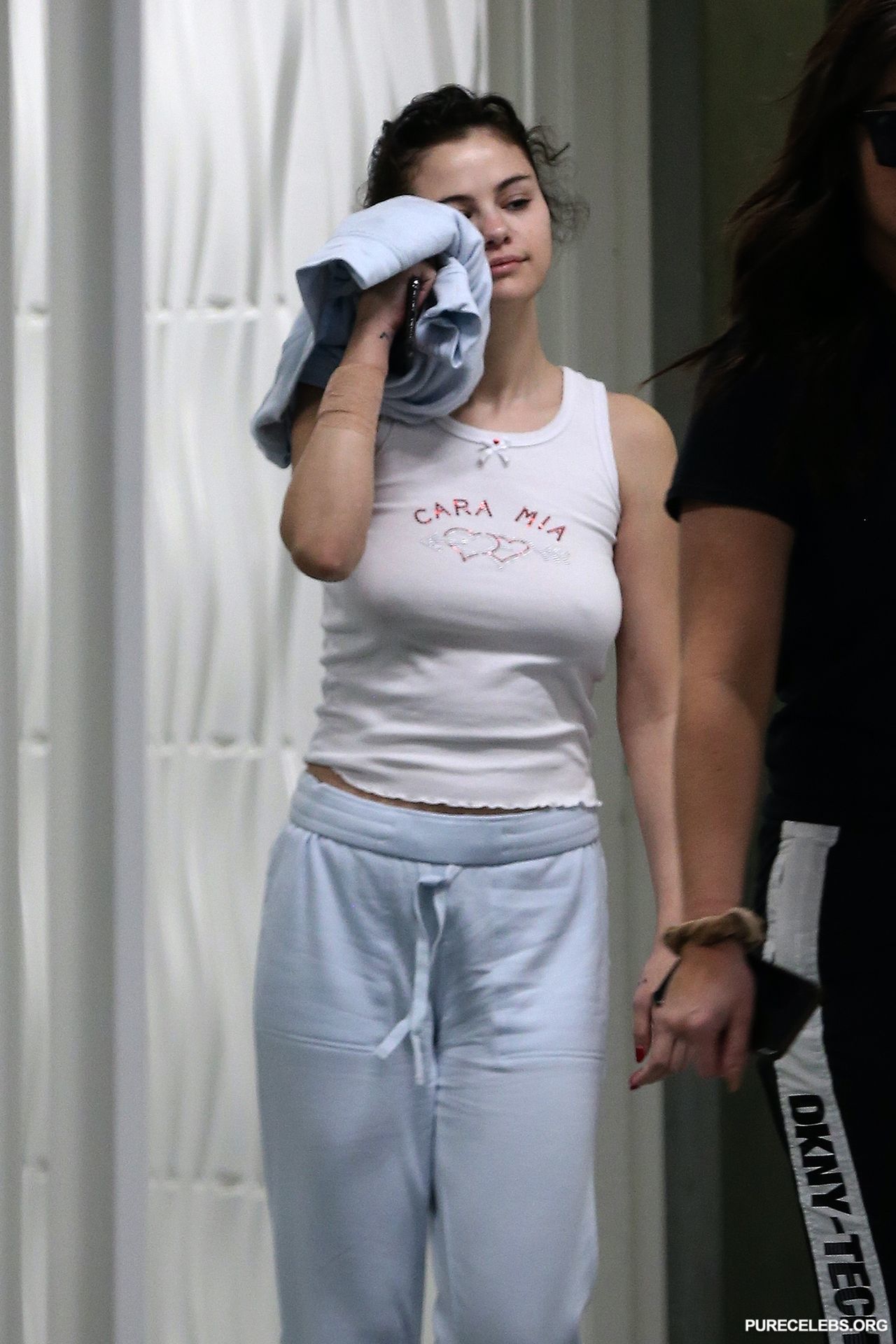 American actress Selena Gomez almost flashed her nude boobs after training. Paparazzi photographed this celebrity when she was wearing gray sweatpants and a white T-shirt. Since Selena Gomez didn’t put on a bra, so her wonderful titties with poking nipples were visible through a tight T-shirt. Oh, this beauty knows how to look very sexy in any situation.