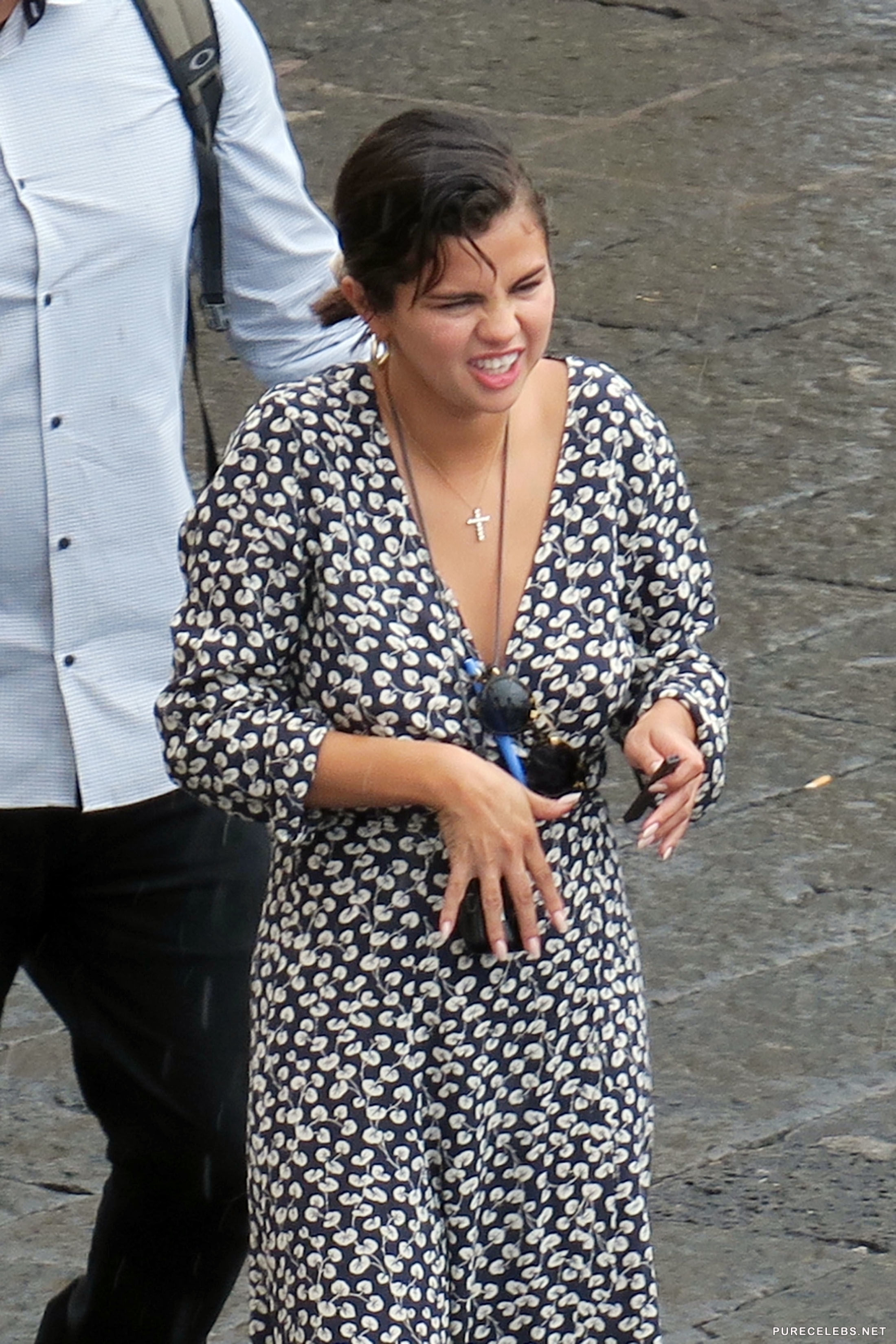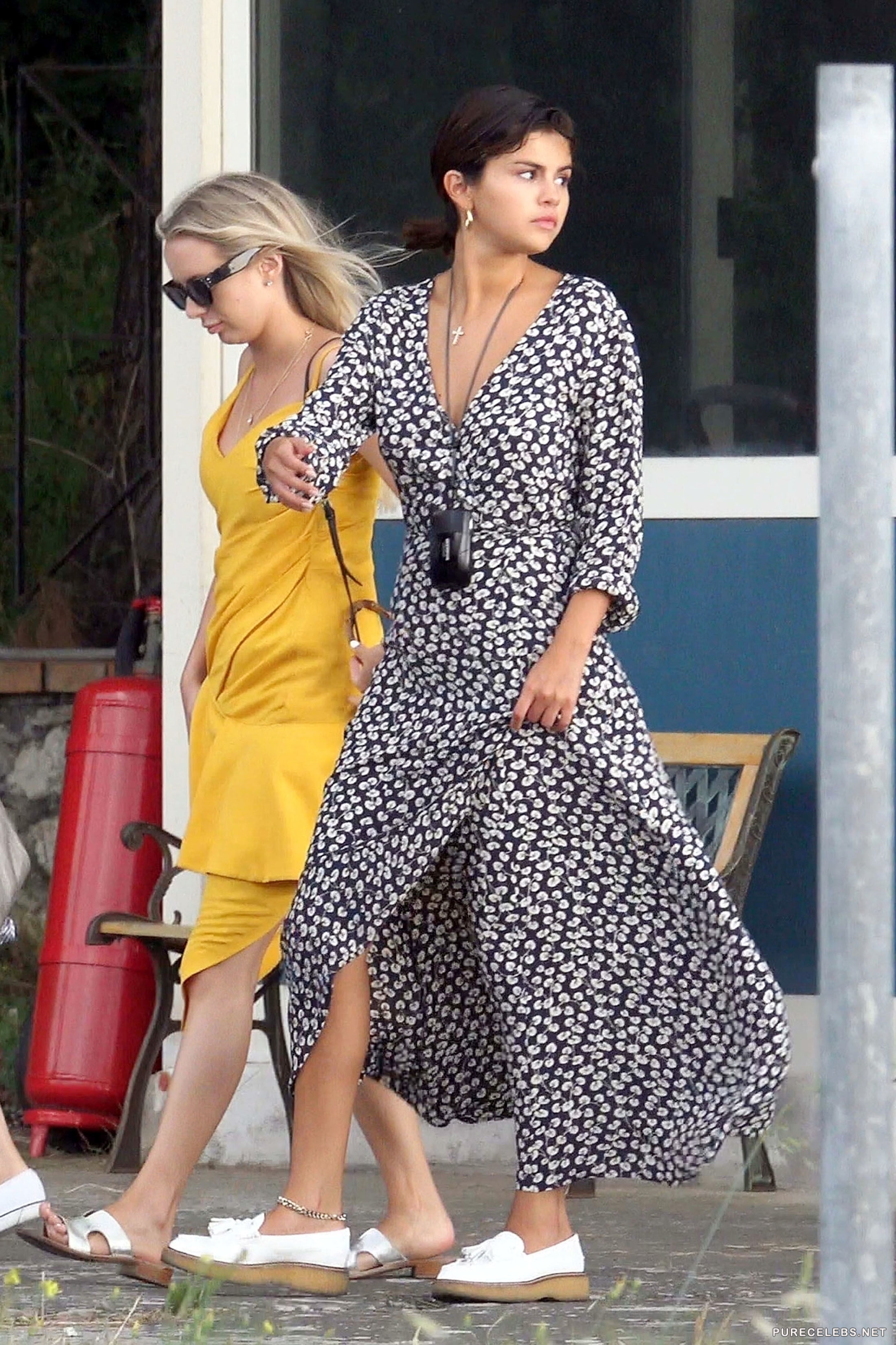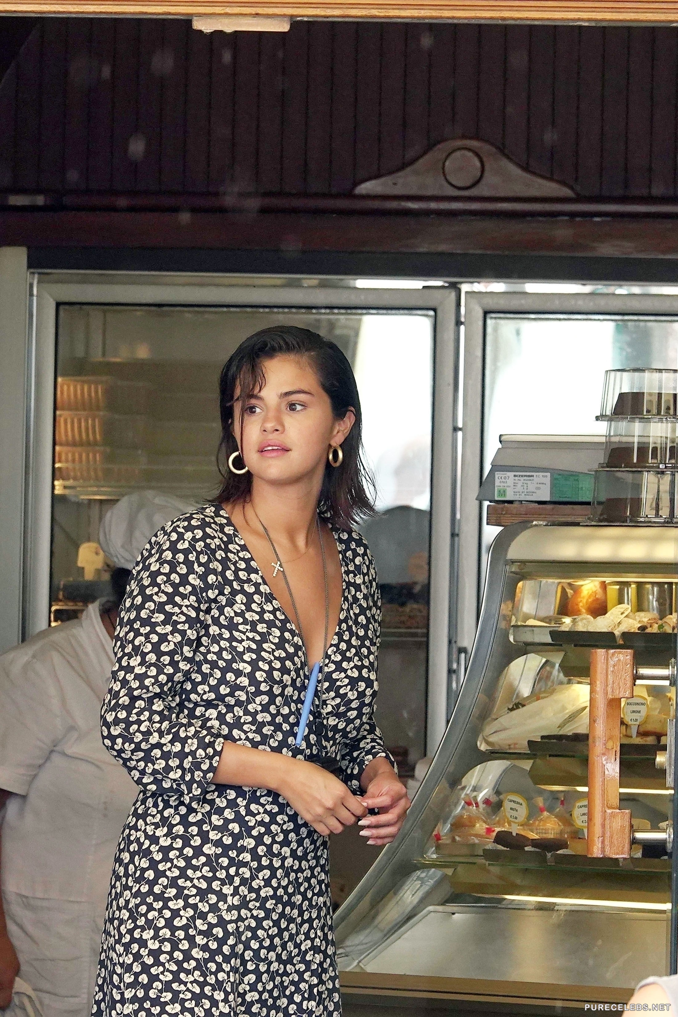 Selena Gomez looks quite comfortable while she is on vacation and since she does not have much make up on she is fairly confident that no one will find out who she is. She even sits down on the ground to take some pictures and as she does that, she displays her long gorgeous legs fully and her tits almost fall out of her top as she does that.