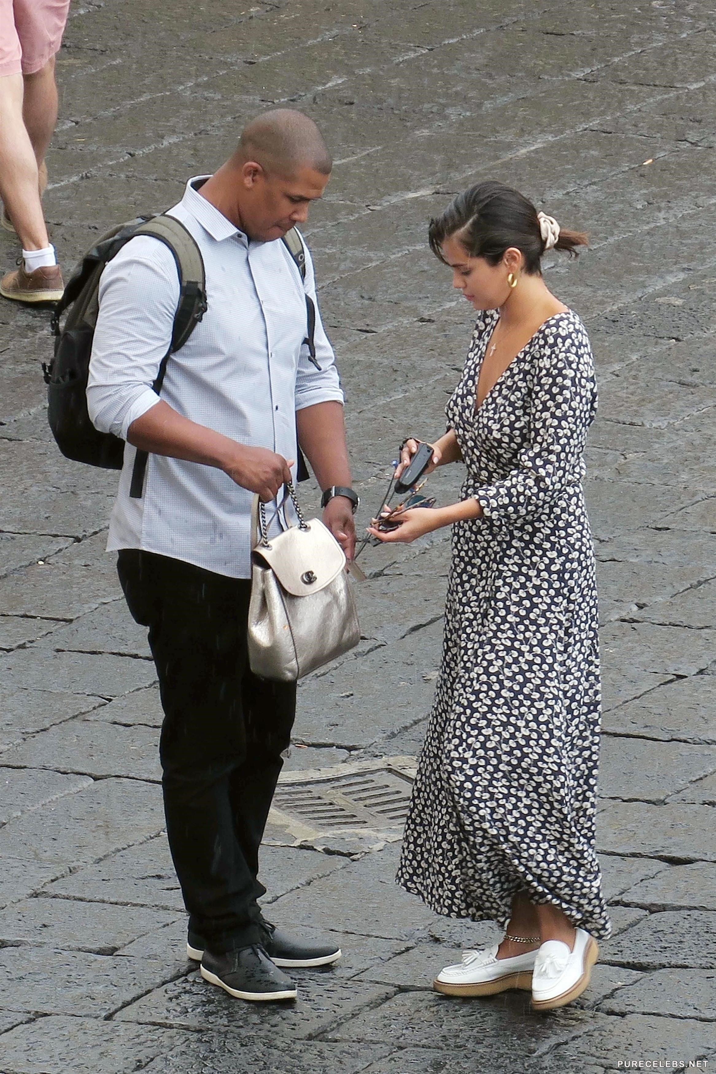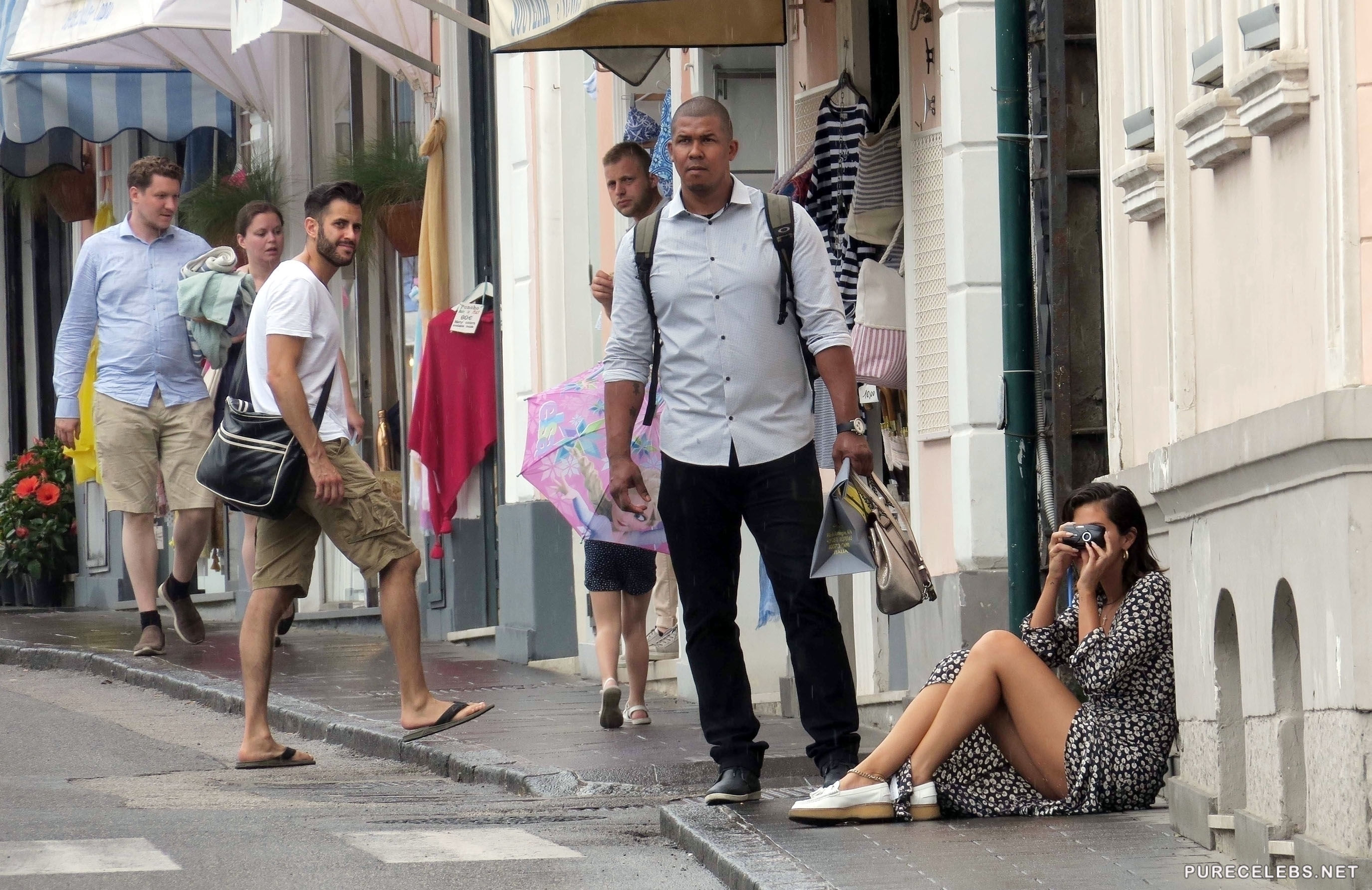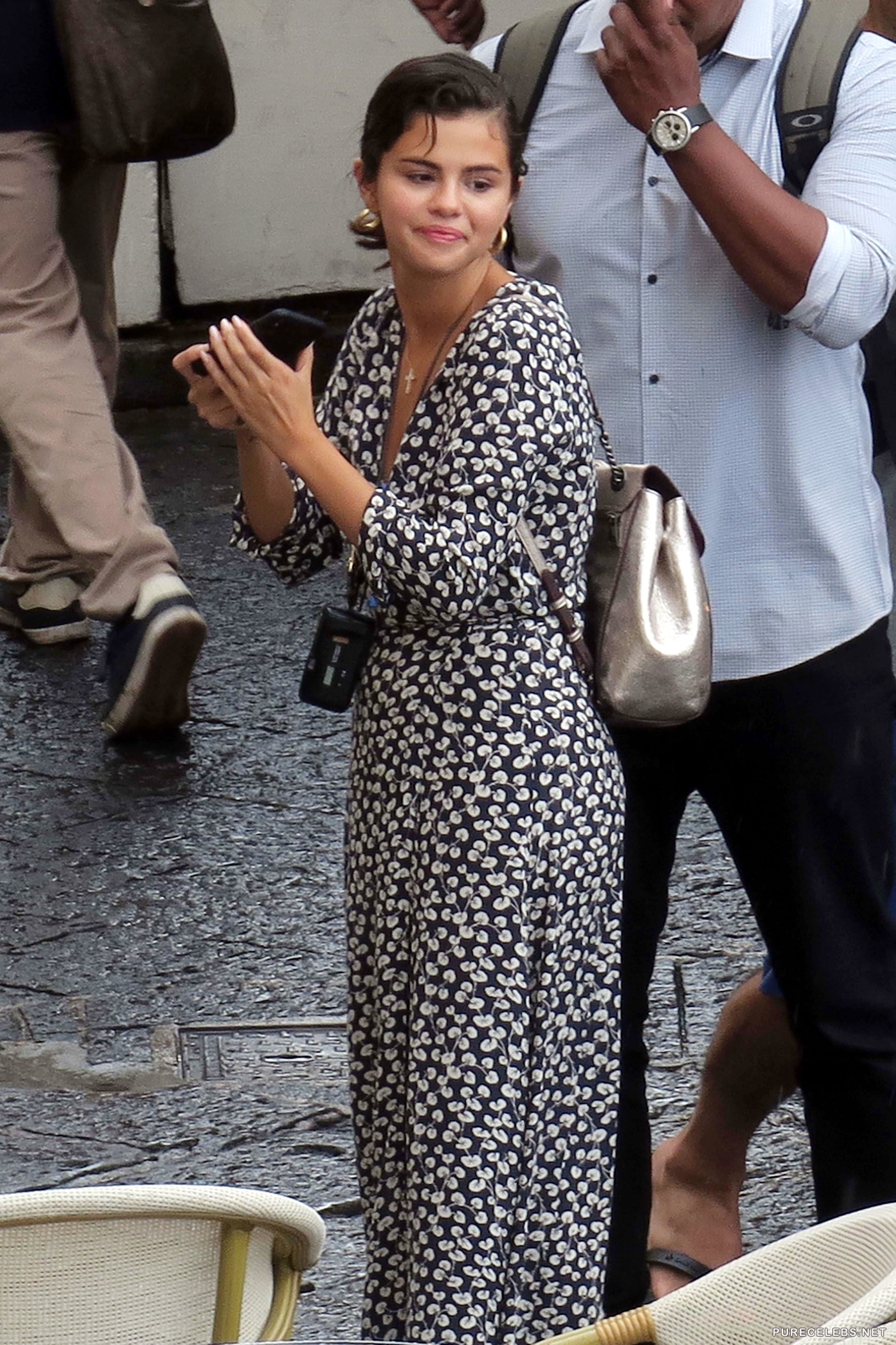Selena Gomez looks quite comfortable while she is on vacation and since she does not have much make up on she is fairly confident that no one will find out who she is. She even sits down on the ground to take some pictures and as she does that, she displays her long gorgeous legs fully and her tits almost fall out of her top as she does that.