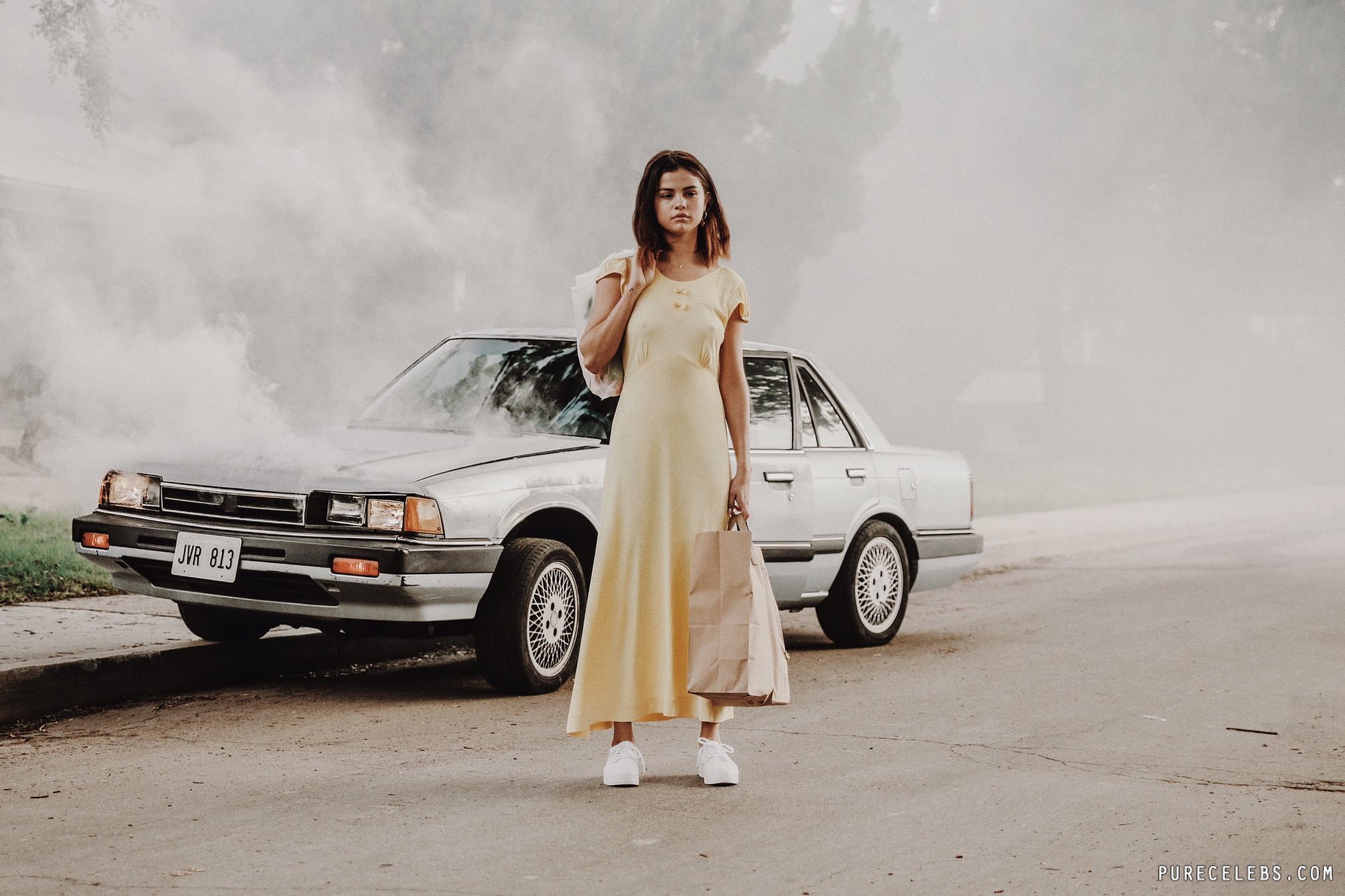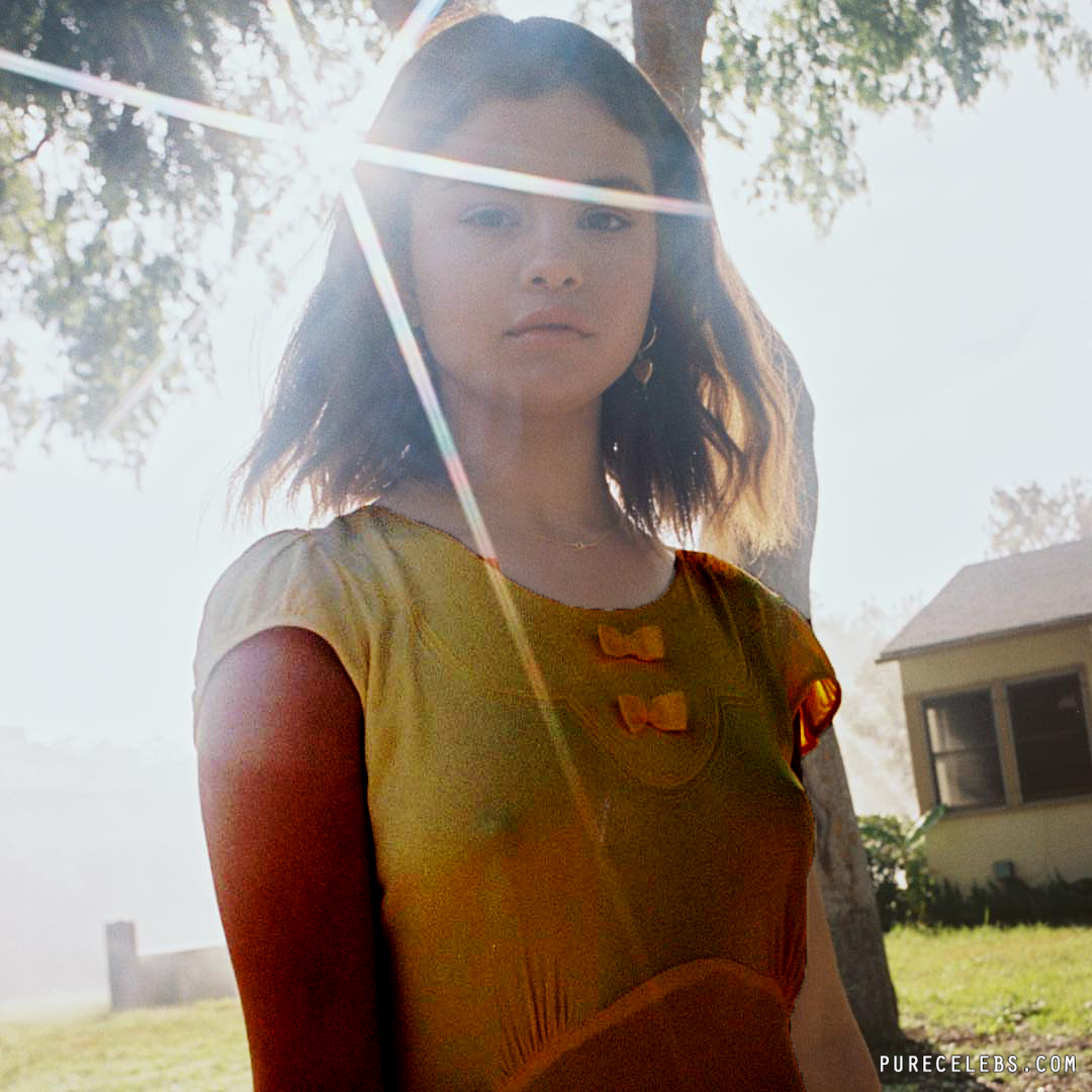 As you know, the American actress Selena Gomez often appears in public without a bra. So, we present to your attention the photos of this sweet babe for Fetish. The celebrity posed in the middle of the street in a long yellow dress and with packages in her hands. Of course, in these photos you will not see Selena Gomez nude boobies. But if you look closely, then her poking nipples will be visible through a tight dress.