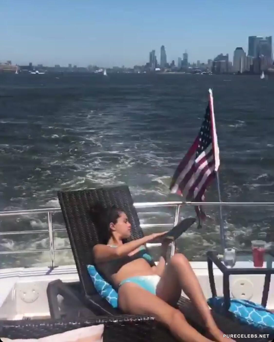 It is one of those days when Selena Gomez puts on a sexy bikini, jumps on a yacht and enjoys sunbathing with friends, all day long, and even if she spots paparazzi here and there, she just smiles,s trikes a pose and keeps on enjoying her time off from work and stage and everything that includes too many people around her. This petite babe definitely looks awesome today.