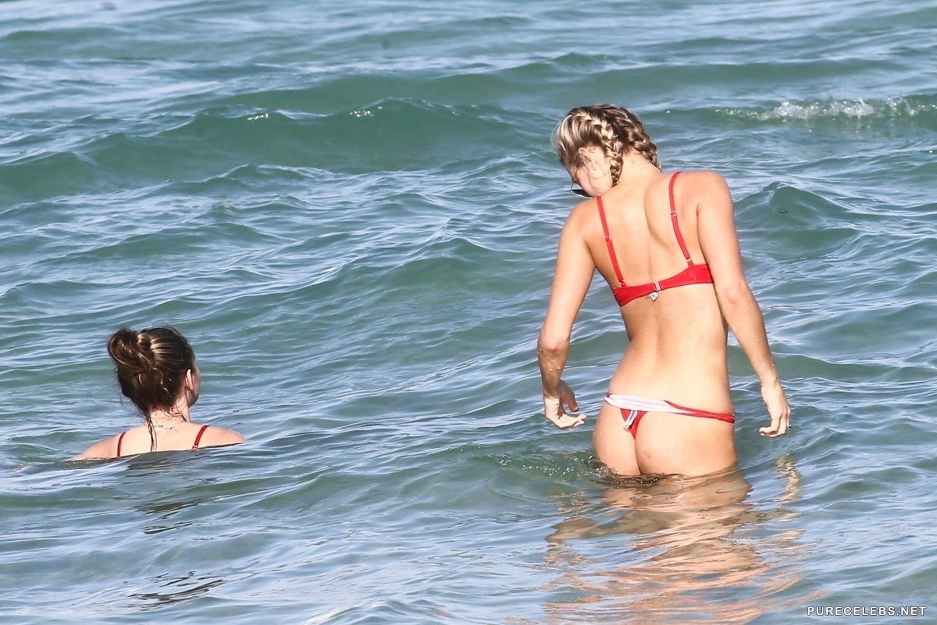 Selena Weber is an actress, known for The Row, recently rested on the beach, where she was caught by the agile paparazzi. The girl was dressed in a small red bikini, which perfectly emphasized the curves of her gorgeous body. Her booty in small red thongs looked simply amazing when she came out of the water. And her juicy boobs in a wet bra looked incredibly sexy! You will definitely dream about this beauty all night long!