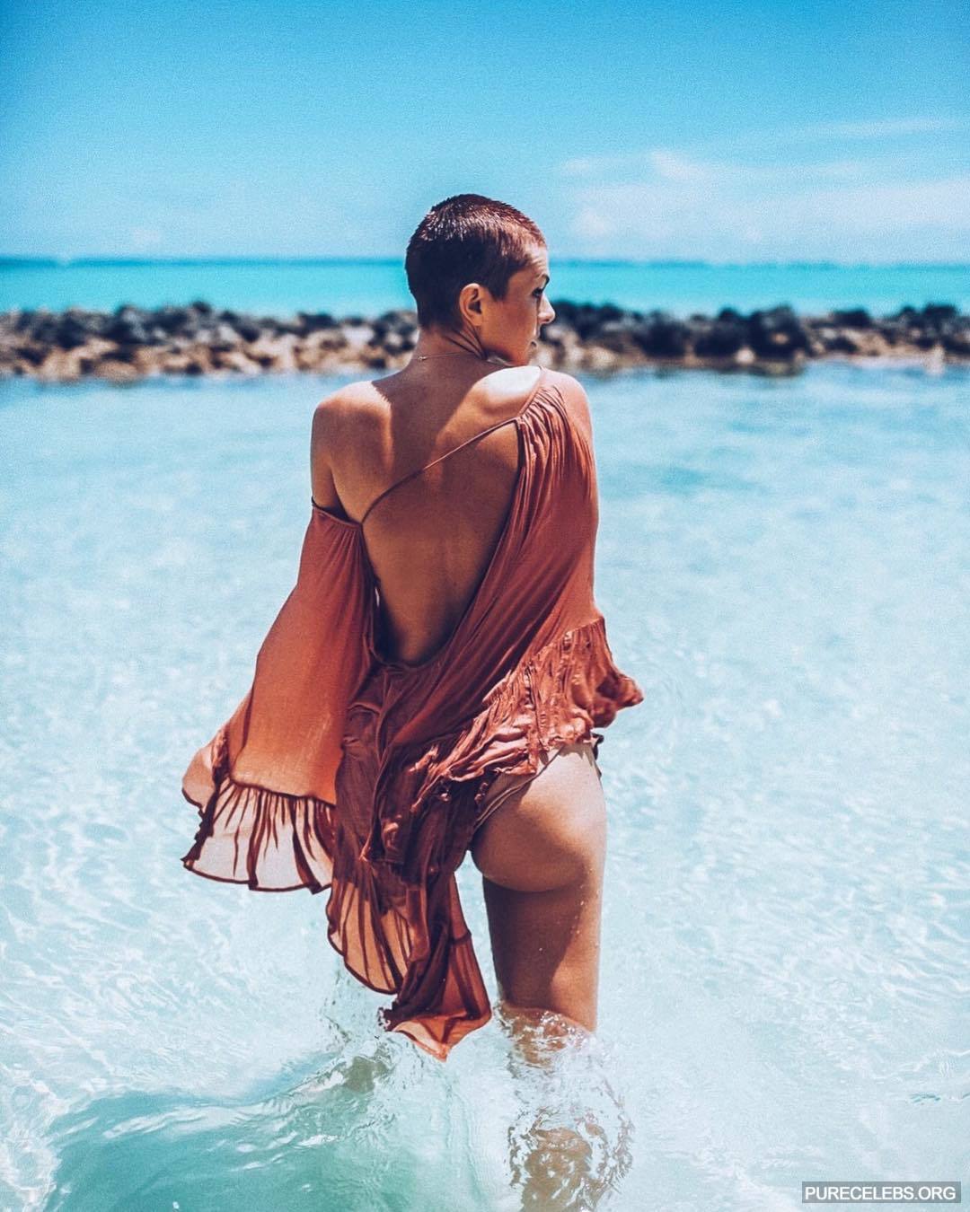 Canadian actress Serinda Swan loves to be in the spotlight and so often share her naughty selfies with her fans. You will definitely be delighted with the photo in which this charming brunette poses in a white tight T-shirt through which her wonderful tits with poking nipples are perfectly visible. And on the beach, this celebrity in a tight-fitting swimsuit looked simply amazing, especially her chubby ass!